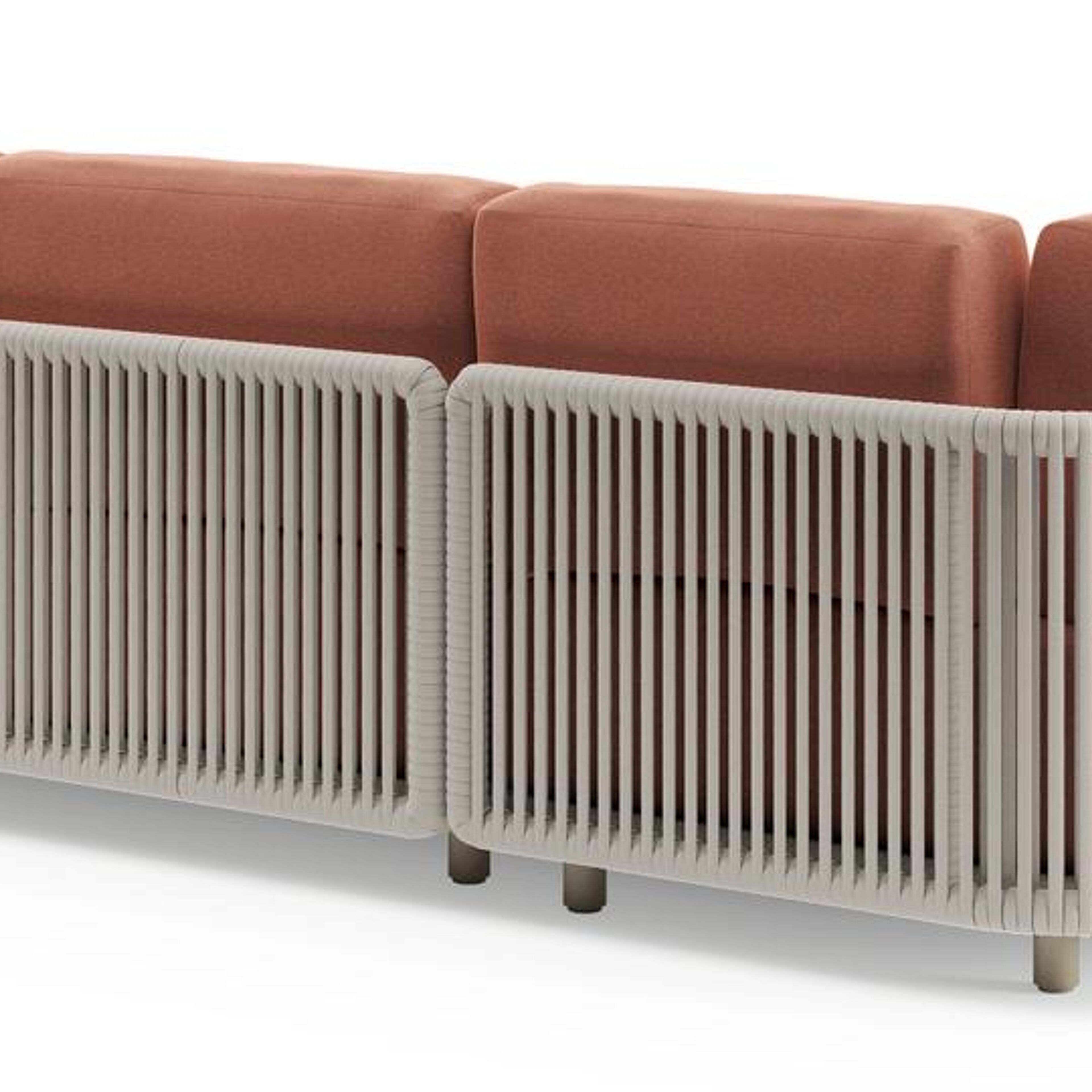 Organo loungehoek in beige aluminium en beige verticaal geweven luxe vlakke rope met heritage rust all weather Sunbrella® luxe kussen | Exterioo tuinmeubelen
