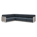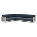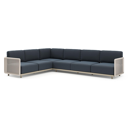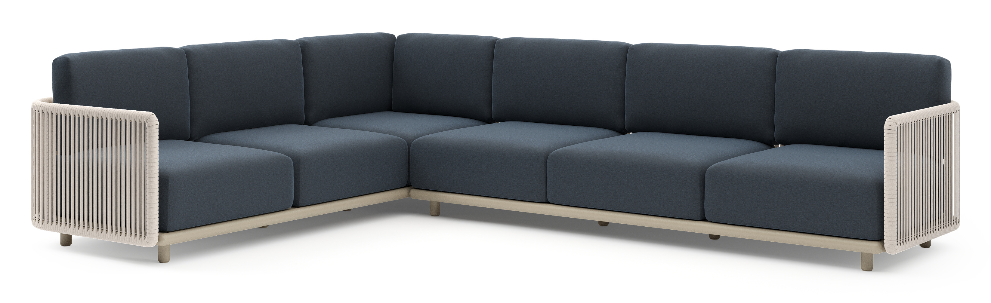 Organo loungehoek in beige aluminium en beige verticaal geweven luxe vlakke rope met heritage indigo all weather Sunbrella® luxe kussen | Exterioo tuinmeubelen