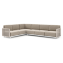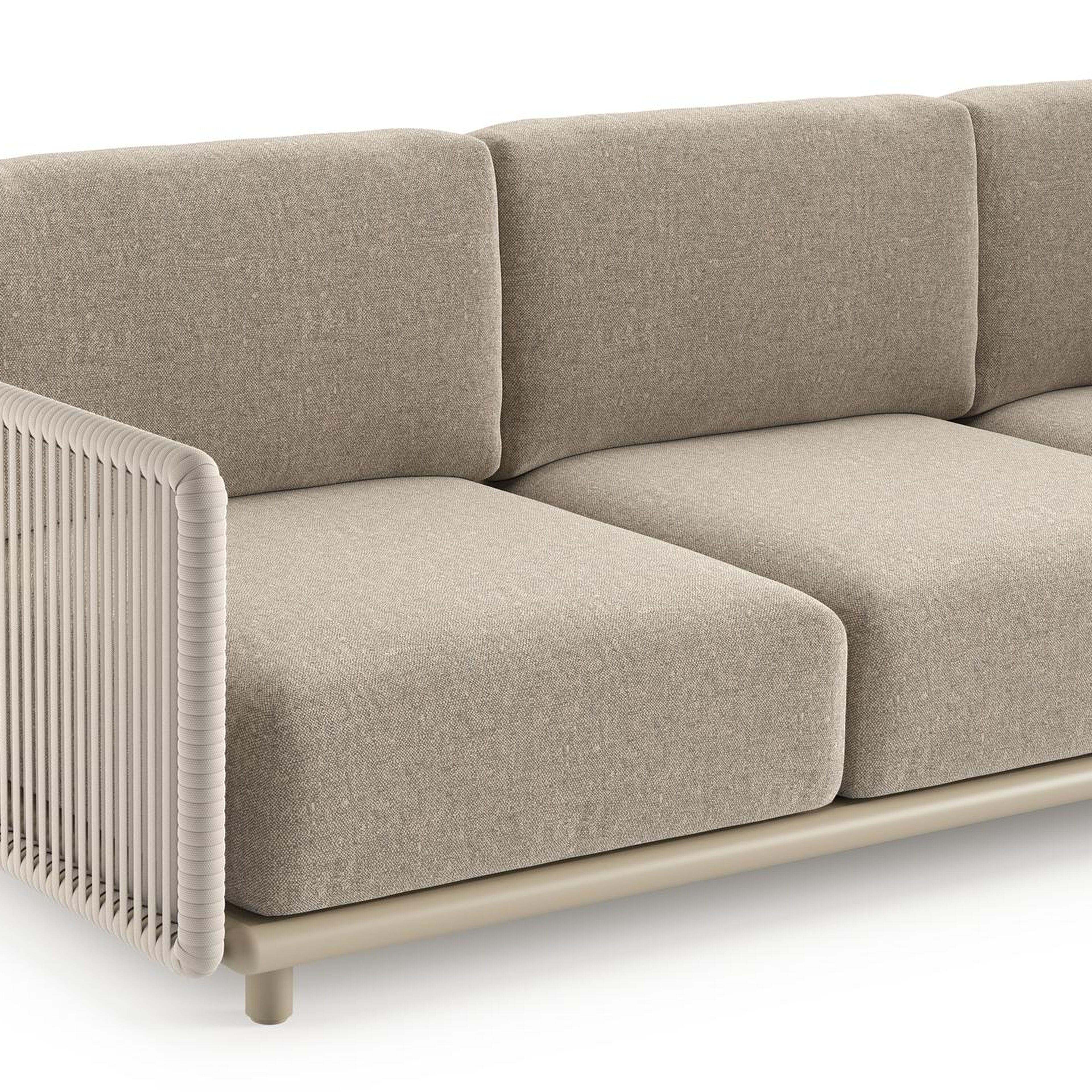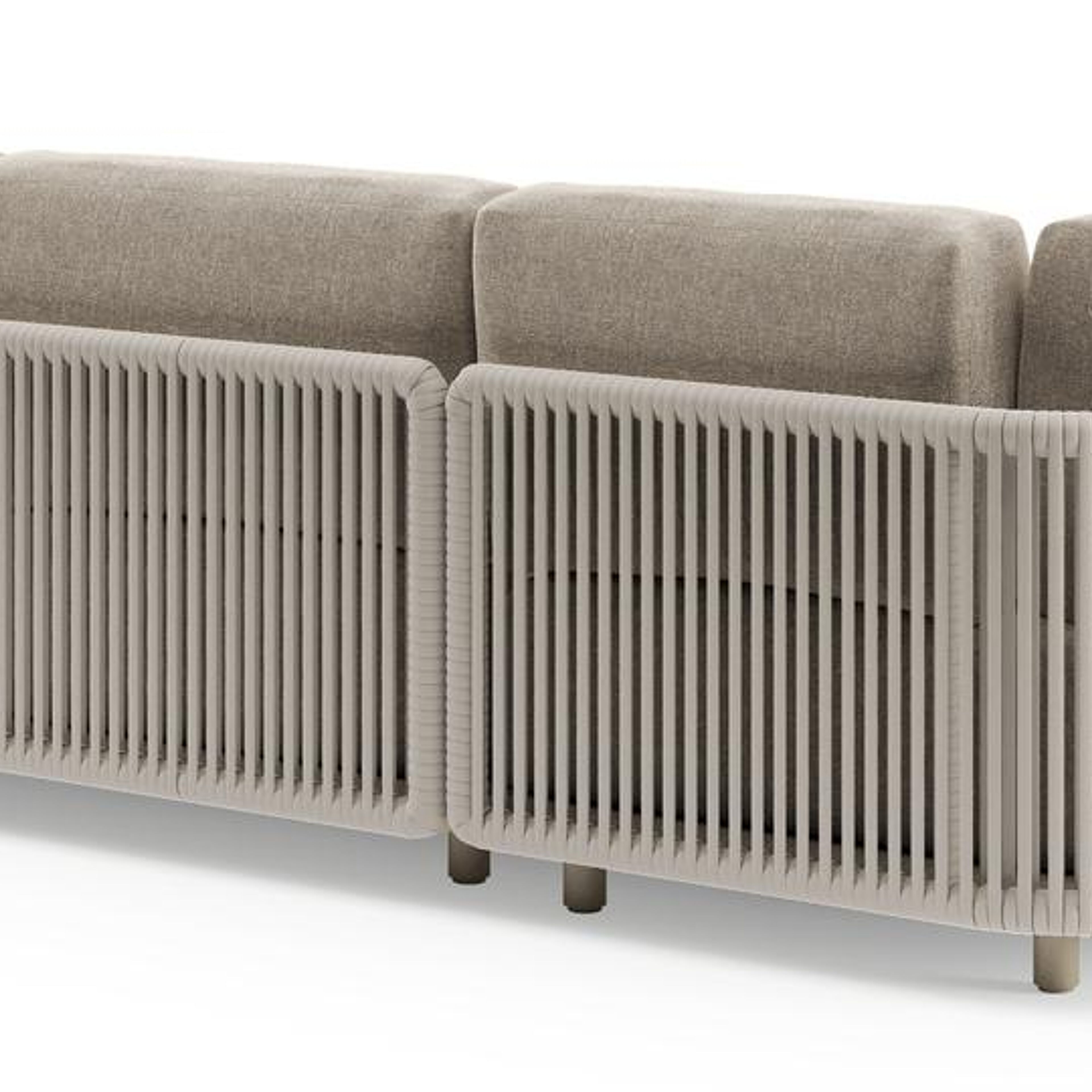 Organo loungehoek in beige aluminium en beige verticaal geweven luxe vlakke rope met chartres pewter all weather Sunbrella® luxe kussen | Exterioo tuinmeubelen