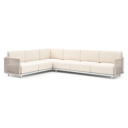 Organo loungehoek in wit aluminium en beige verticaal geweven luxe vlakke rope met lopi snow all weather Sunbrella® luxe kussen | Exterioo tuinmeubelen