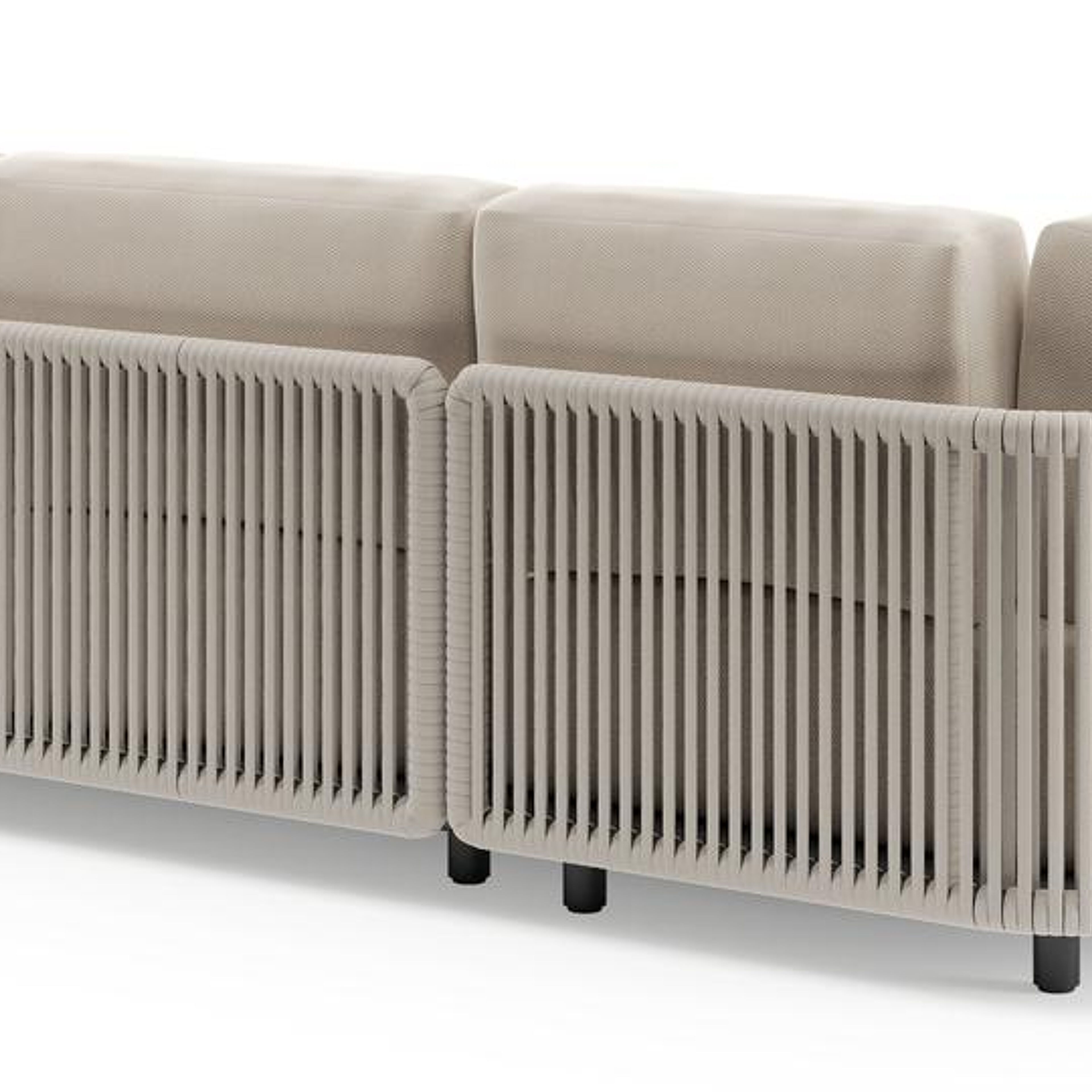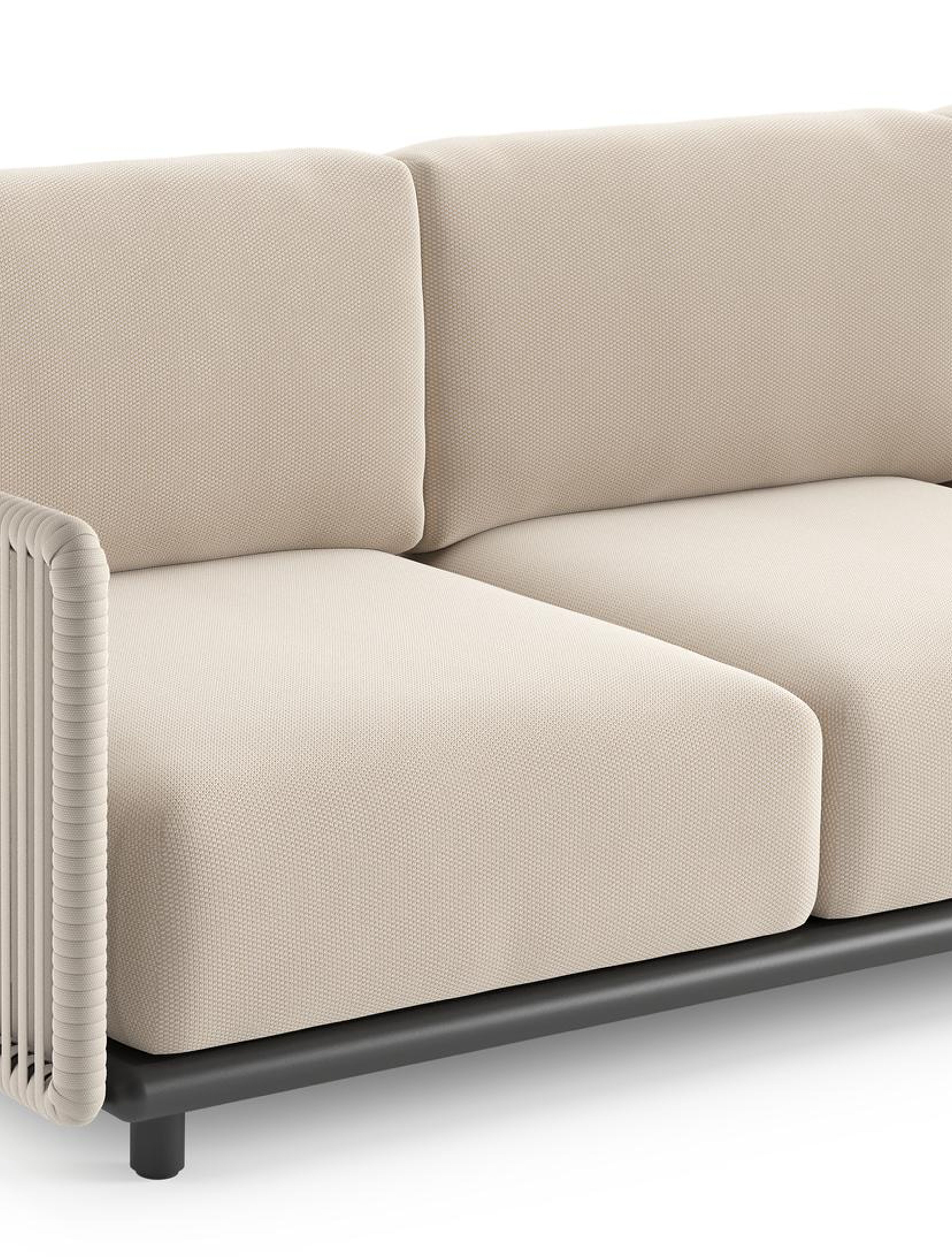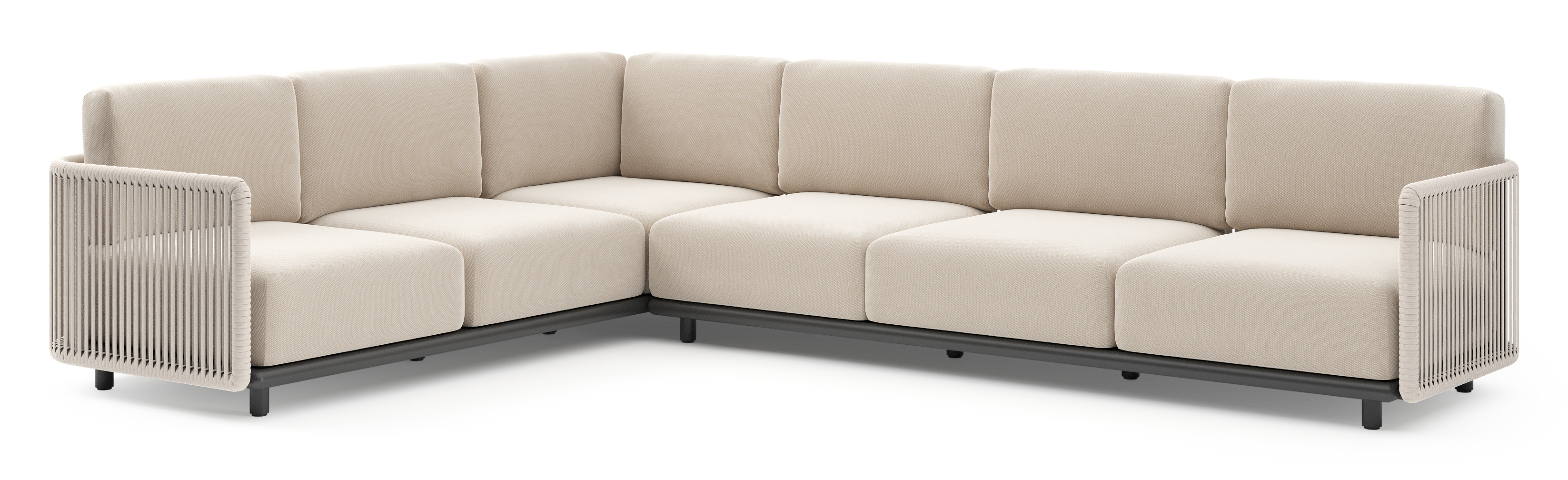 Organo loungehoek in zwart aluminium en beige verticaal geweven luxe vlakke rope met lopi antique all weather Sunbrella® luxe kussen | Exterioo tuinmeubelen
