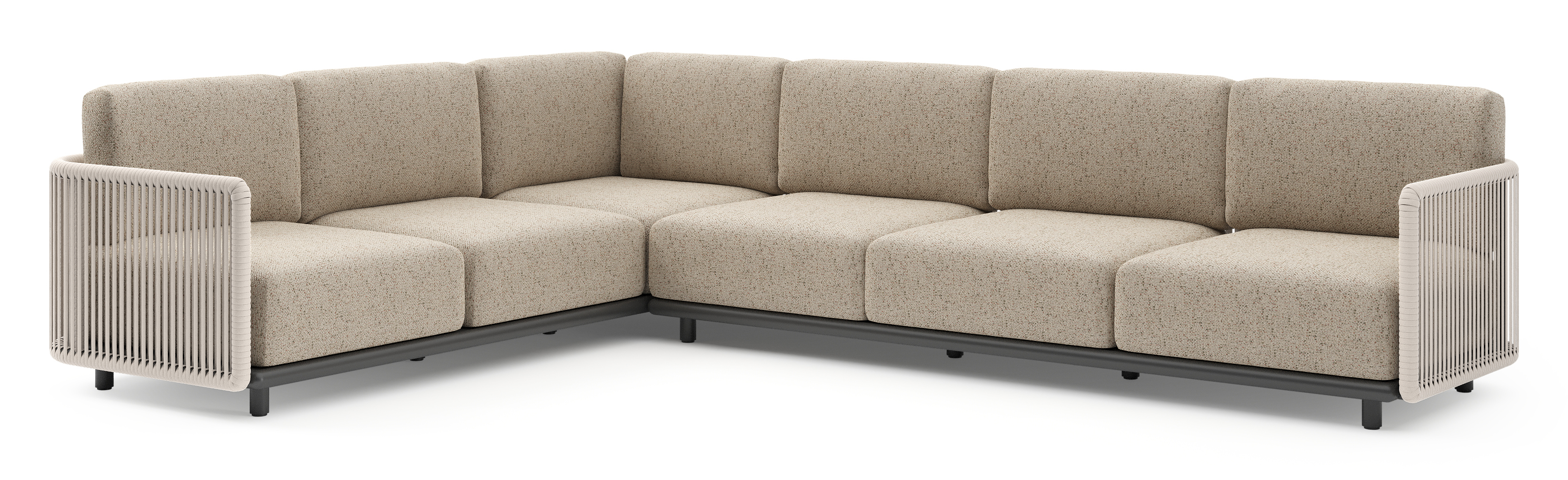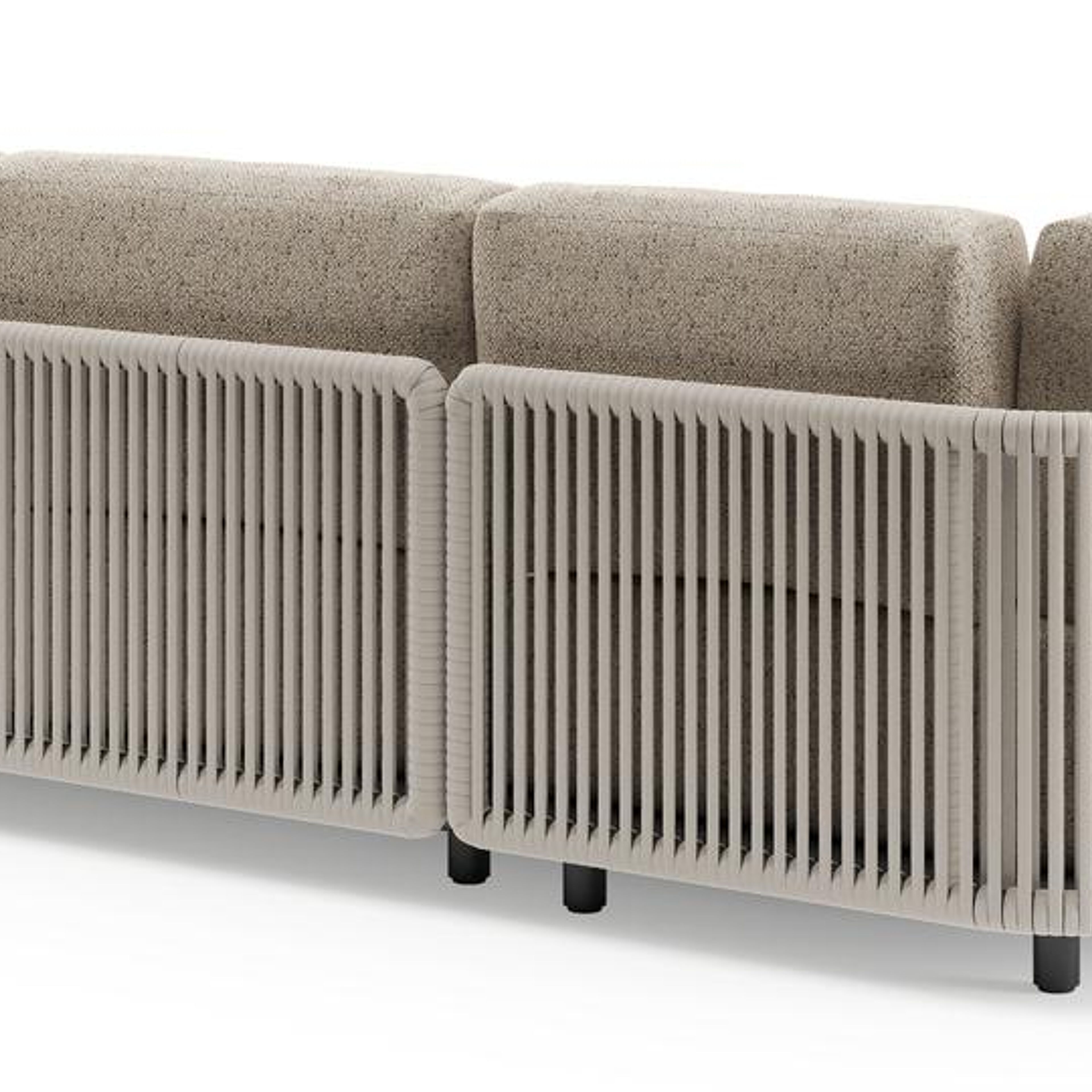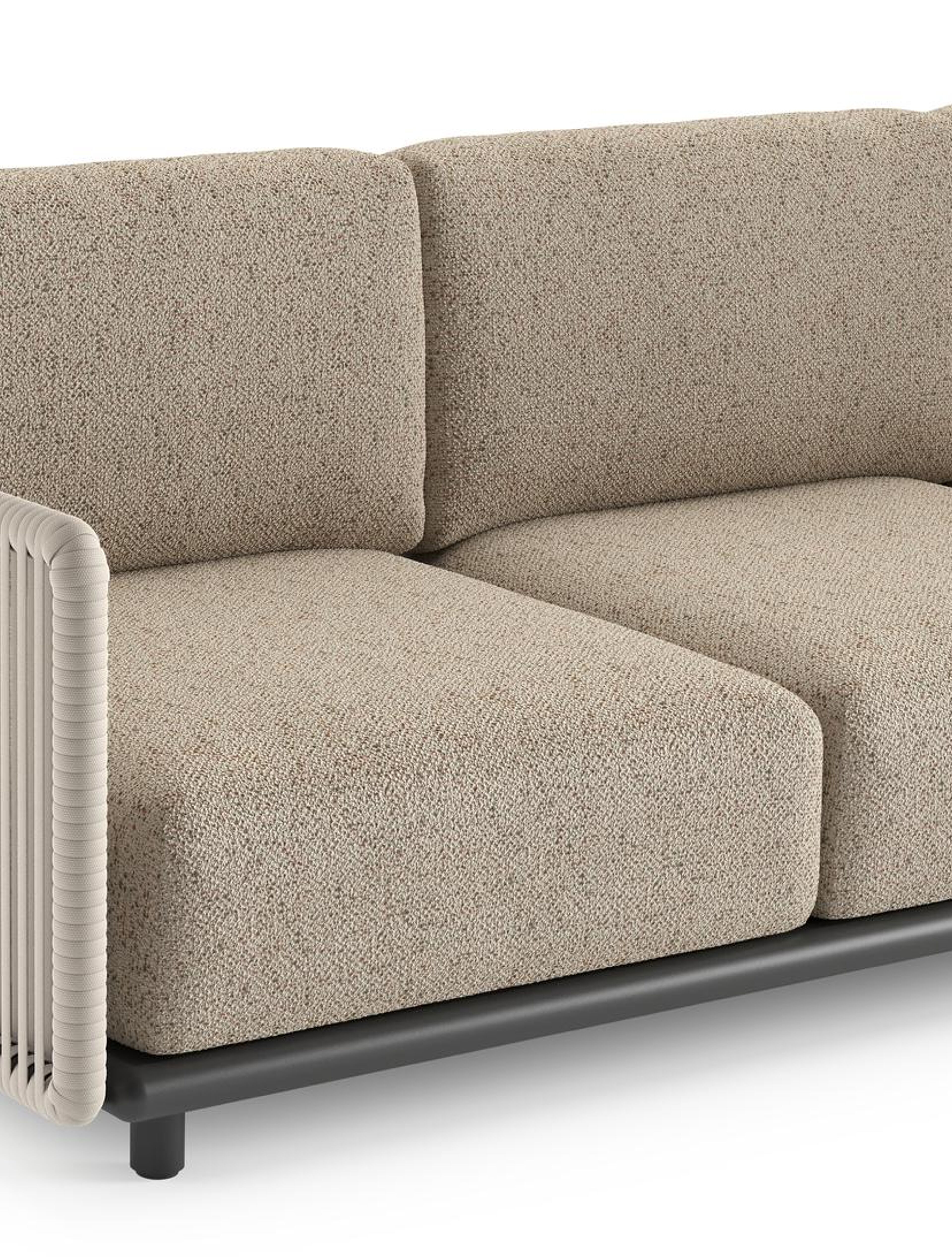 Organo loungehoek in zwart aluminium en beige verticaal geweven luxe vlakke rope met bora jungle all weather Cosytica kussen | Exterioo tuinmeubelen
