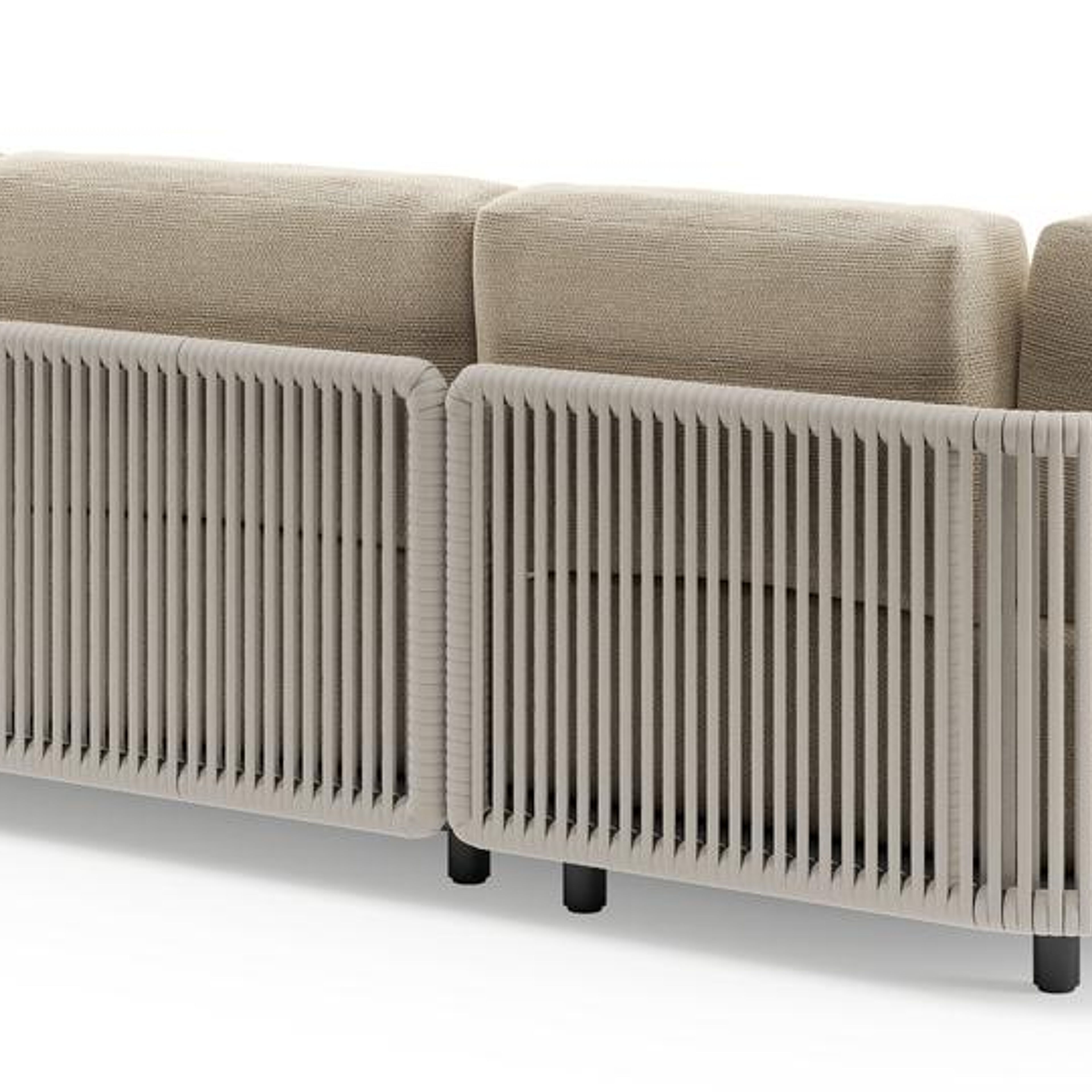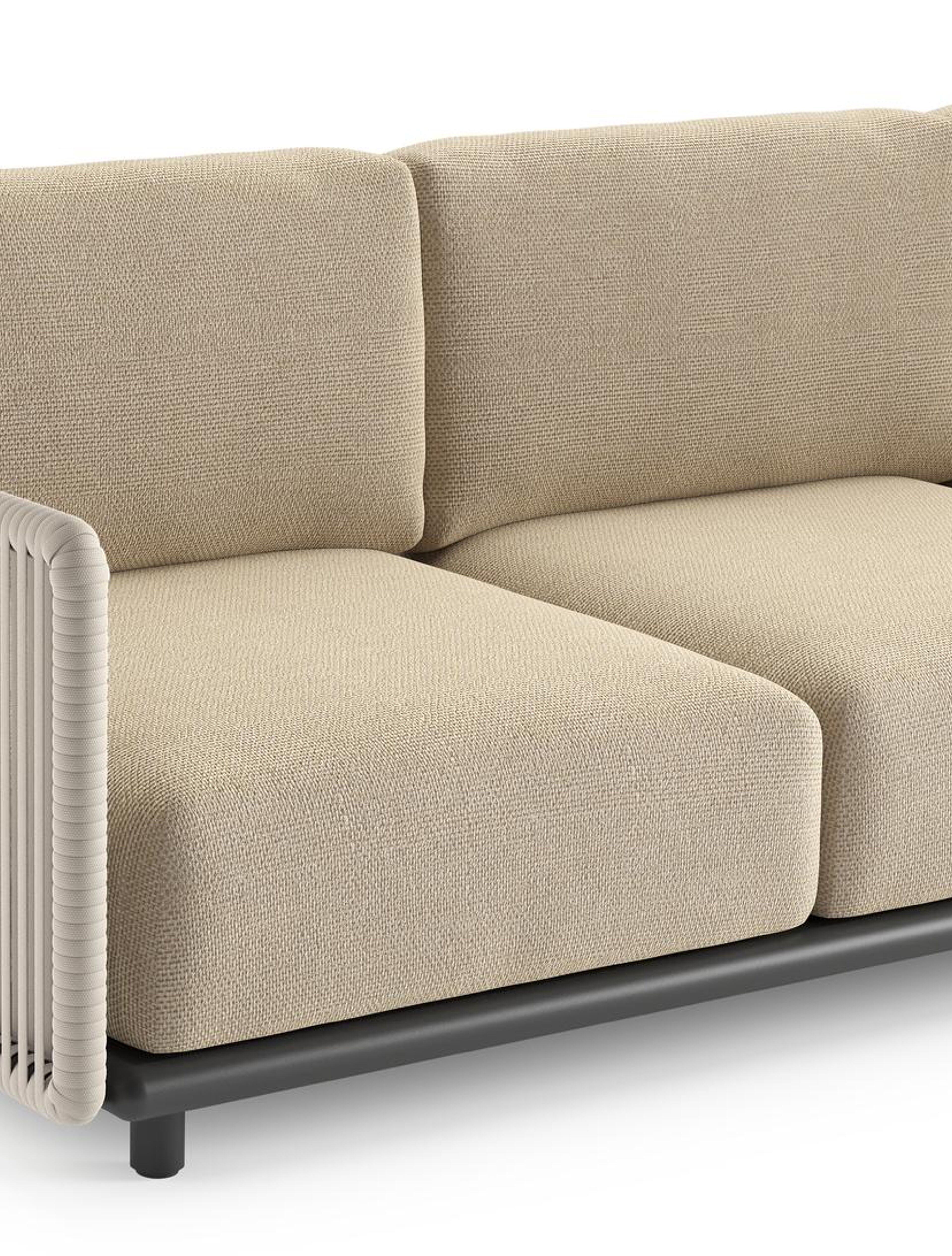 Organo loungehoek in zwart aluminium en beige verticaal geweven luxe vlakke rope met althea camel all weather Cosytica kussen | Exterioo tuinmeubelen