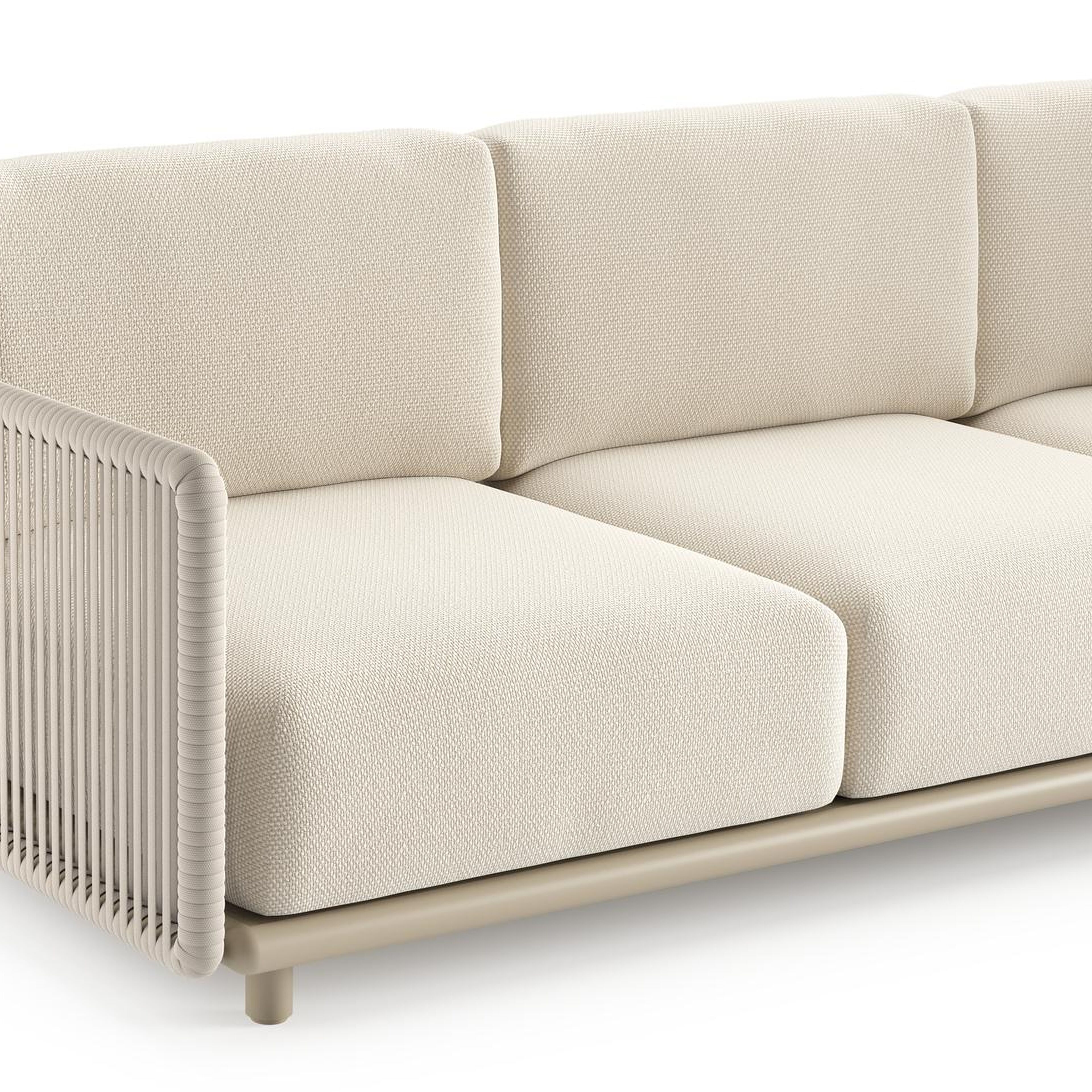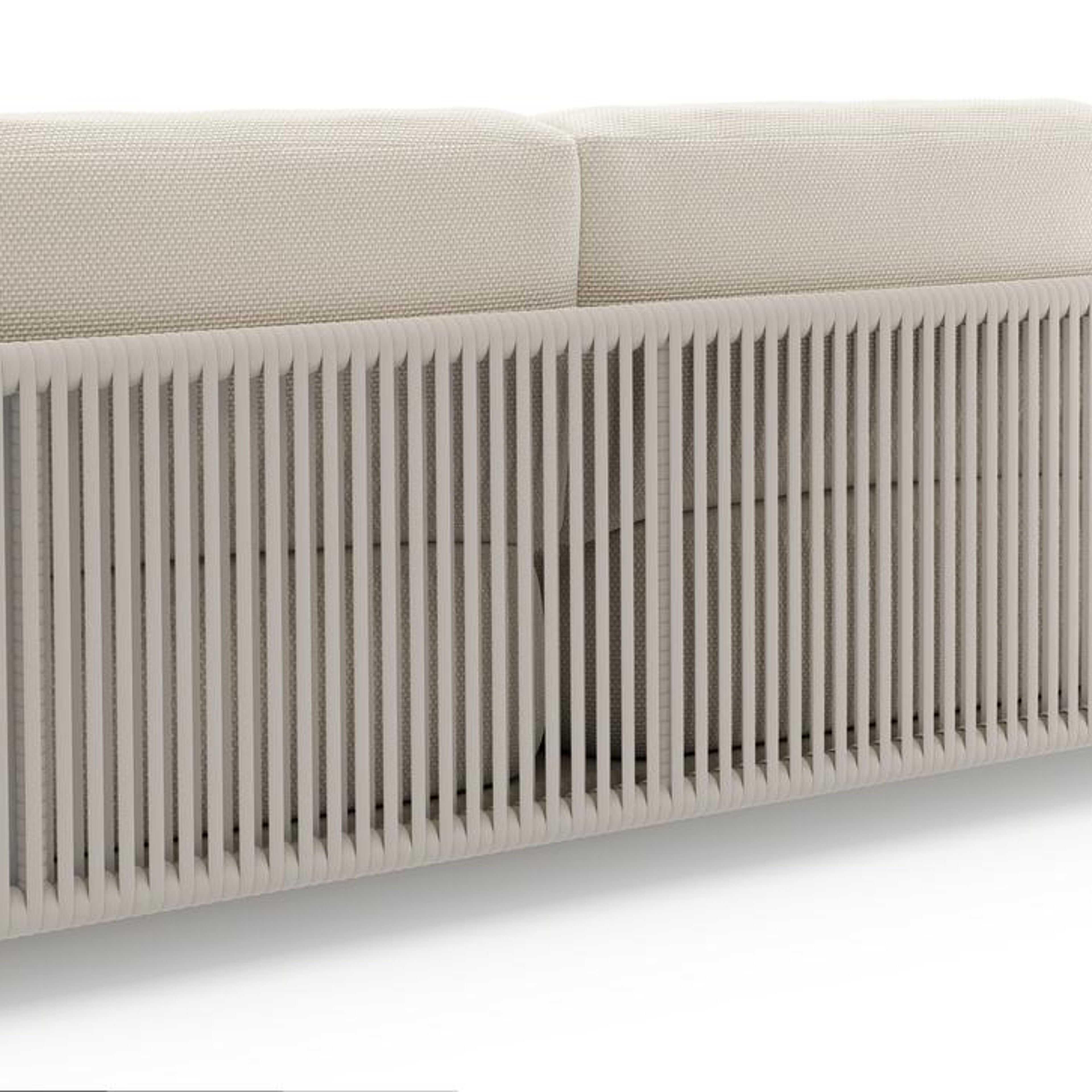 Organo loungeset in beige aluminium en beige verticaal geweven luxe vlakke rope met althea off white all weather Cosytica kussen | Exterioo tuinmeubelen