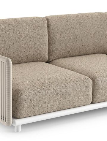 Organo loungeset in wit aluminium en beige verticaal geweven luxe vlakke rope met bora jungle all weather Cosytica kussen | Exterioo