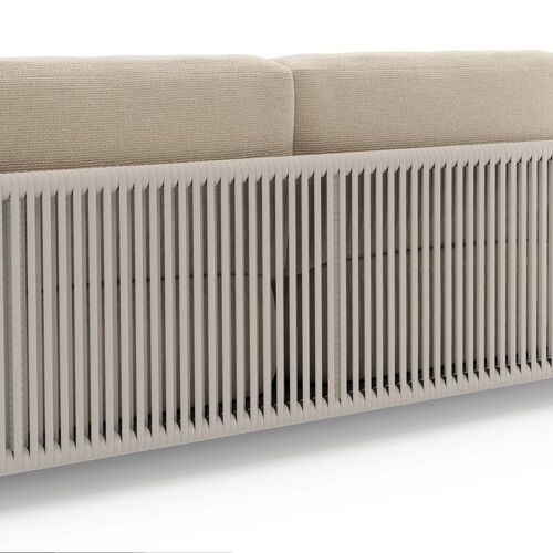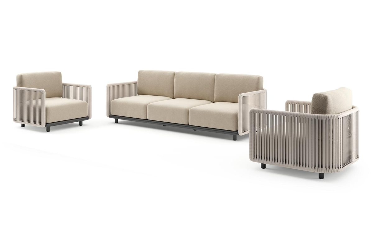 Organo loungeset in zwart aluminium en beige verticaal geweven luxe vlakke rope met althea chalk all weather Cosytica kussen | Exterioo