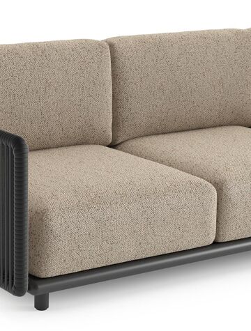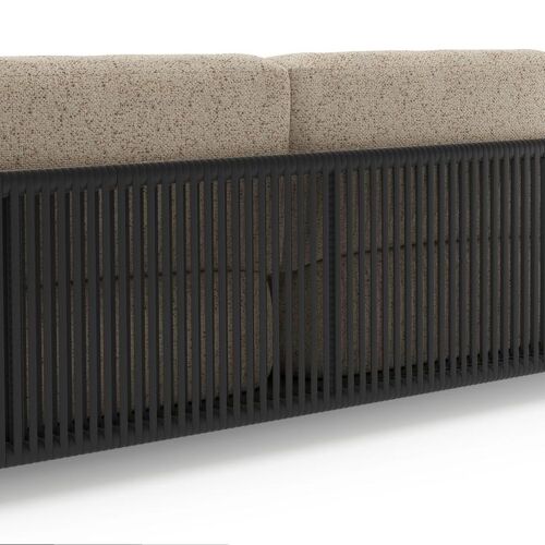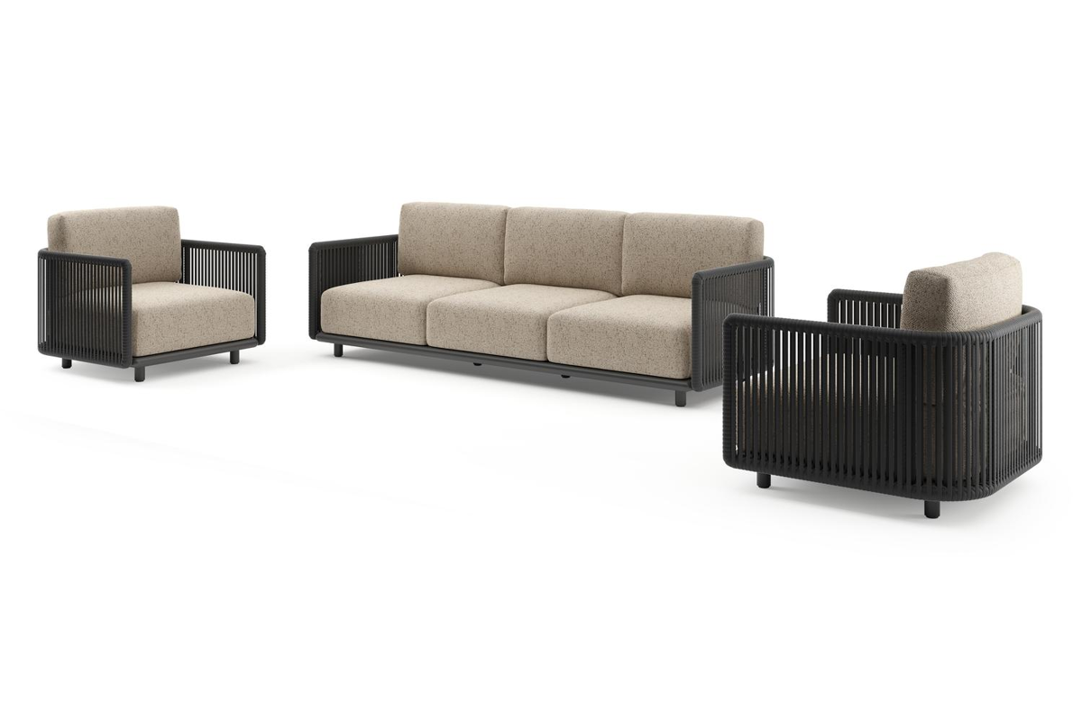 Organo loungeset in zwart aluminium en zwart verticaal geweven luxe vlakke rope met bora jungle all weather Cosytica kussen | Exterioo