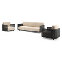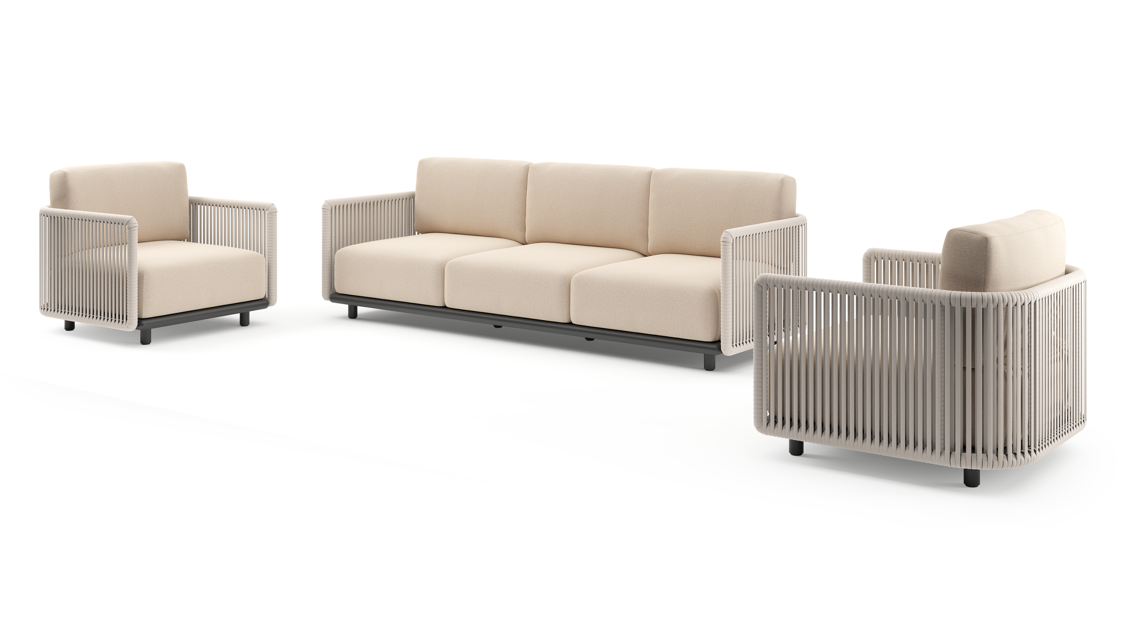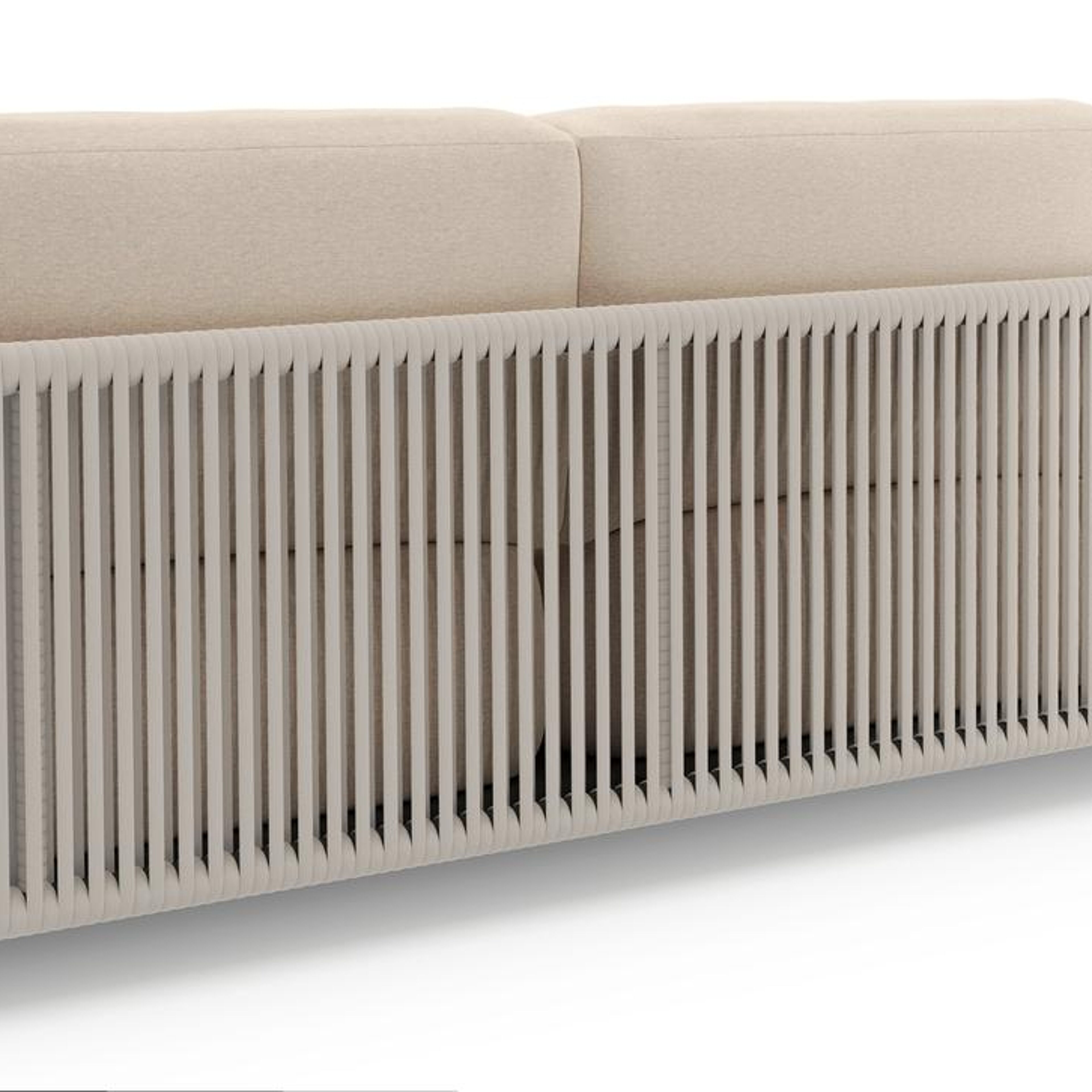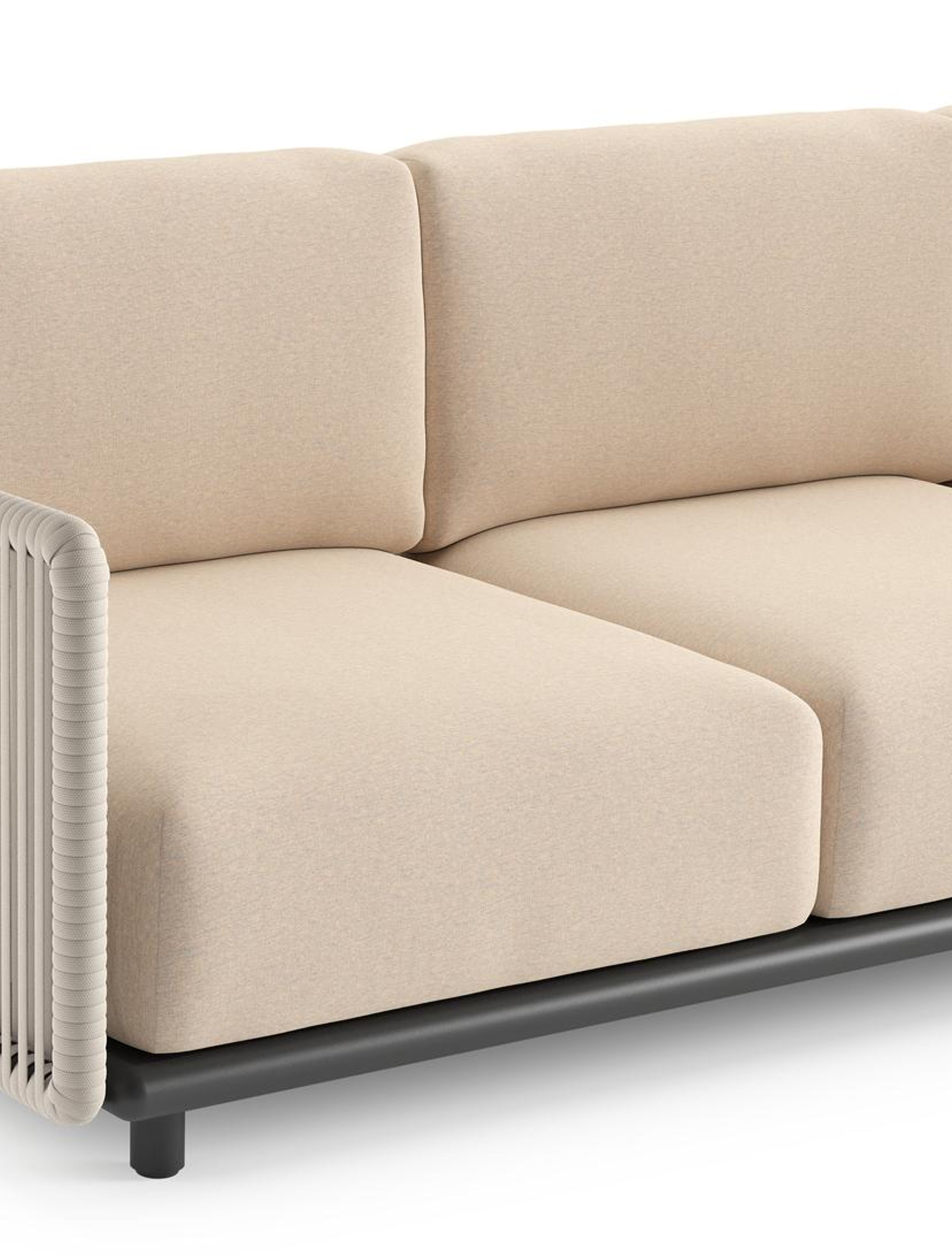 Organo loungeset in zwart aluminium en beige verticaal geweven luxe vlakke rope met heritage papyrus all weather sunbrella® luxe kussens | Exterioo tuinmeubelen