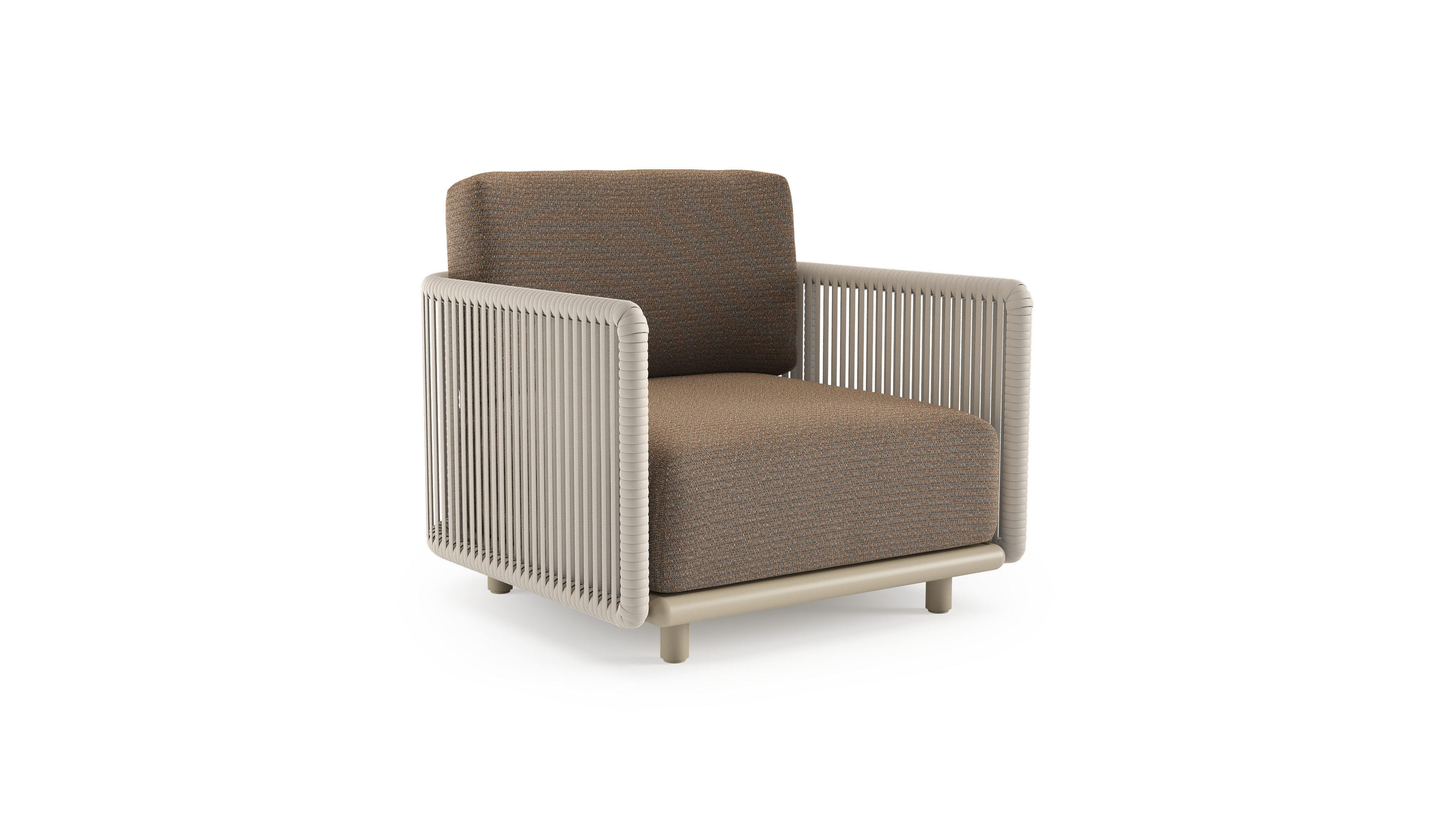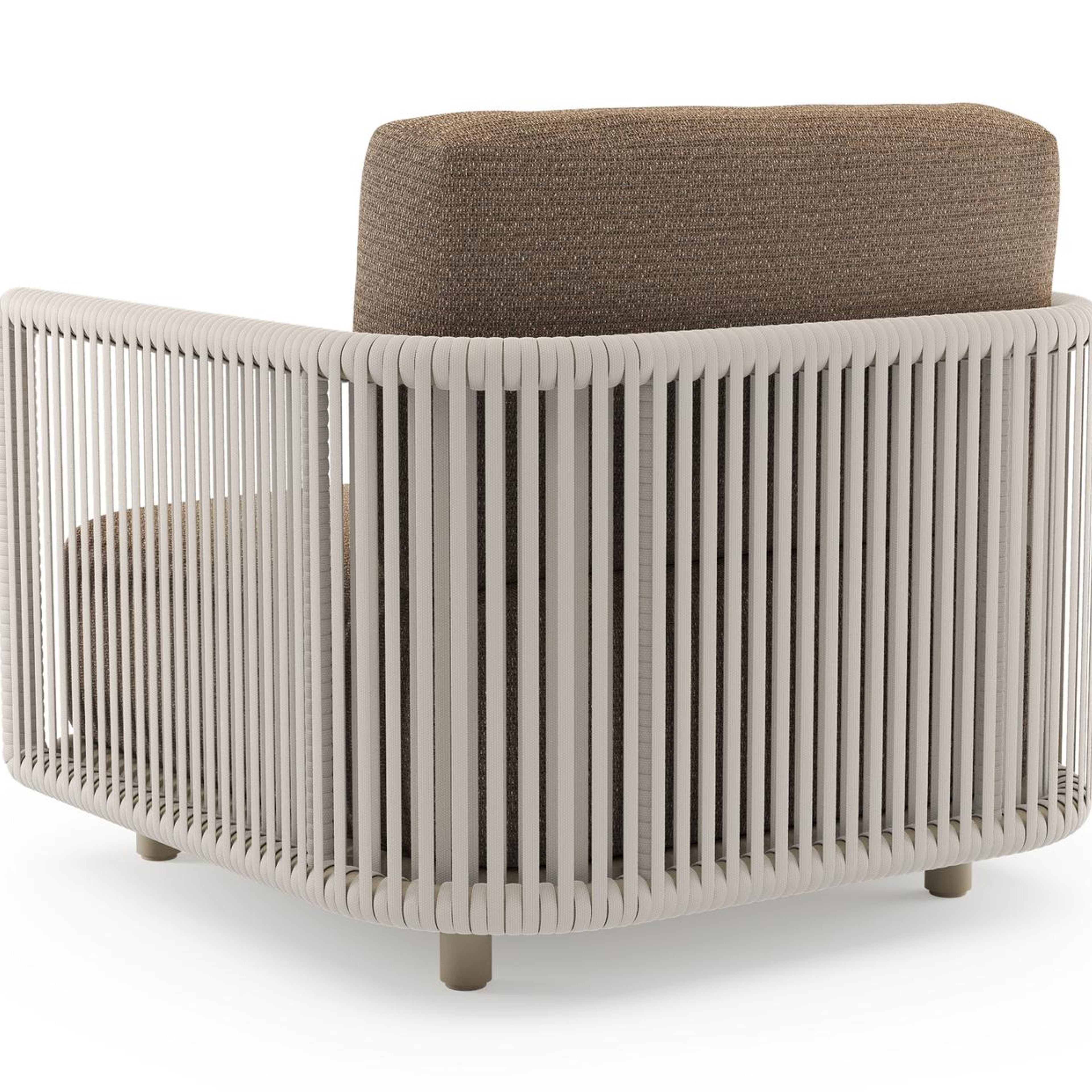 Organo loungestoel in beige aluminium en beige verticaal geweven luxe vlakke rope met firenze tunder all weather Solica kussen | Exterioo tuinmeubelen