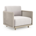 Organo loungestoel in wit aluminium en beige verticaal geweven luxe vlakke rope met savane whisper all weather Sunbrella® luxe kussen | Exterioo tuinmeubelen