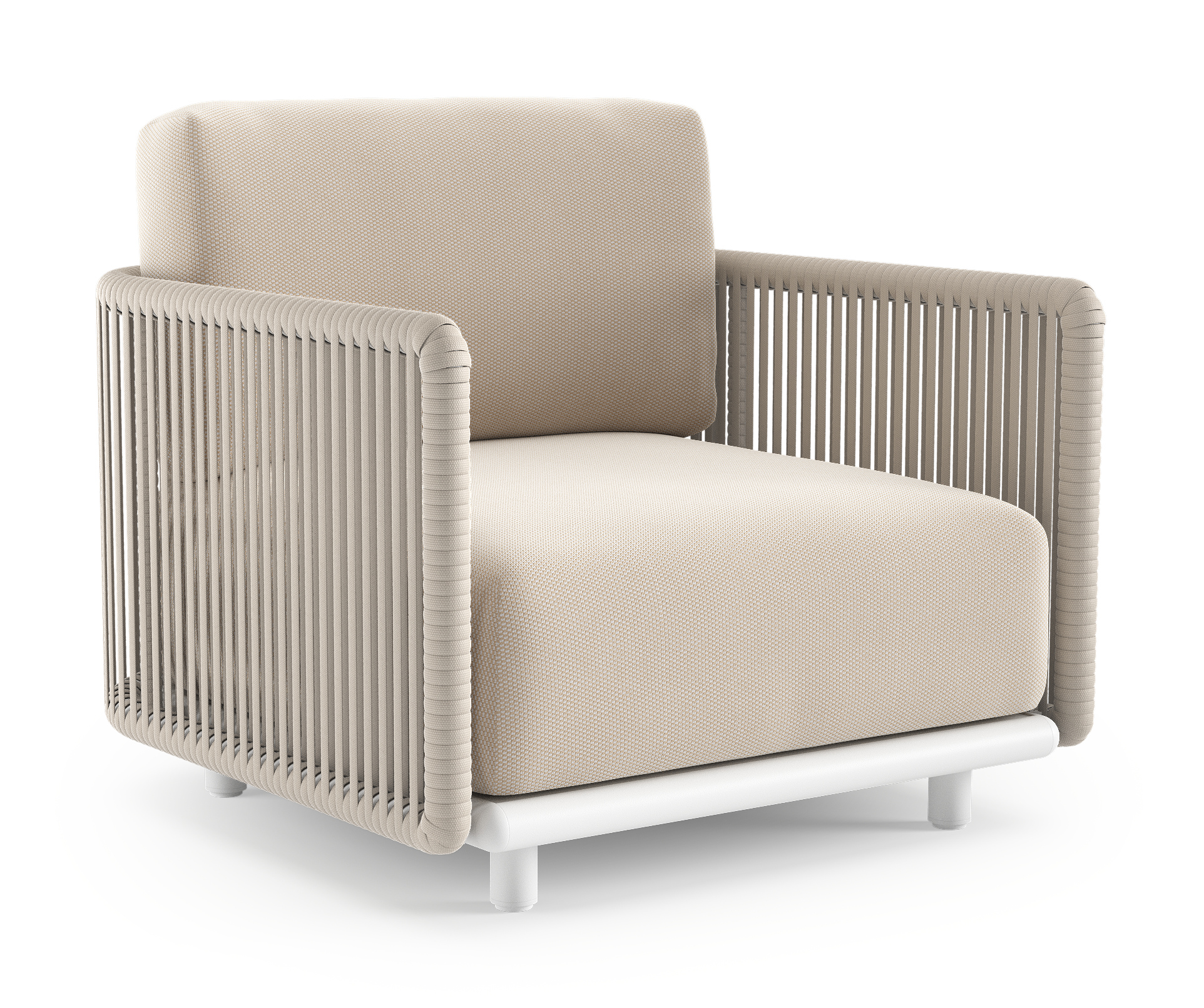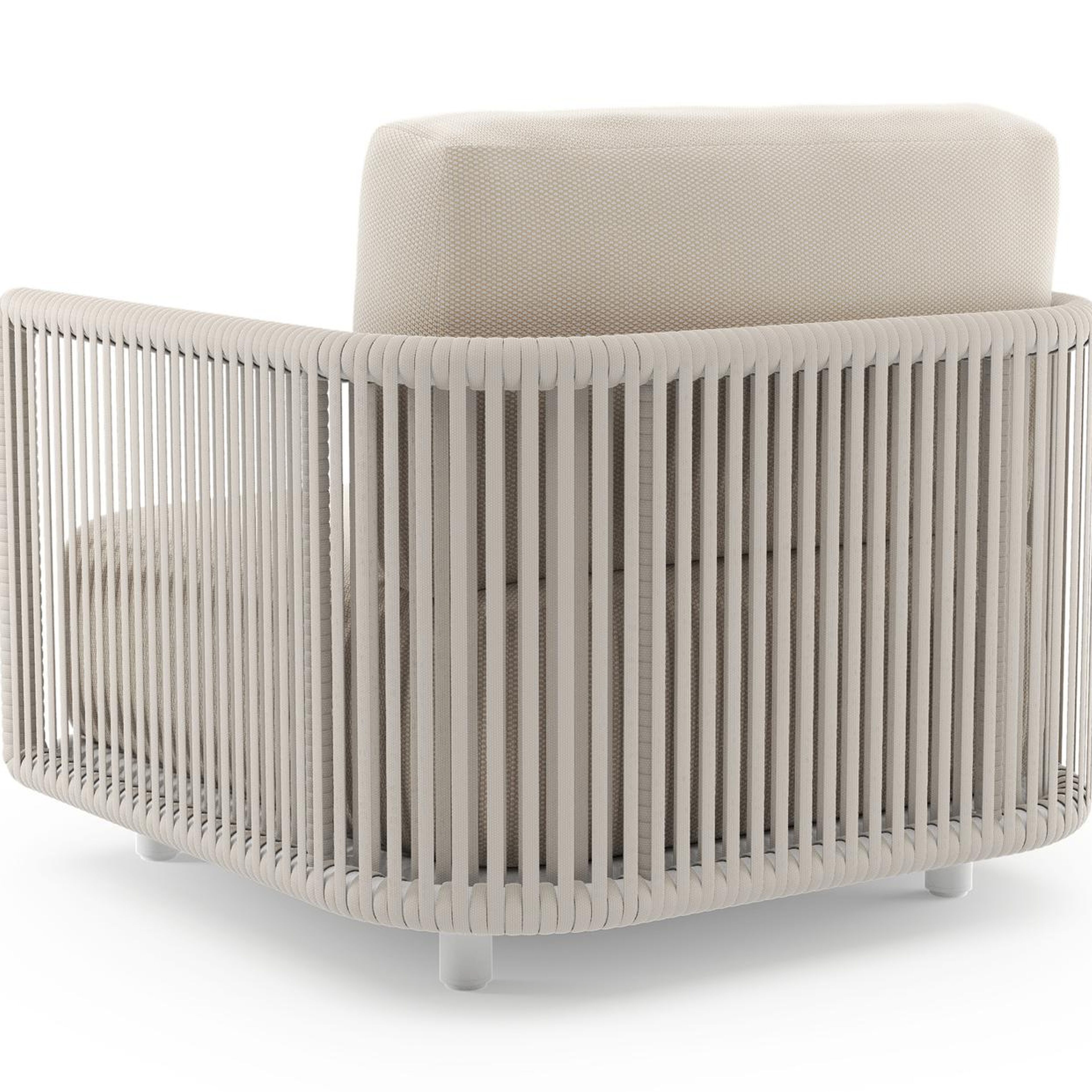 Organo loungestoel in wit aluminium en beige verticaal geweven luxe vlakke rope met lopi antique all weather Sunbrella® luxe kussen | Exterioo tuinmeubelen