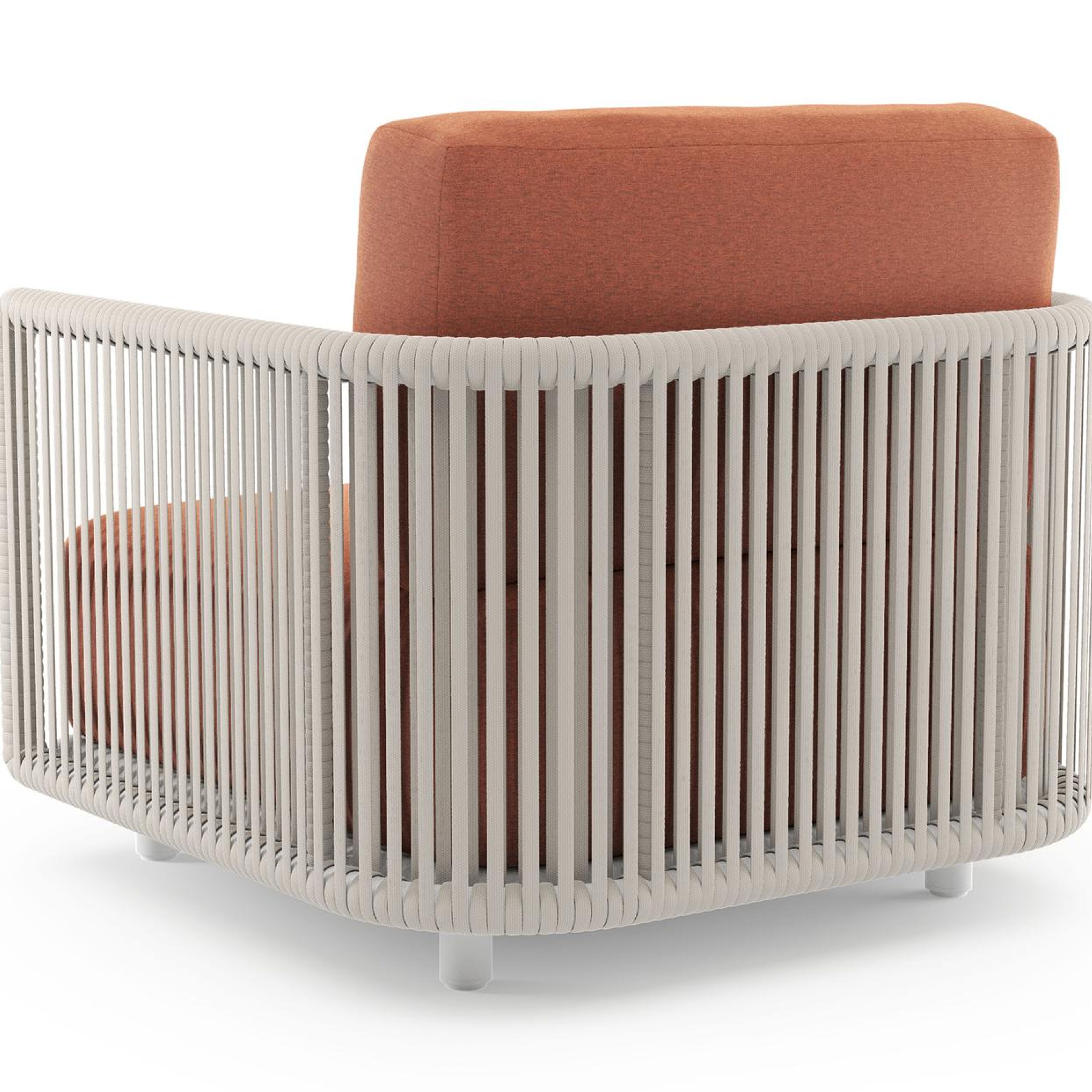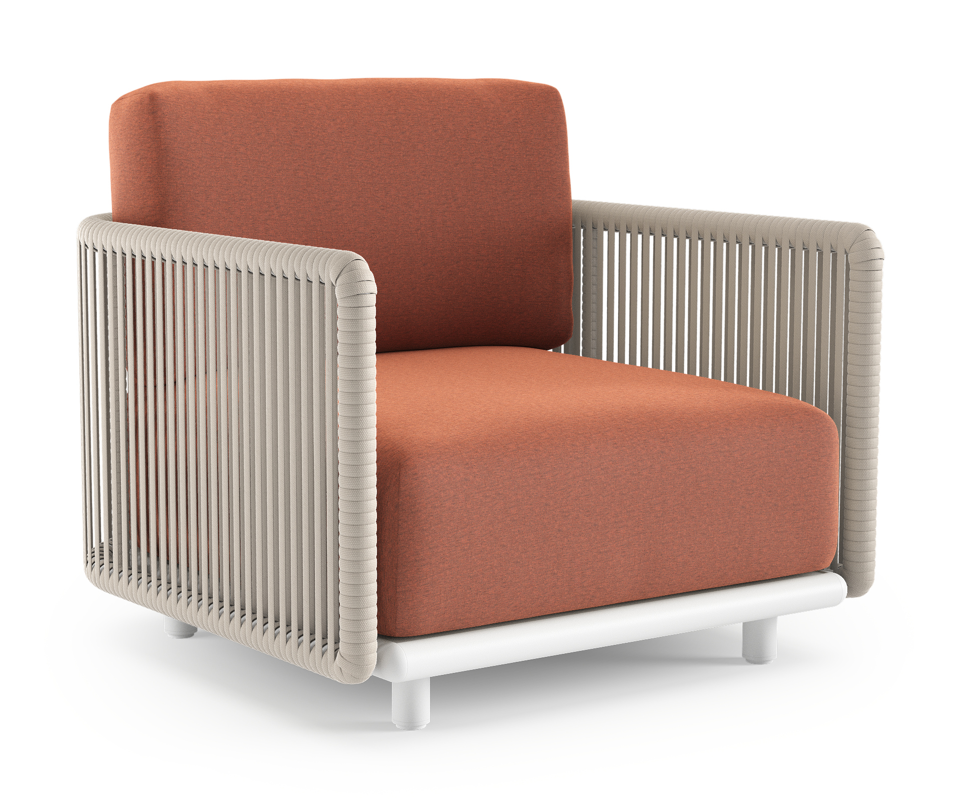 Organo loungestoel in wit aluminium en beige verticaal geweven luxe vlakke rope met heritage rust all weather Sunbrella® luxe kussen | Exterioo tuinmeubelen