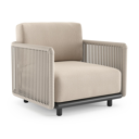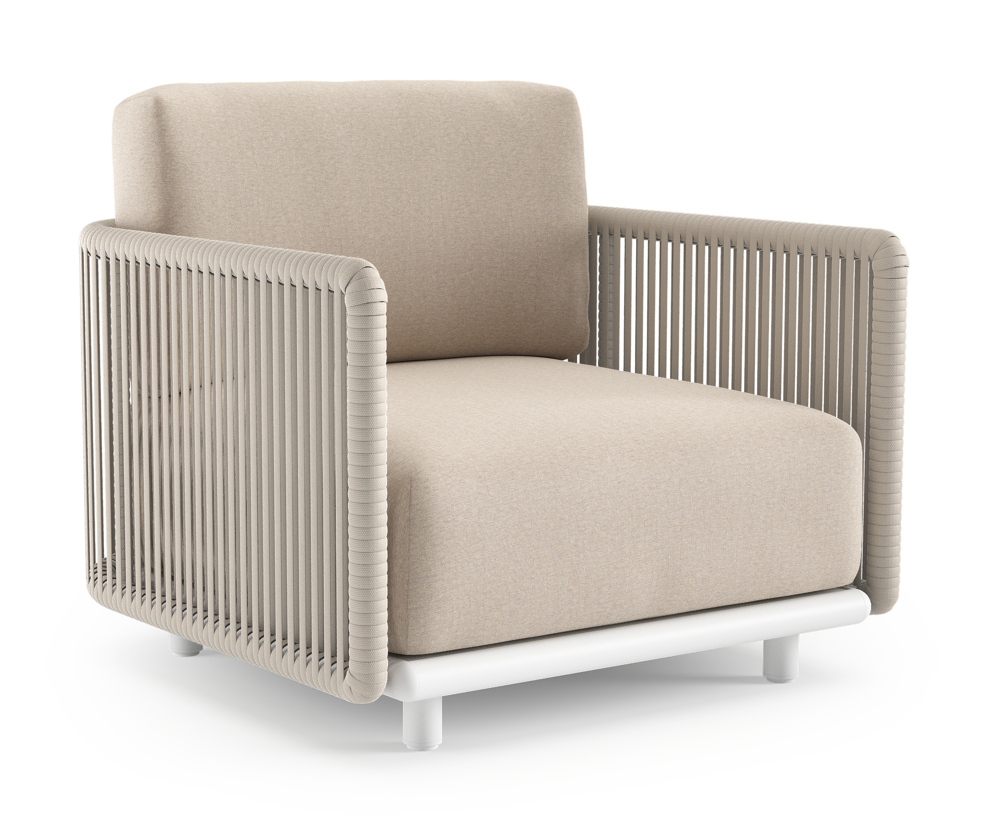 Organo loungestoel in wit aluminium en beige verticaal geweven luxe vlakke rope met heritage ash all weather Sunbrella® luxe kussen | Exterioo tuinmeubelen