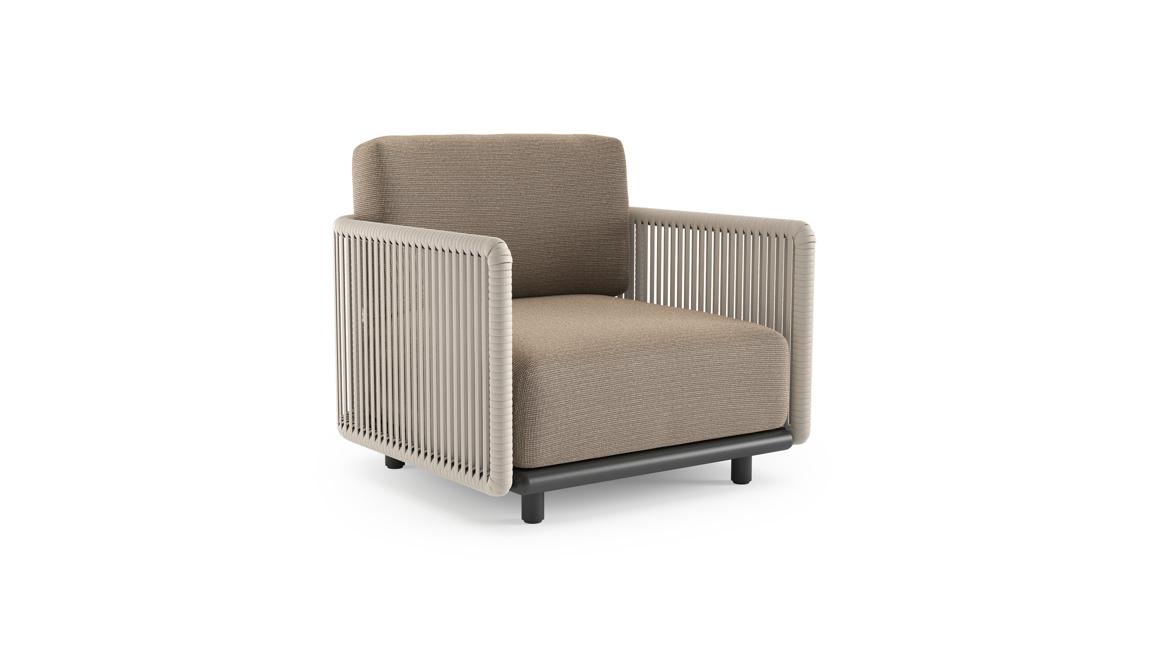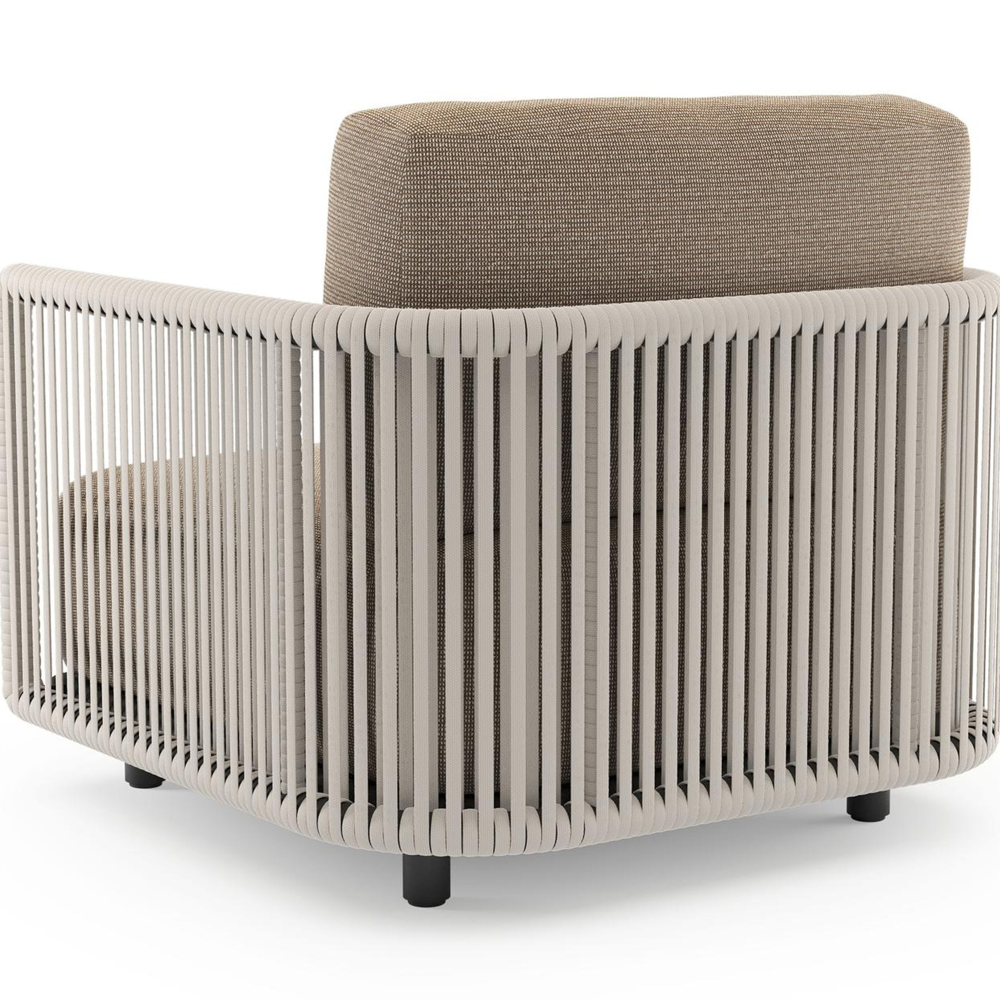 Organo loungestoel in zwart aluminium en beige verticaal geweven luxe vlakke rope met firenze earth all weather Solica kussen | Exterioo tuinmeubelen