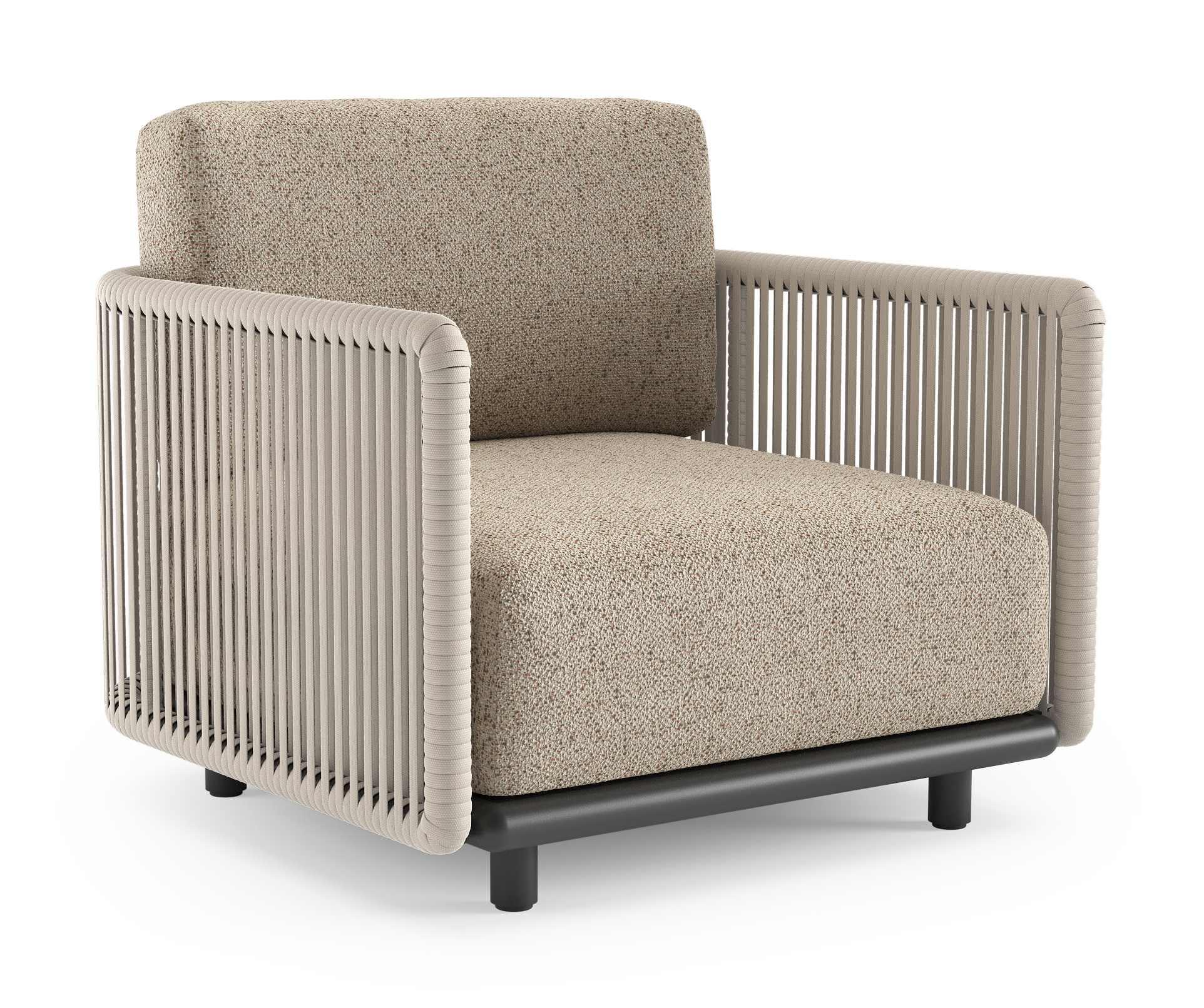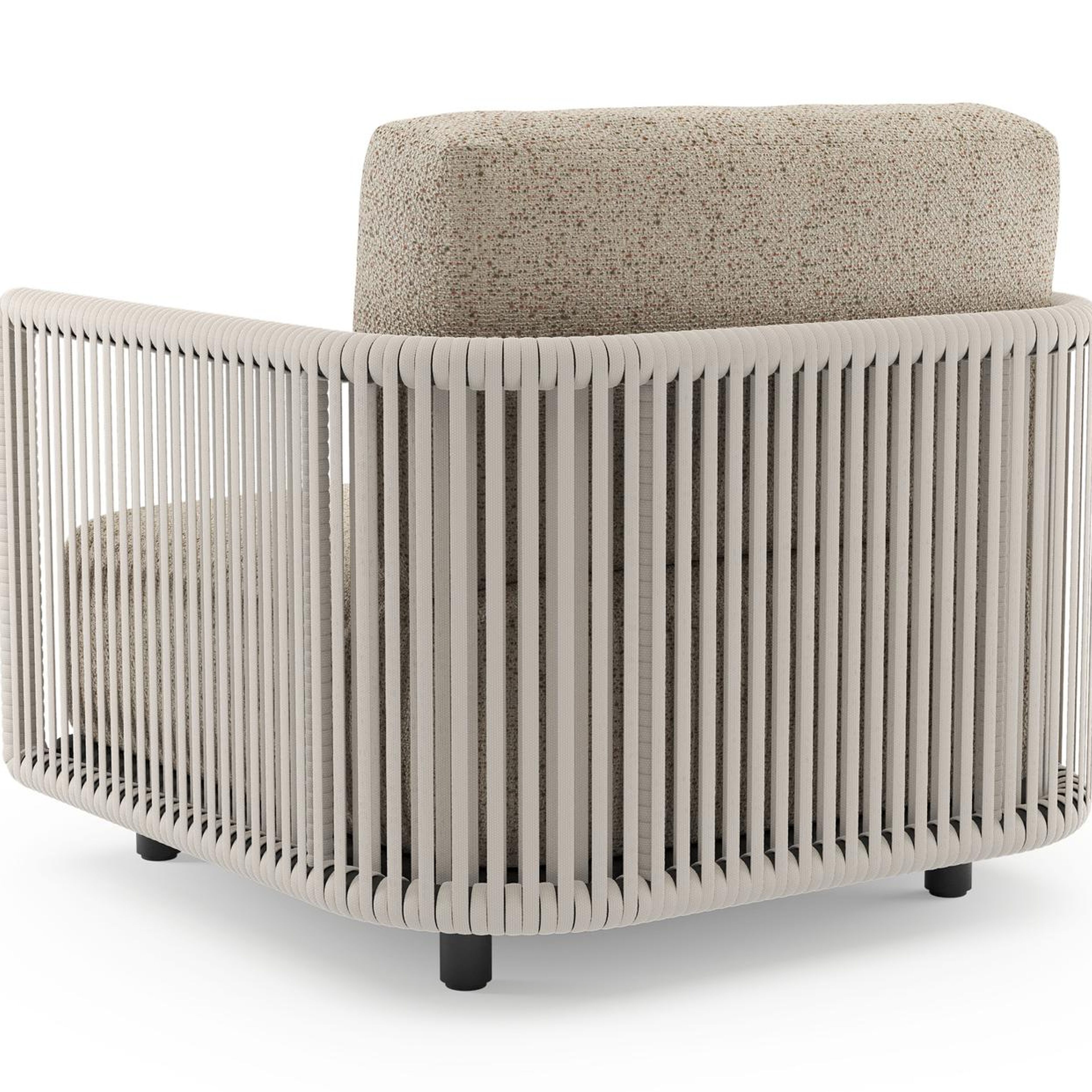 Organo loungestoel in zwart aluminium en beige verticaal geweven luxe vlakke rope met bora jungle all weather Cosytica kussen | Exterioo tuinmeubelen