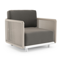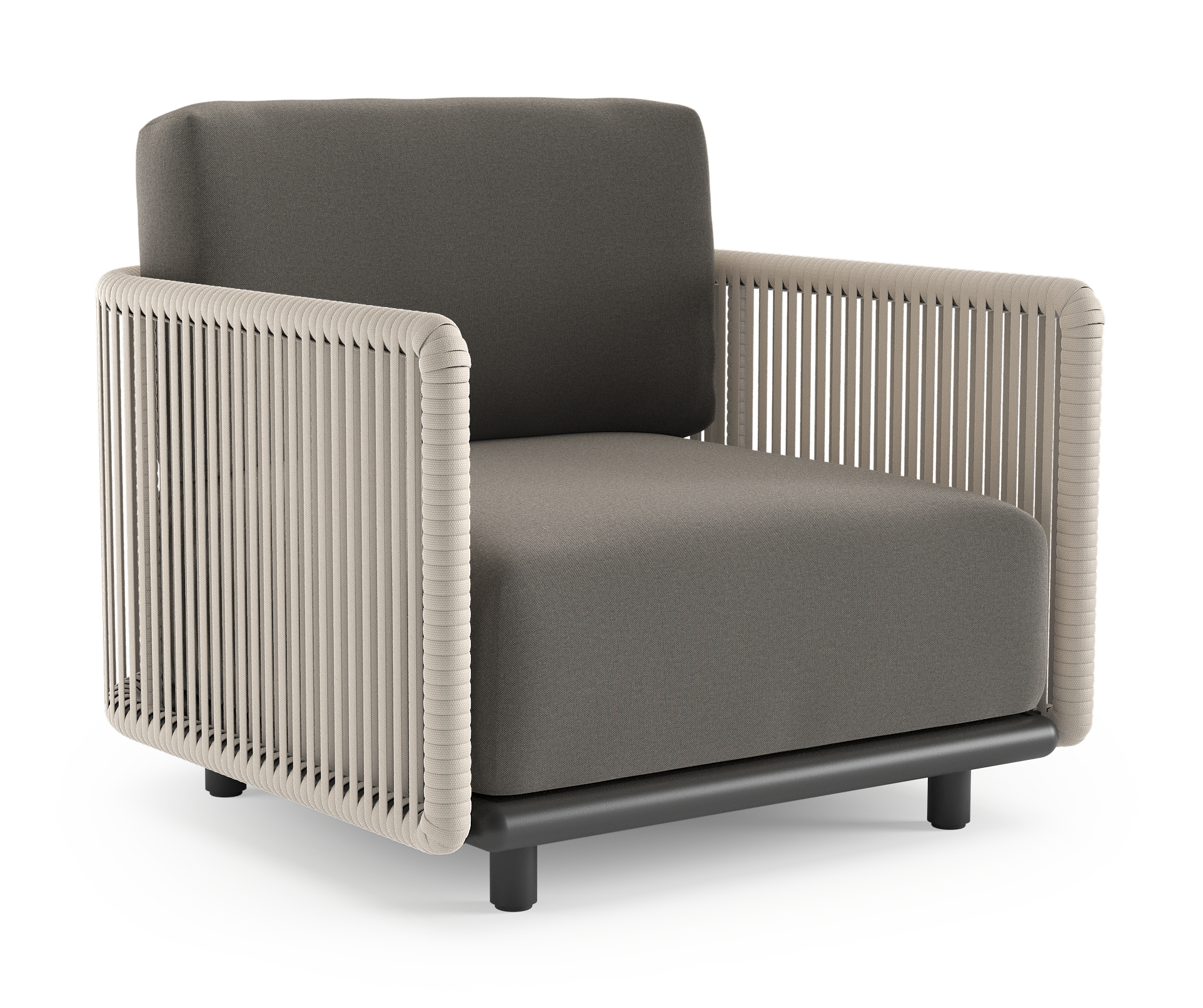 Organo loungestoel in zwart aluminium en beige verticaal geweven luxe vlakke rope met natte dark taupe all weather Sunbrella® luxe kussen | Exterioo tuinmeubelen