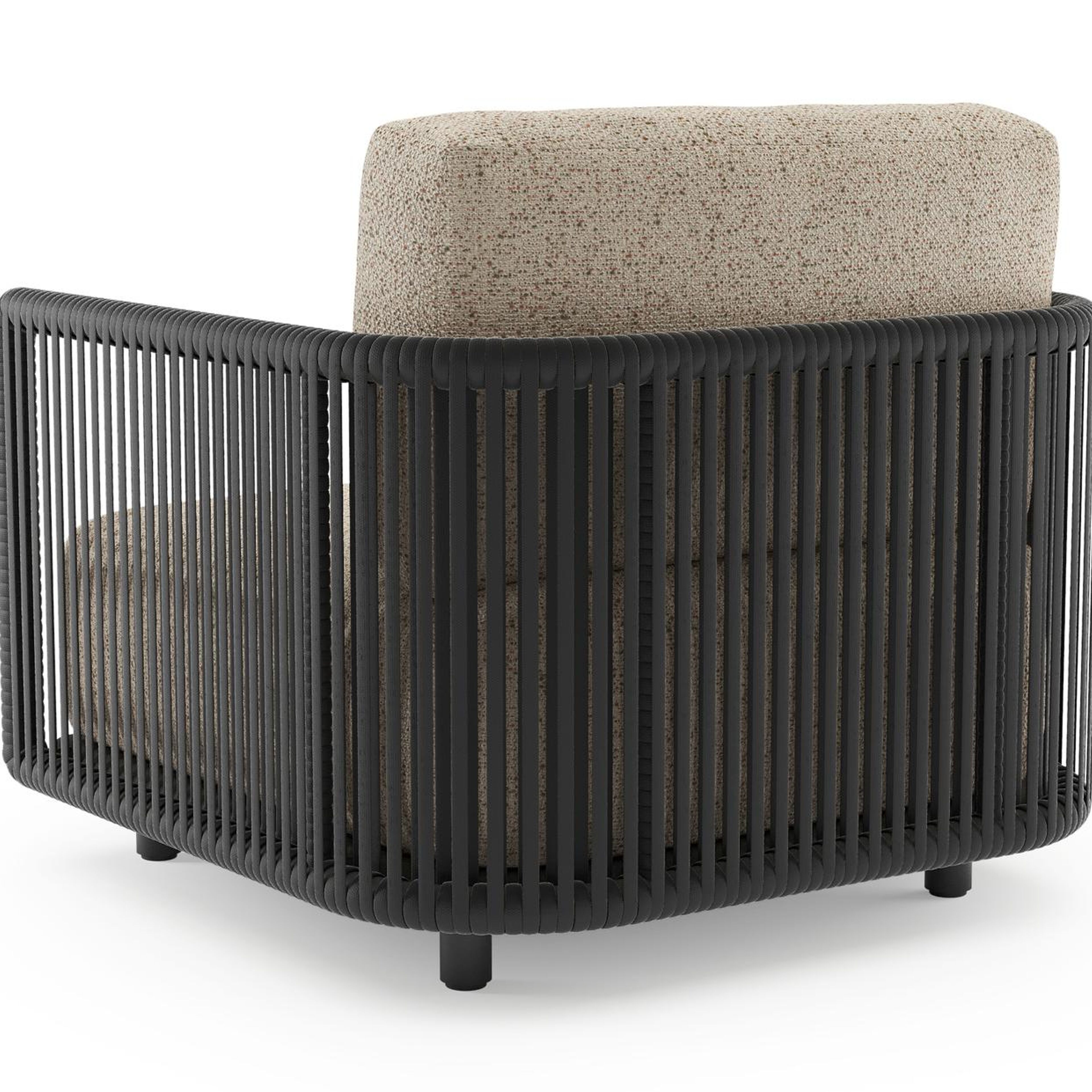 Organo loungestoel in zwart aluminium en zwart verticaal geweven luxe vlakke rope met bora jungle all weather Cosytica kussen | Exterioo tuinmeubelen