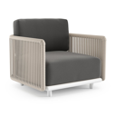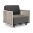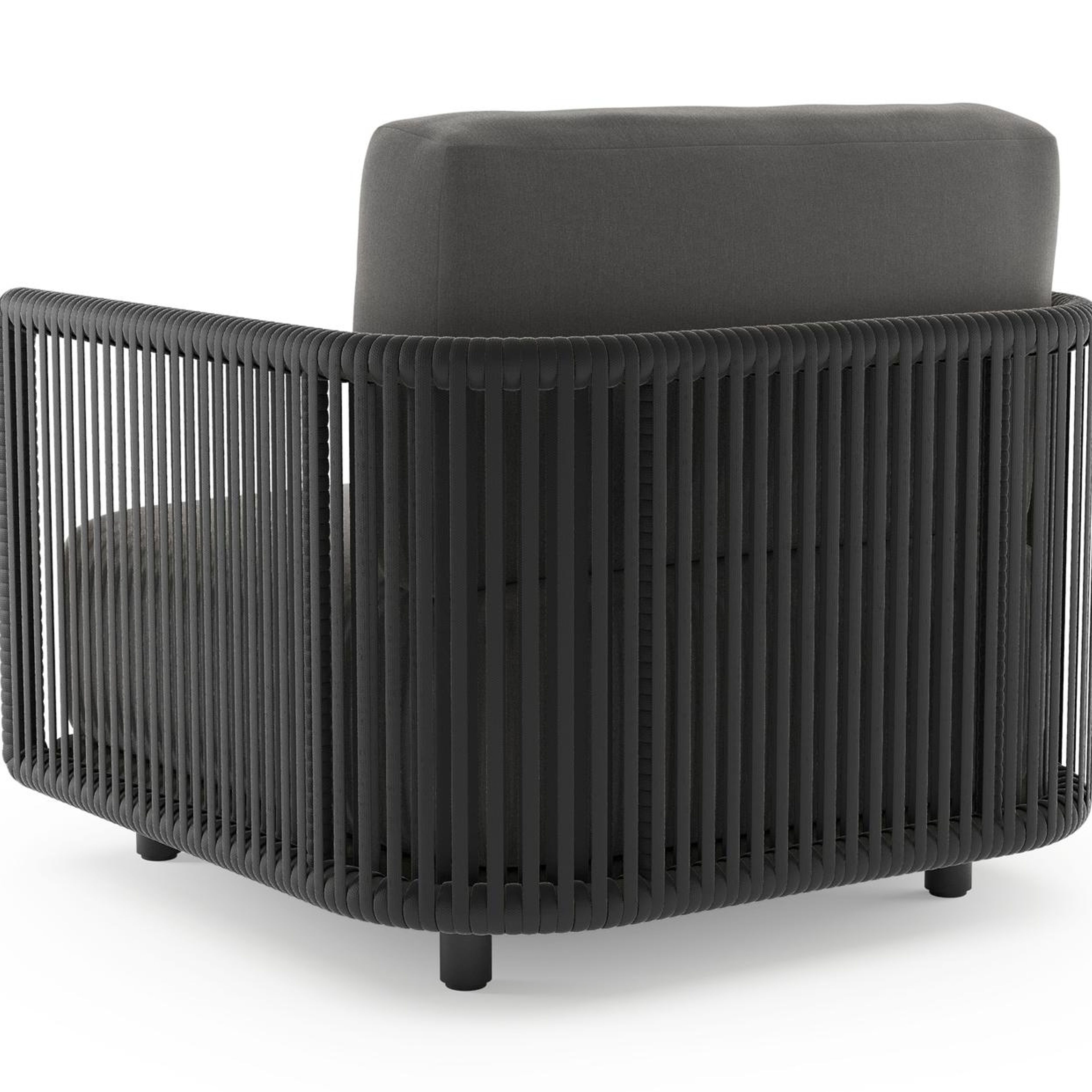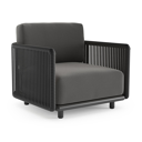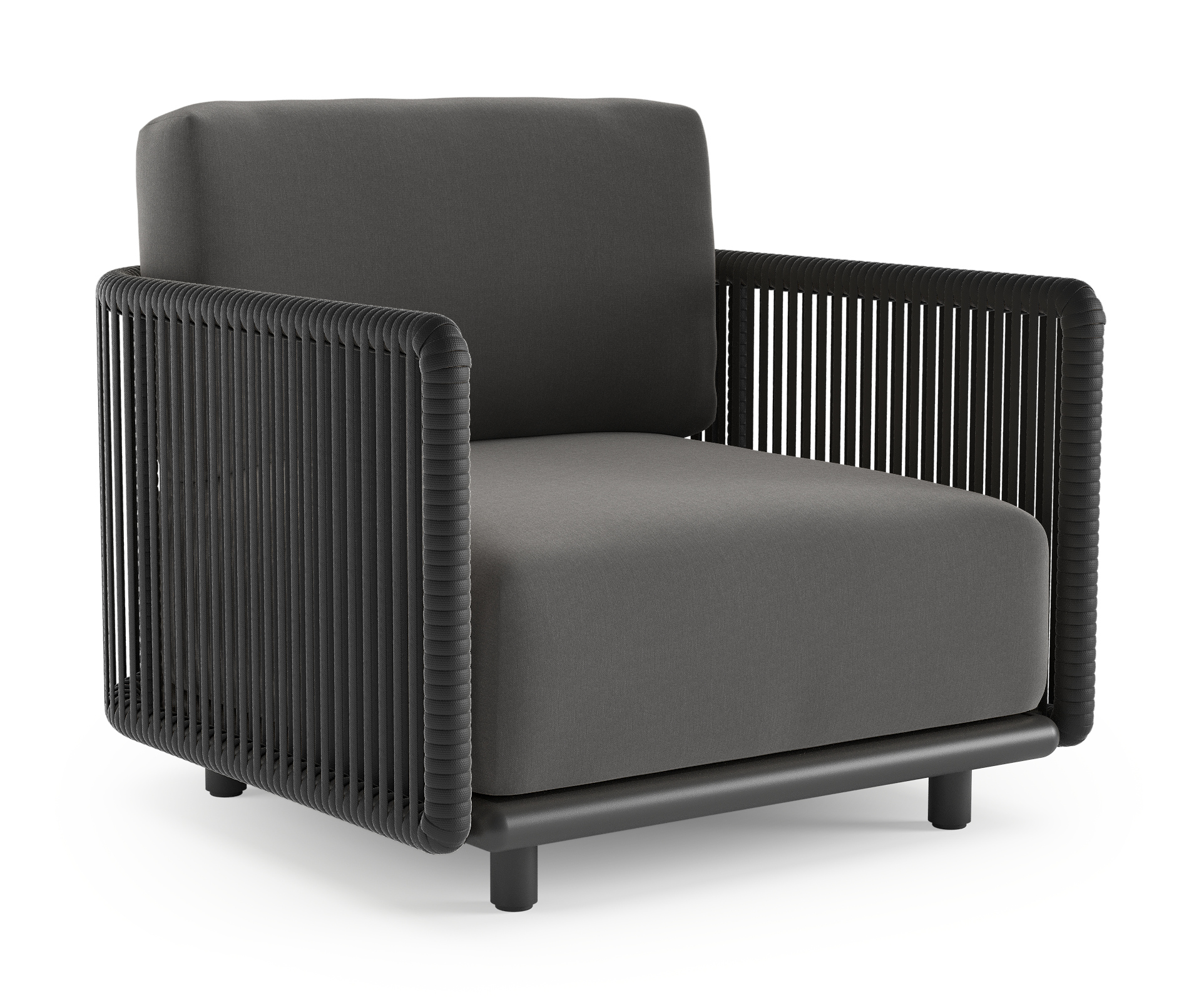 Organo loungestoel in zwart aluminium en zwart verticaal geweven luxe vlakke rope met natte charcoal chine all weather Sunbrella® luxe kussen | Exterioo tuinmeubelen