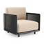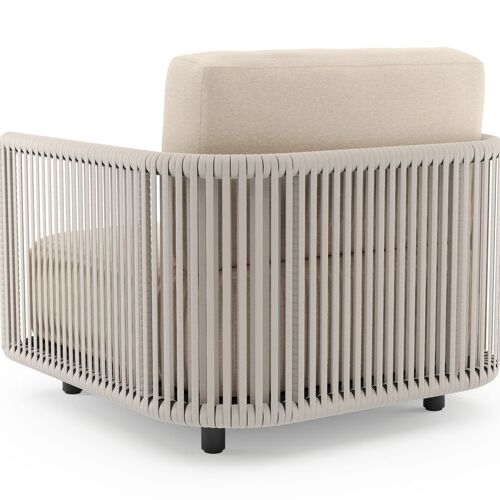 Organo loungestoel 1-zit in zwart aluminium en beige verticaal geweven luxe vlakke rope met heritage papyrus all weather sunbrella® luxe kussen | Exterioo