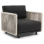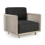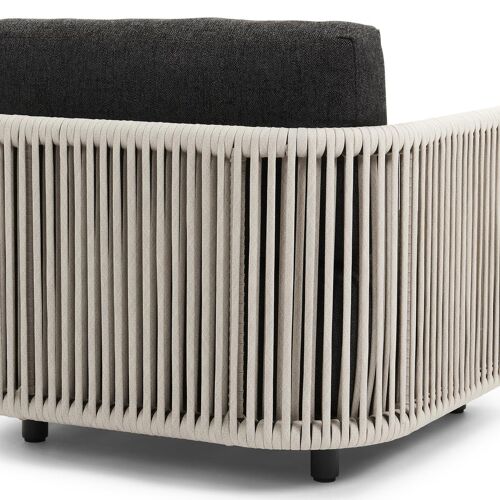 Organo loungestoel 1-zit in zwart aluminium en beige verticaal geweven luxe vlakke rope met chartres sooty all weather sunbrella® luxe kussen | Exterioo