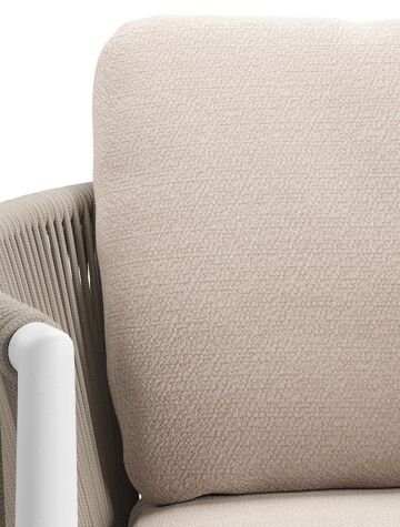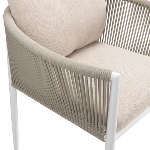Organo tuinstoel in beige aluminium en beige verticaal geweven luxe vlakke rope met stoelkussen in All Weather Sunbrella® Luxe Wander Pilat | Exterioo