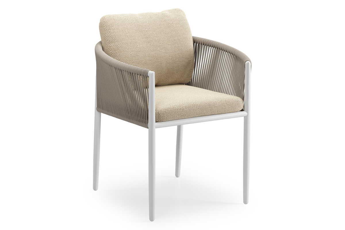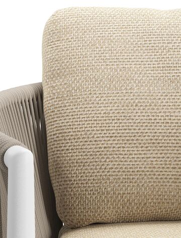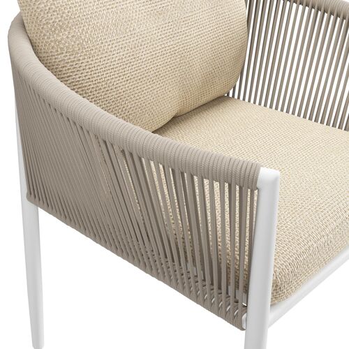 Organo tuinstoel in beige aluminium en beige verticaal geweven luxe vlakke rope met stoelkussen in All Weather Cosytica Althea Camel | Exterioo