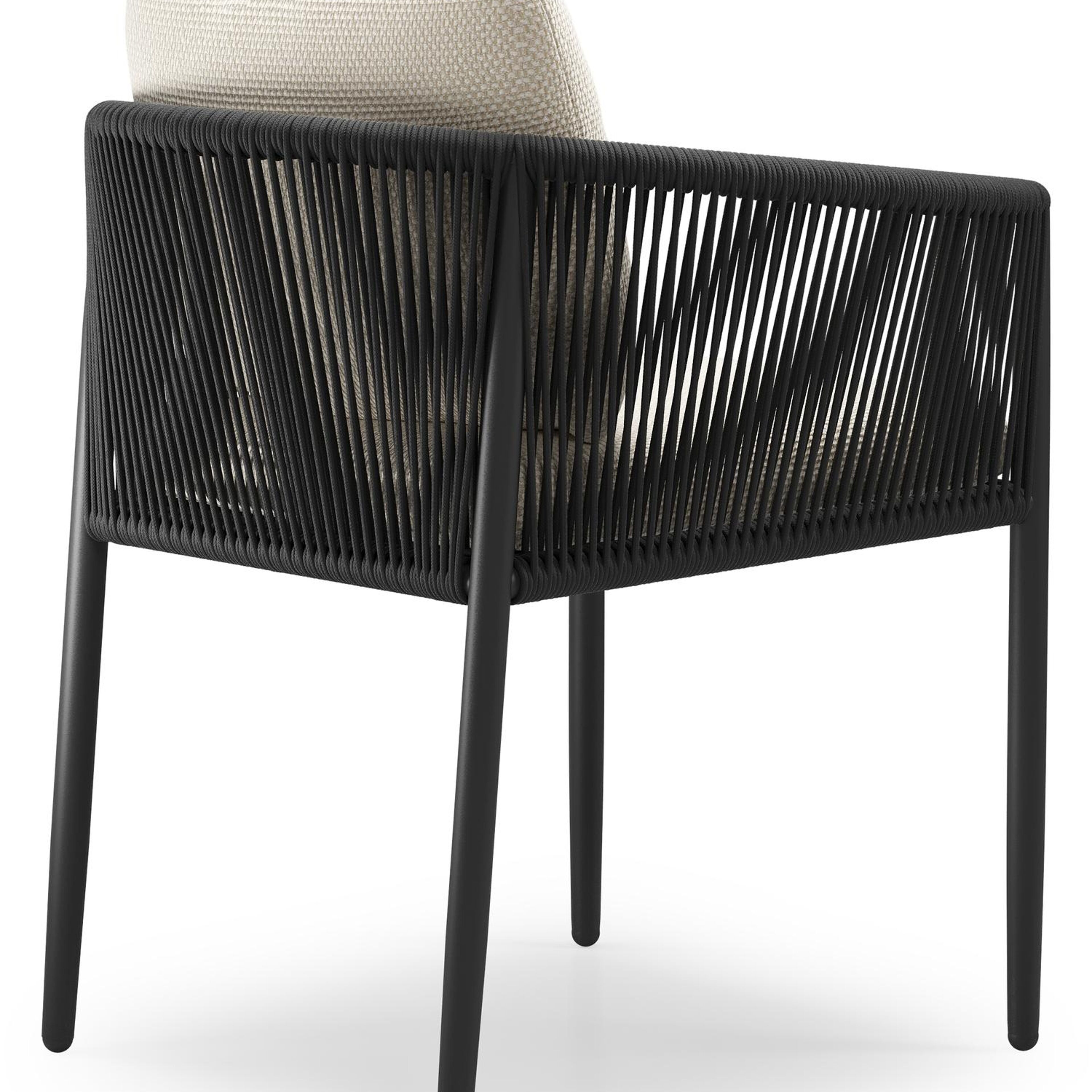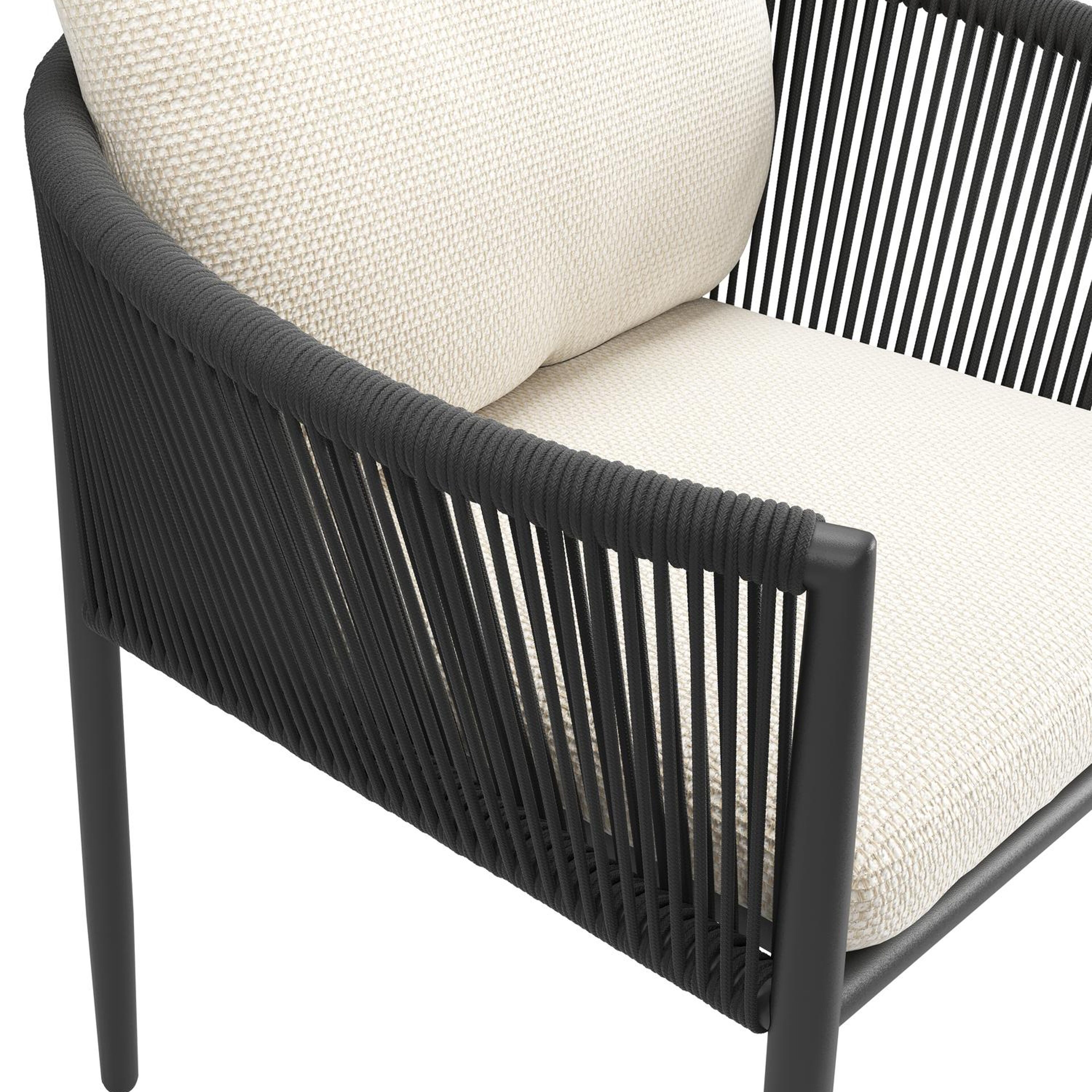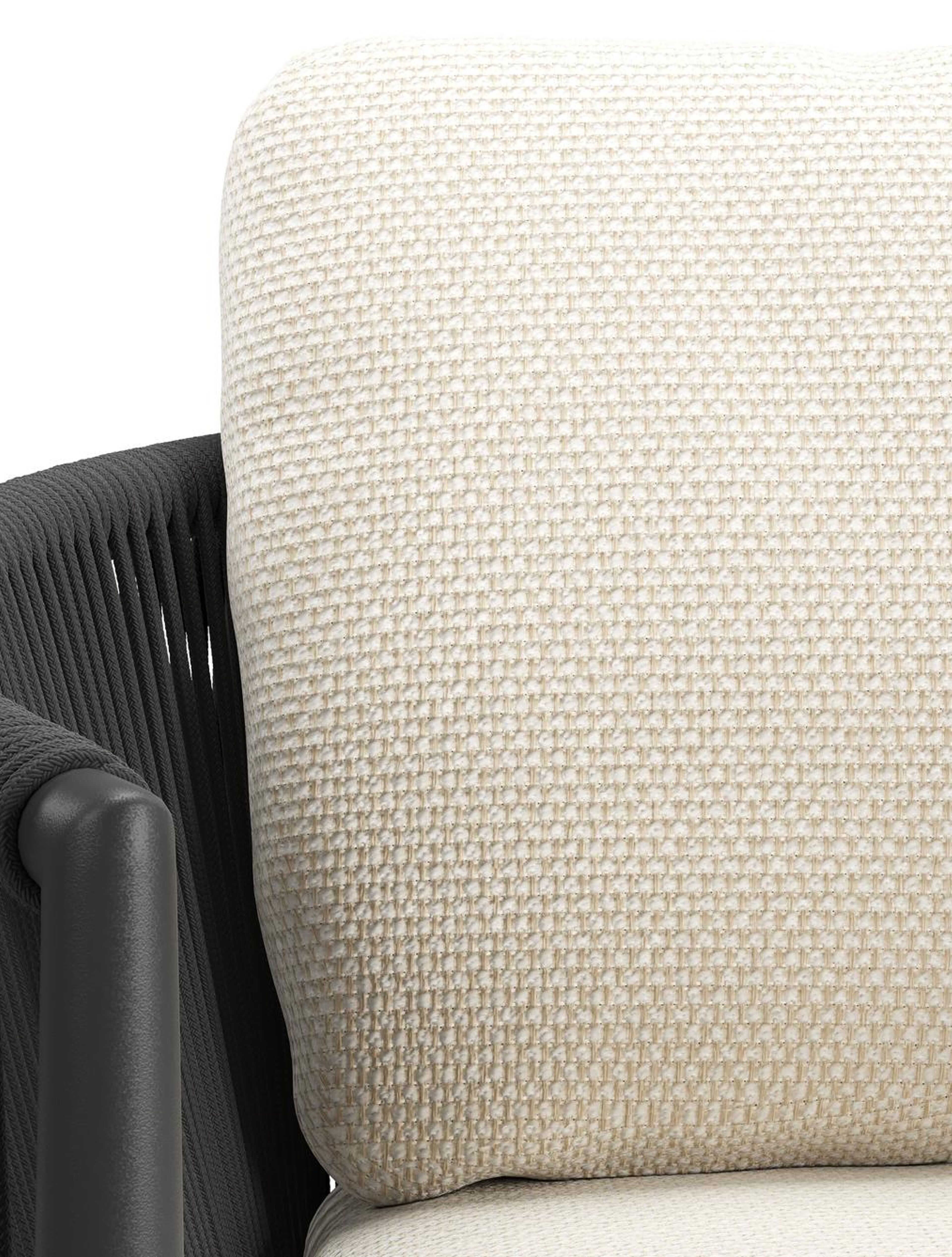 Organo tuinstoel in beige aluminium en beige verticaal geweven ronde rope met stoelkussen in All Weather Cosytica Althea Off White | Exterioo tuinmeubelen