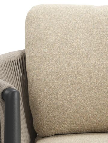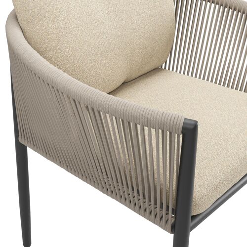 Organo tuinstoel in zwart aluminium en zwart verticaal geweven luxe vlakke rope met stoelkussen in All Weather Solica Soul Papyrus | Exterioo
