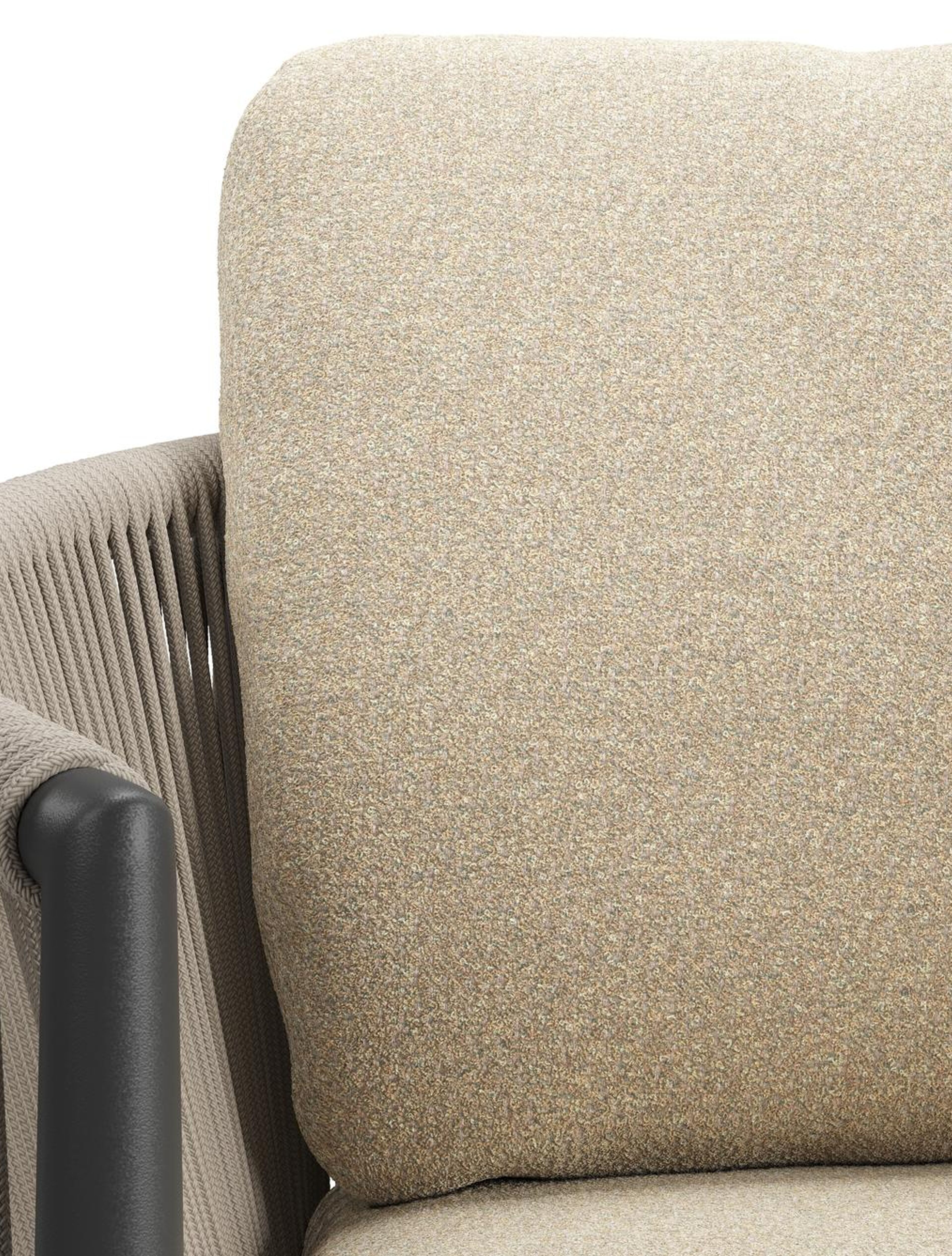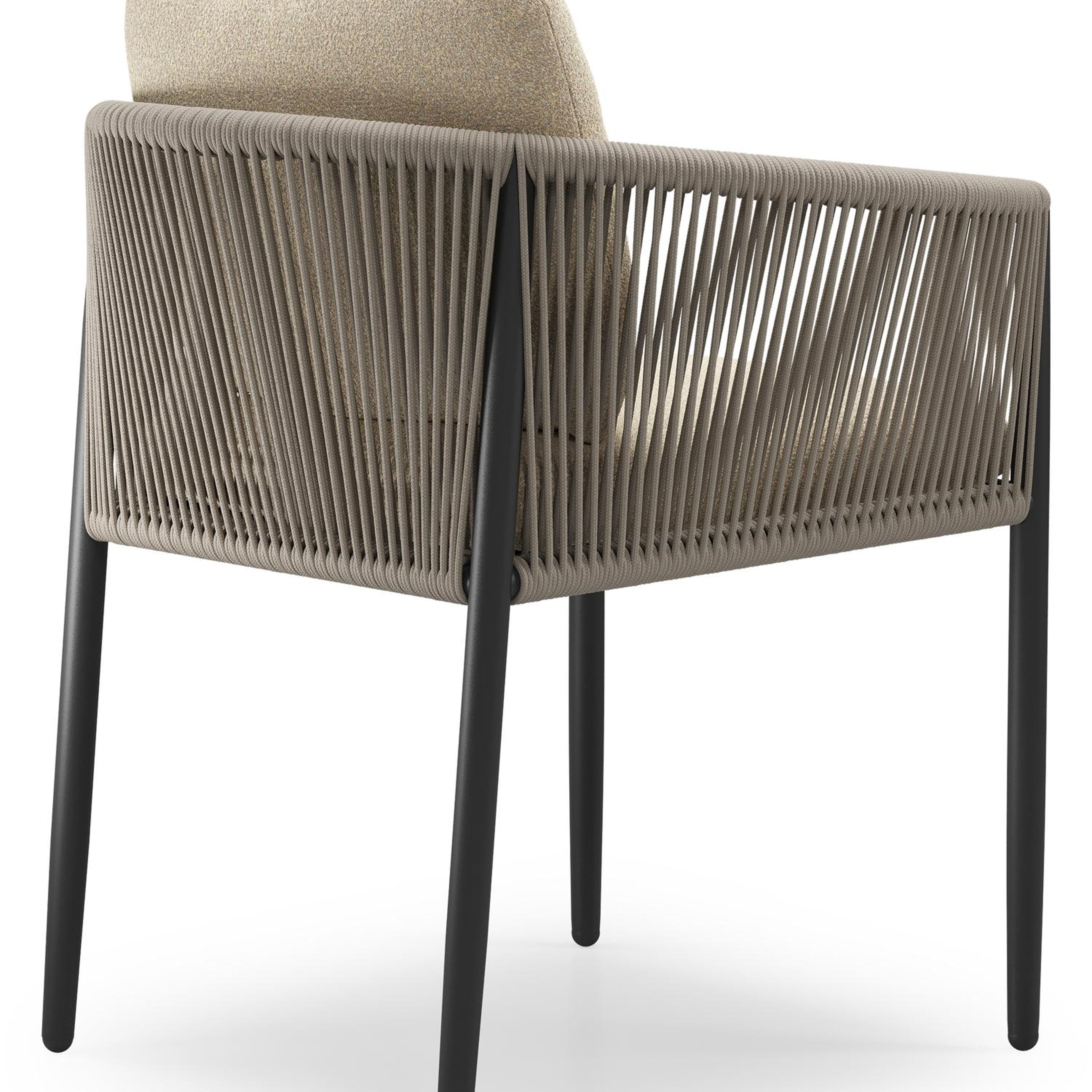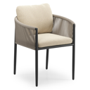 Organo tuinstoel in zwart aluminium en zwart verticaal geweven ronde rope met stoelkussen in All Weather Solica Soul Papyrus | Exterioo tuinmeubelen