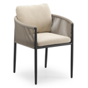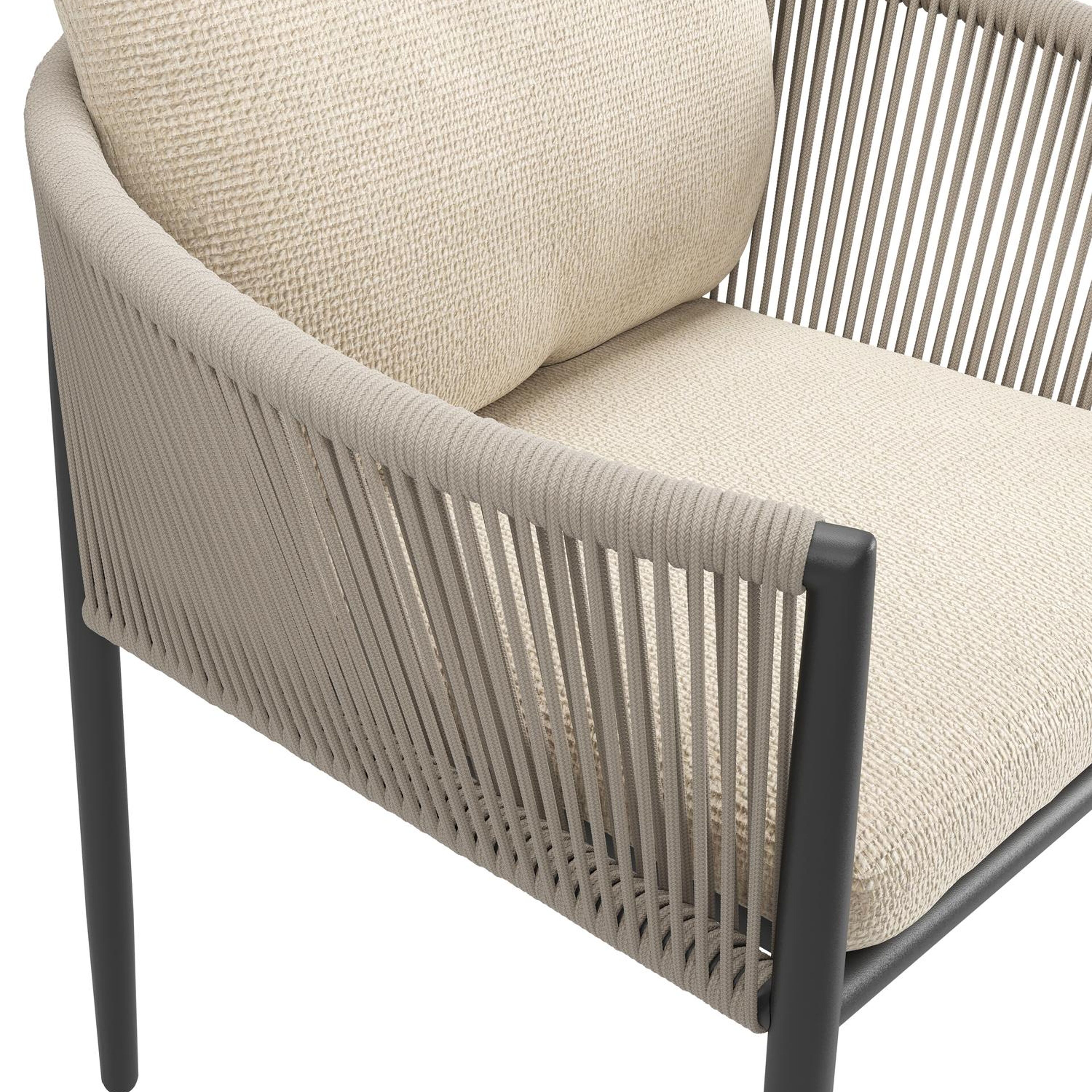Organo tuinstoel in zwart aluminium en zwart verticaal geweven ronde rope met stoelkussen in All Weather Cosytica Althea Chalk | Exterioo tuinmeubelen