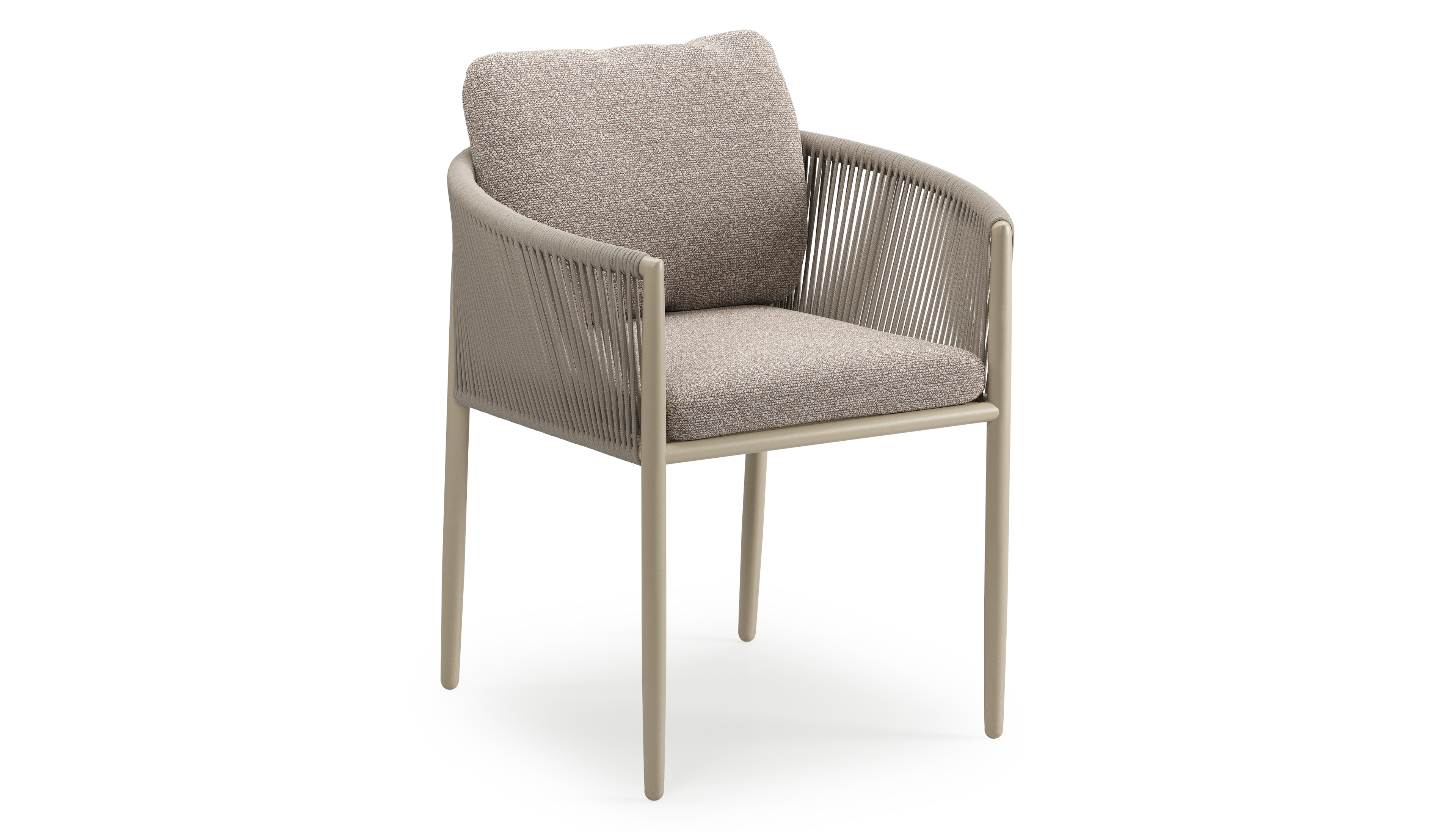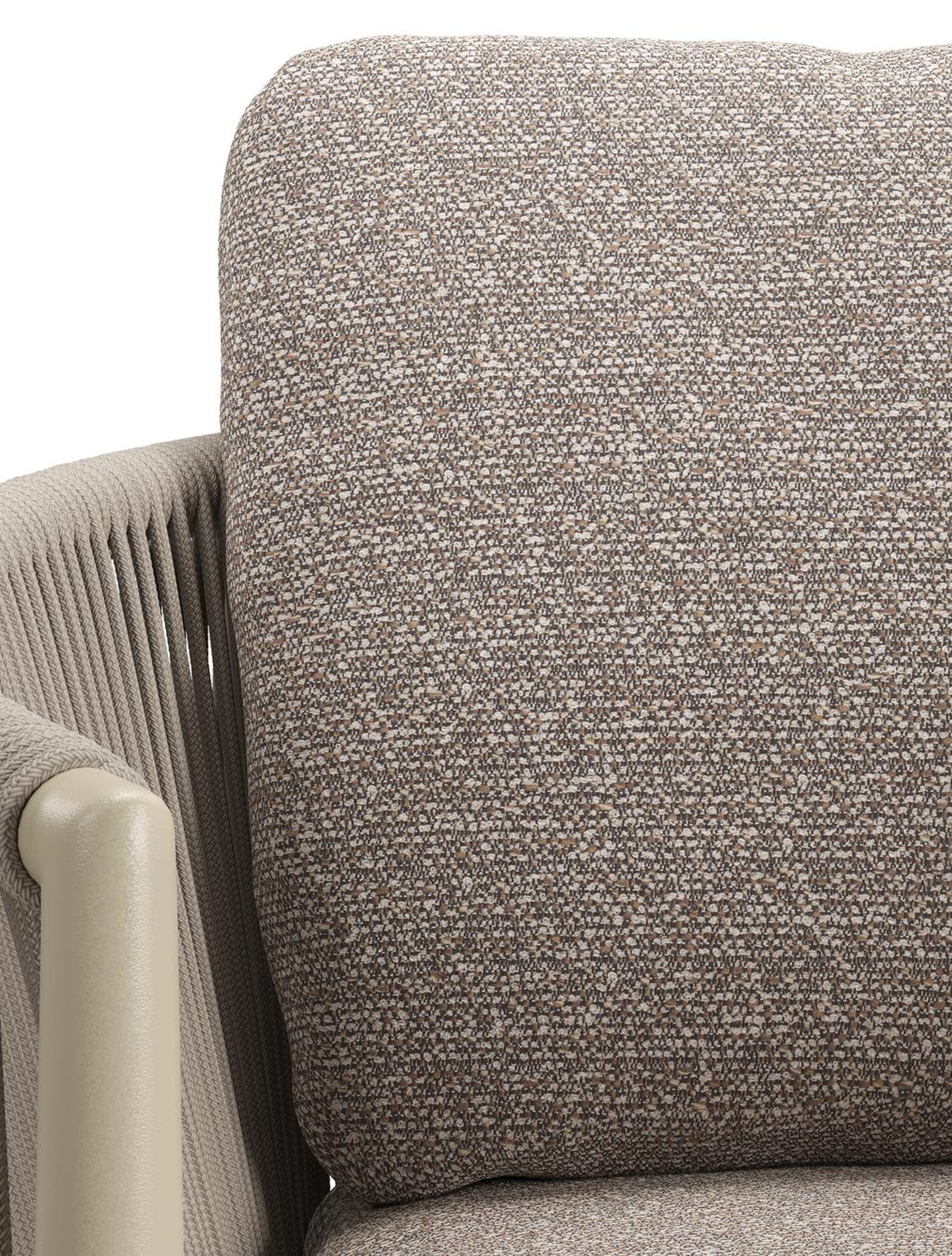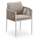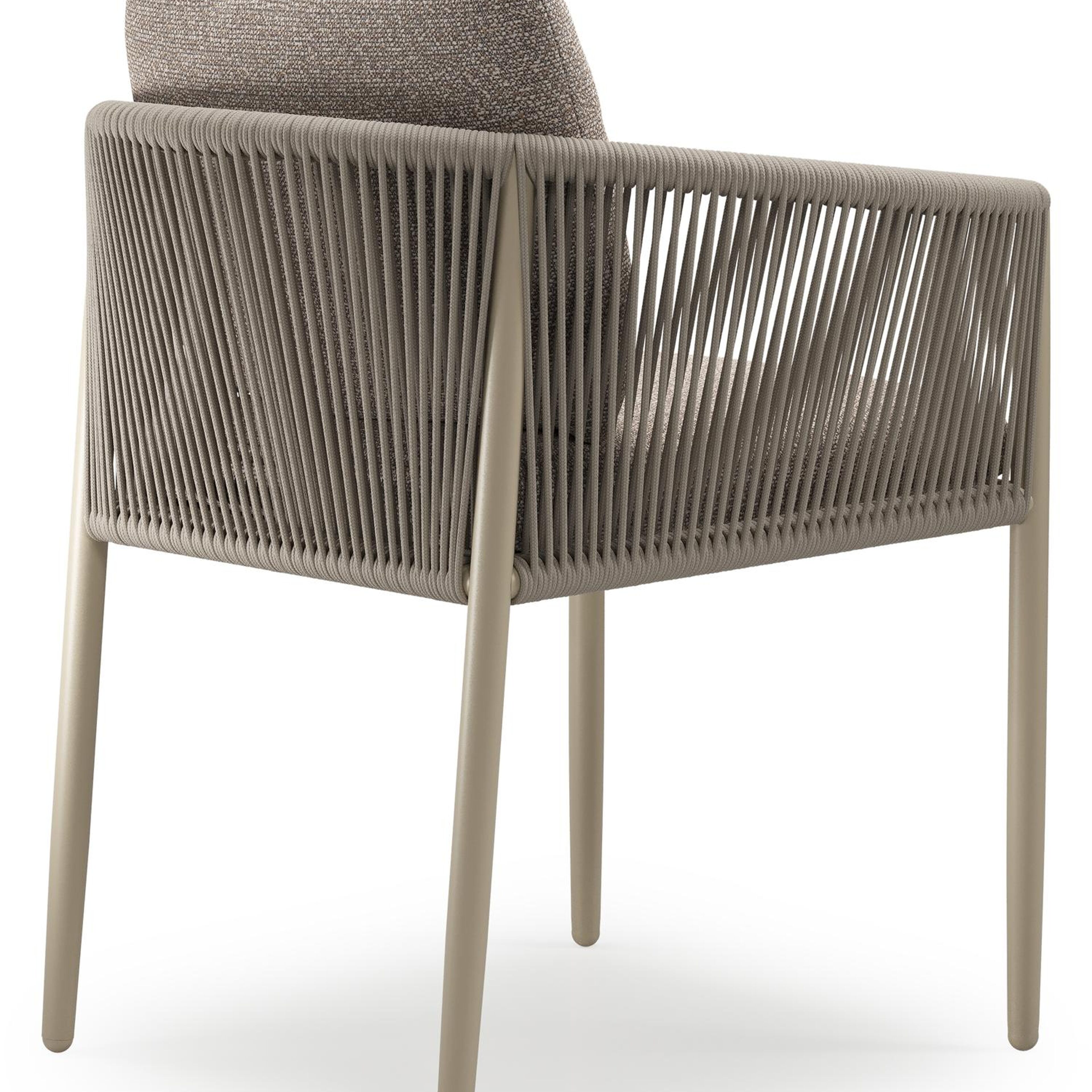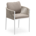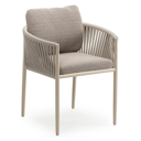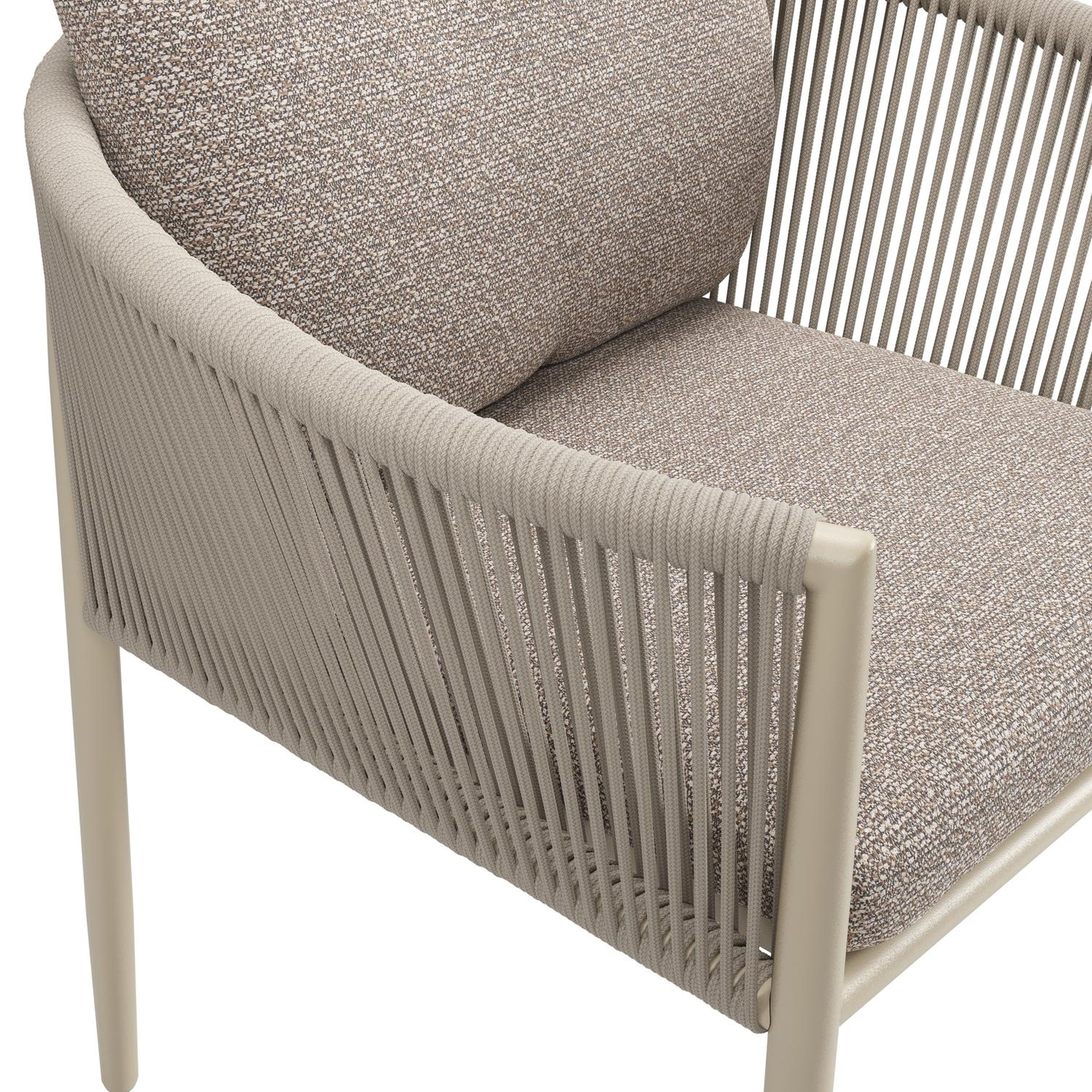 Organo tuinstoel in zwart aluminium en beige verticaal geweven ronde rope met stoelkussen in All Weather Sunbrella® Luxe Wander Manioc | Exterioo tuinmeubelen