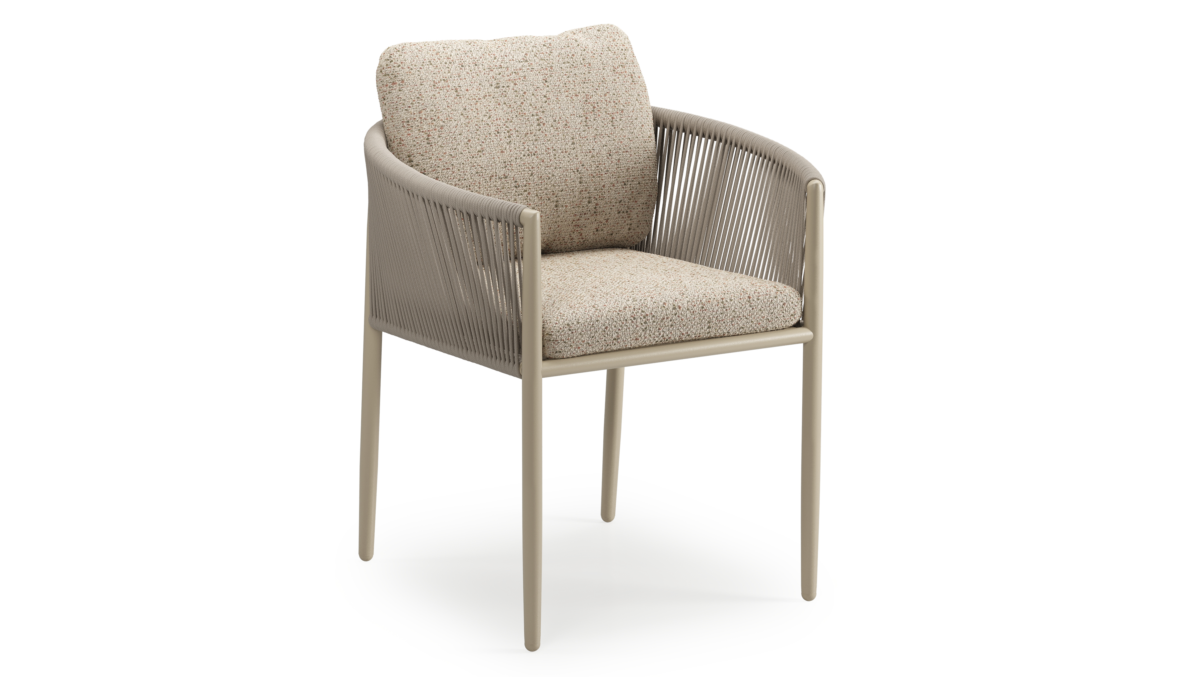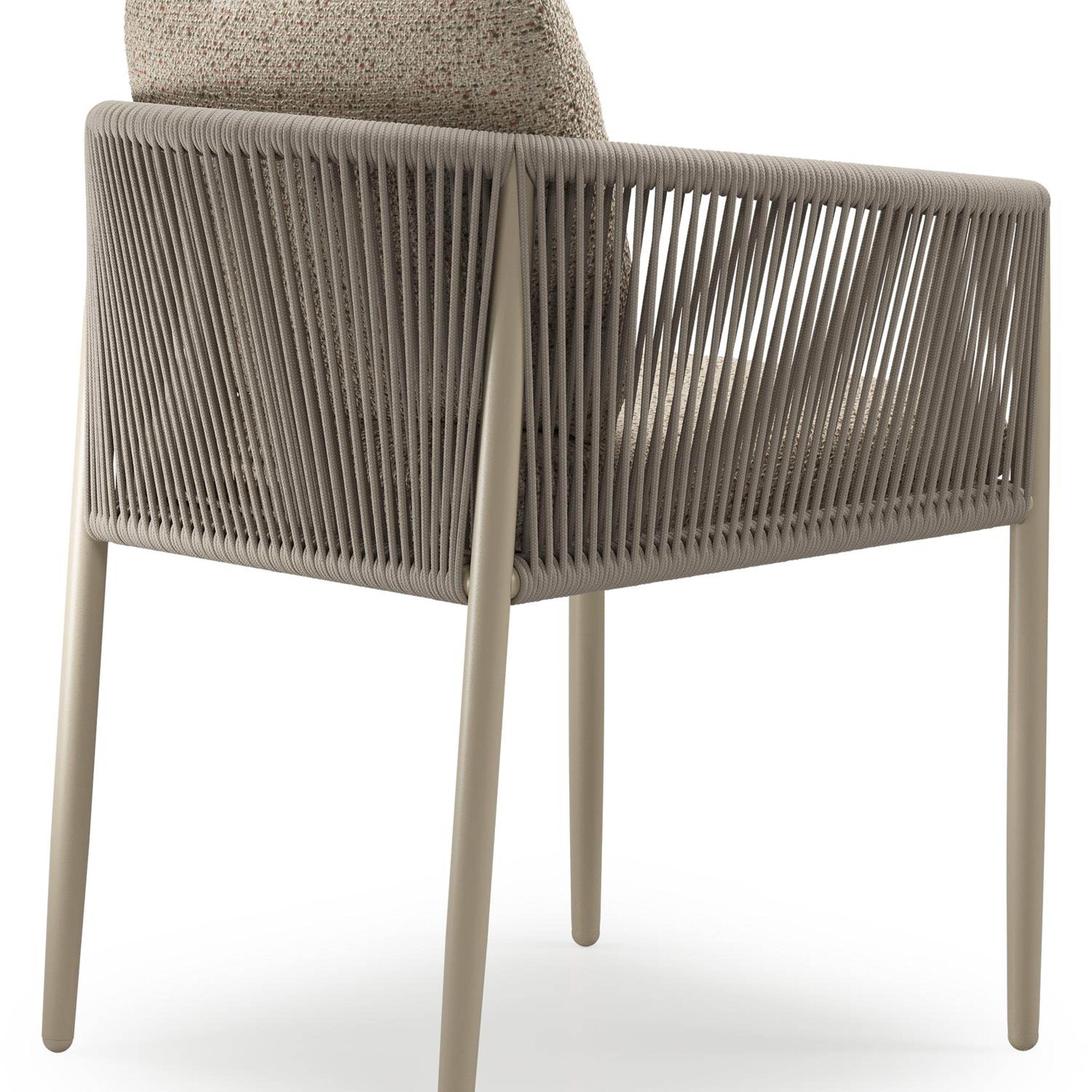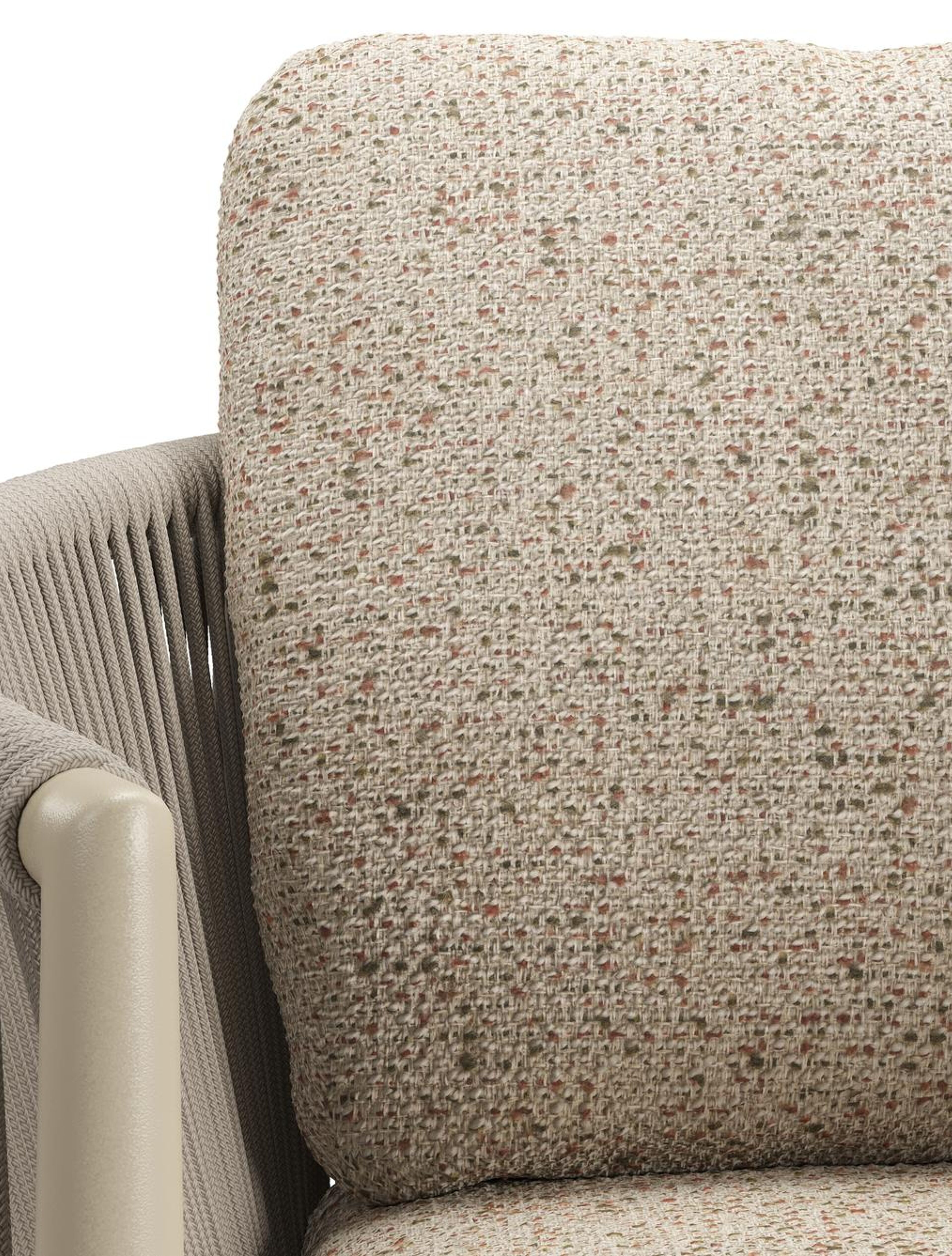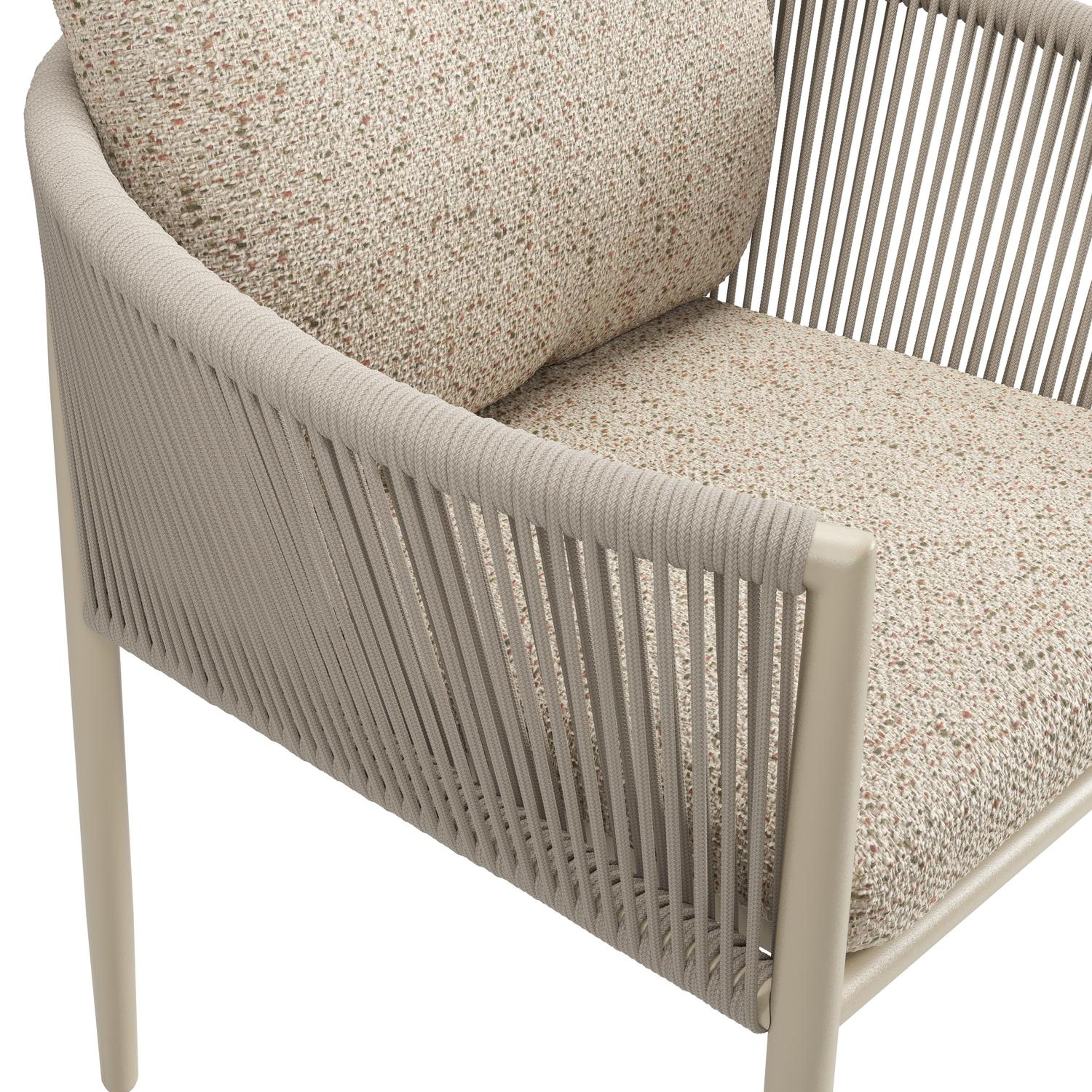 Organo tuinstoel in zwart aluminium en beige verticaal geweven ronde rope met stoelkussen in All Weather Cosytica Bora Jungle | Exterioo tuinmeubelen