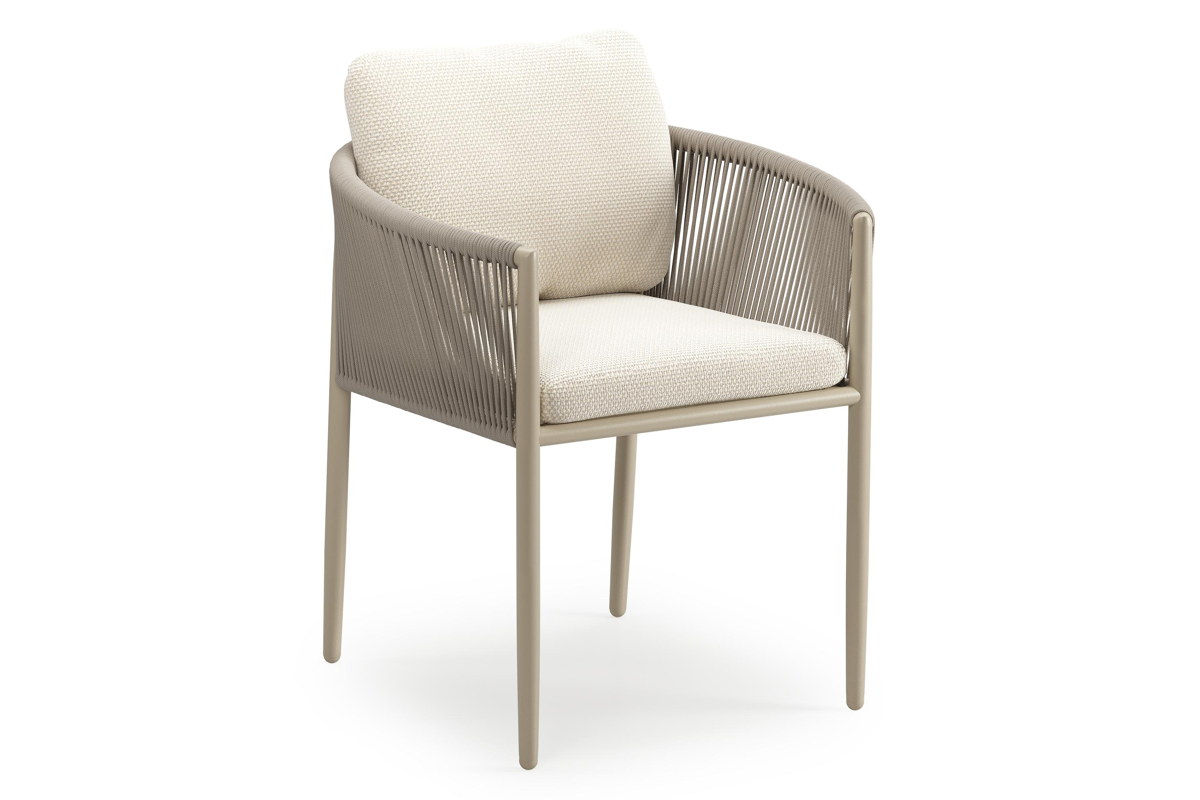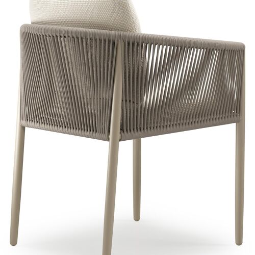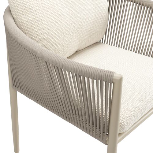 Organo tuinstoel in zwart aluminium en beige verticaal geweven luxe vlakke rope met stoelkussen in All Weather Cosytica Althea Off White | Exterioo