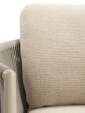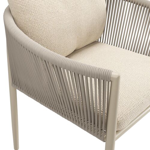 Organo tuinstoel in zwart aluminium en beige verticaal geweven luxe vlakke rope met stoelkussen in All Weather Cosytica Althea Chalk | Exterioo