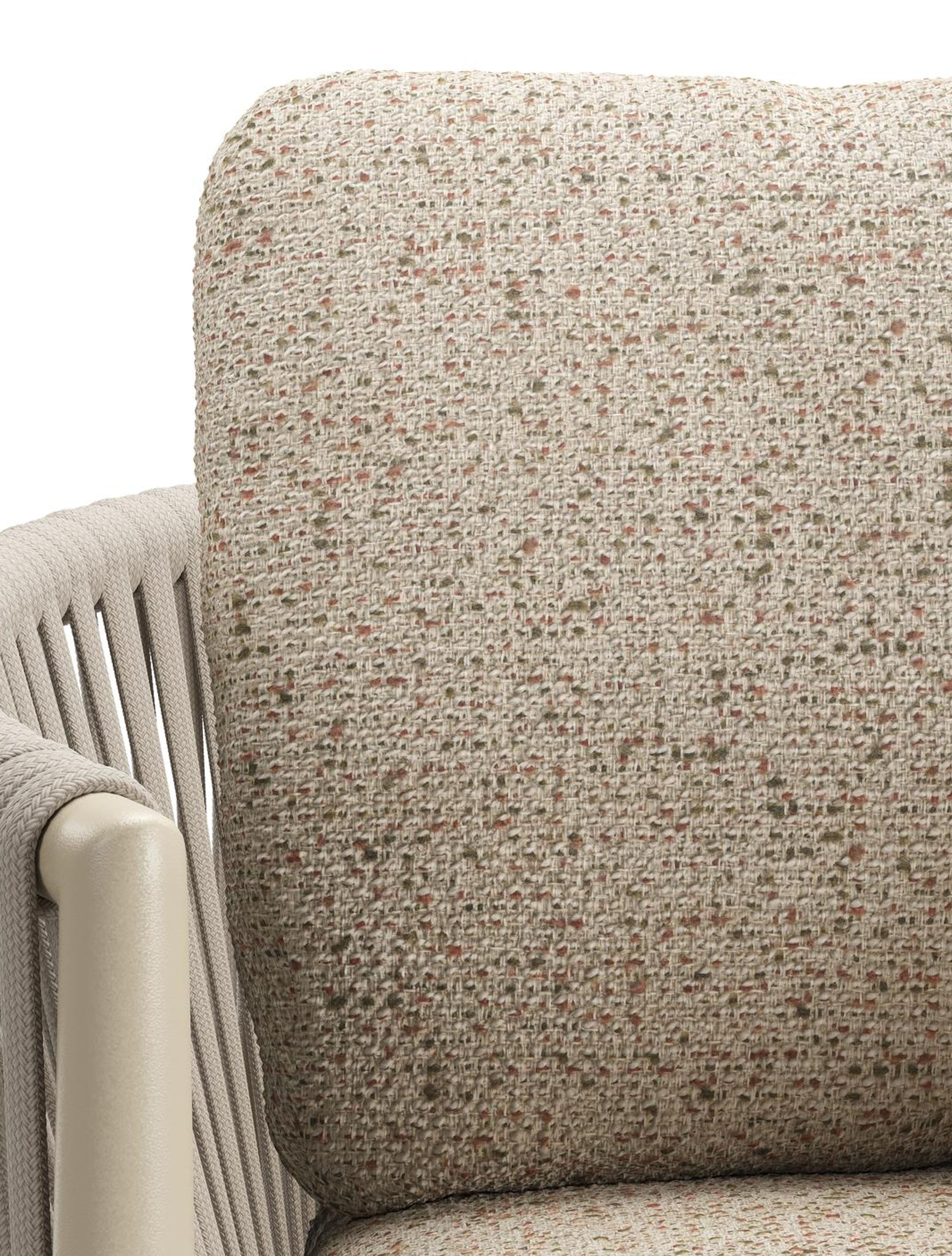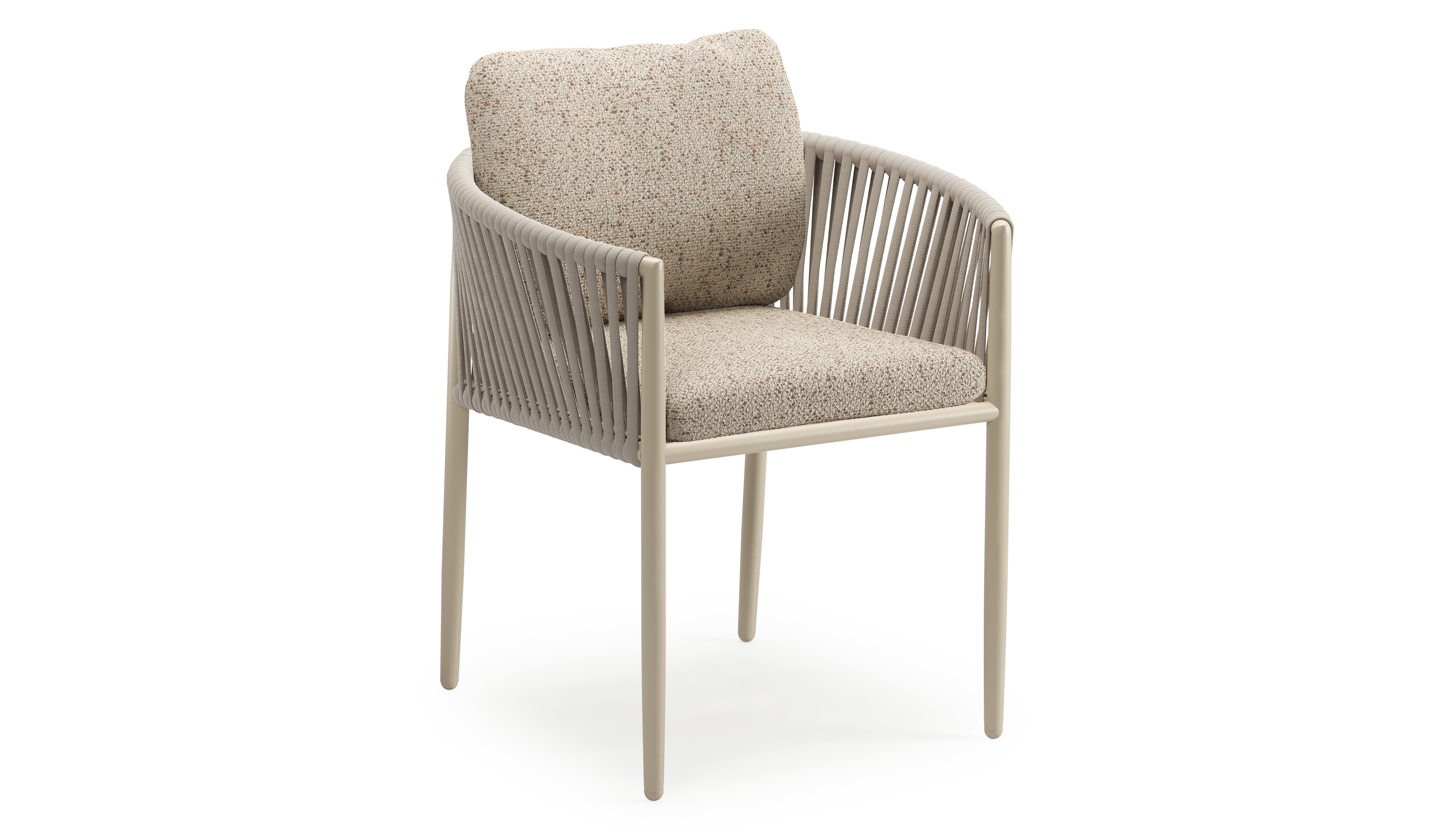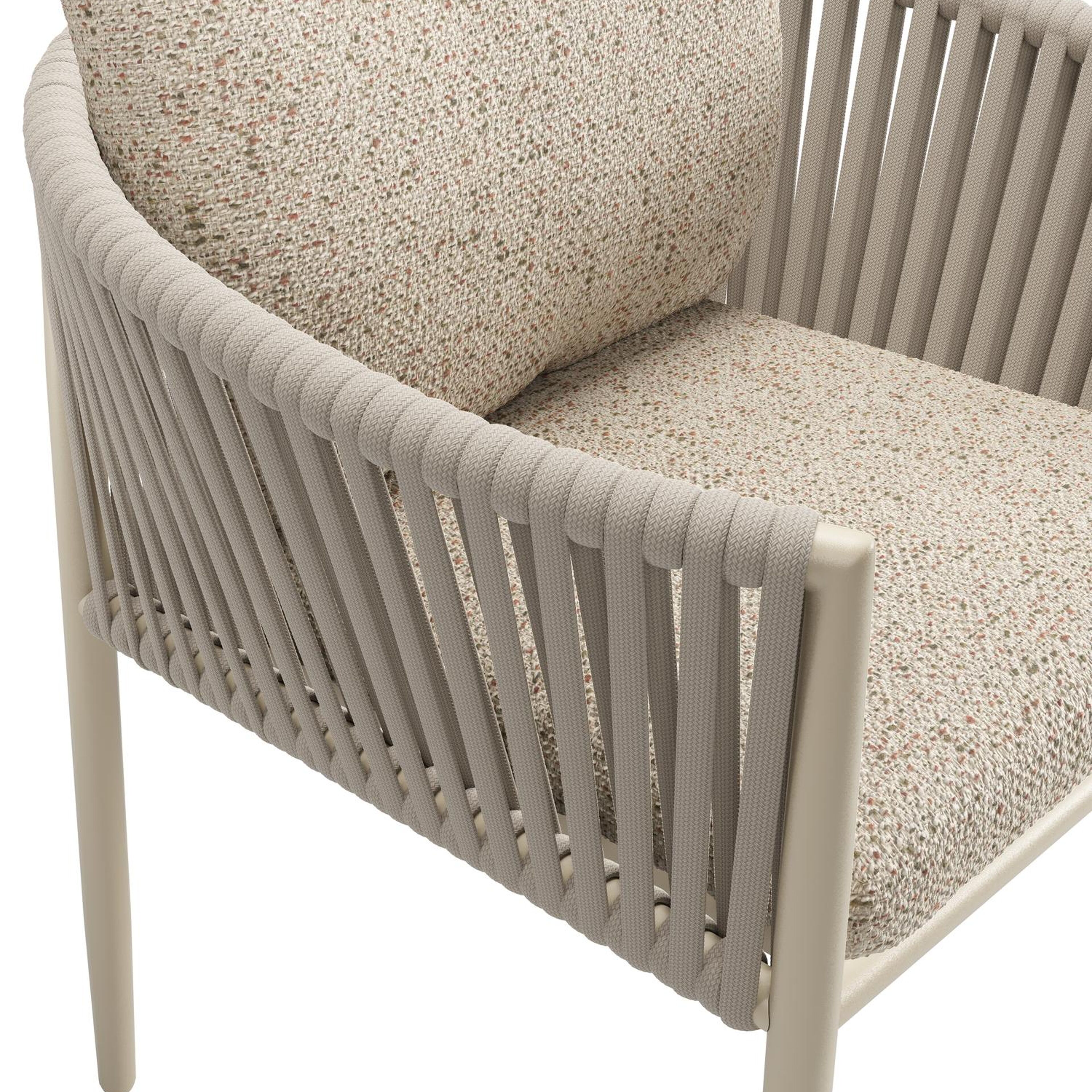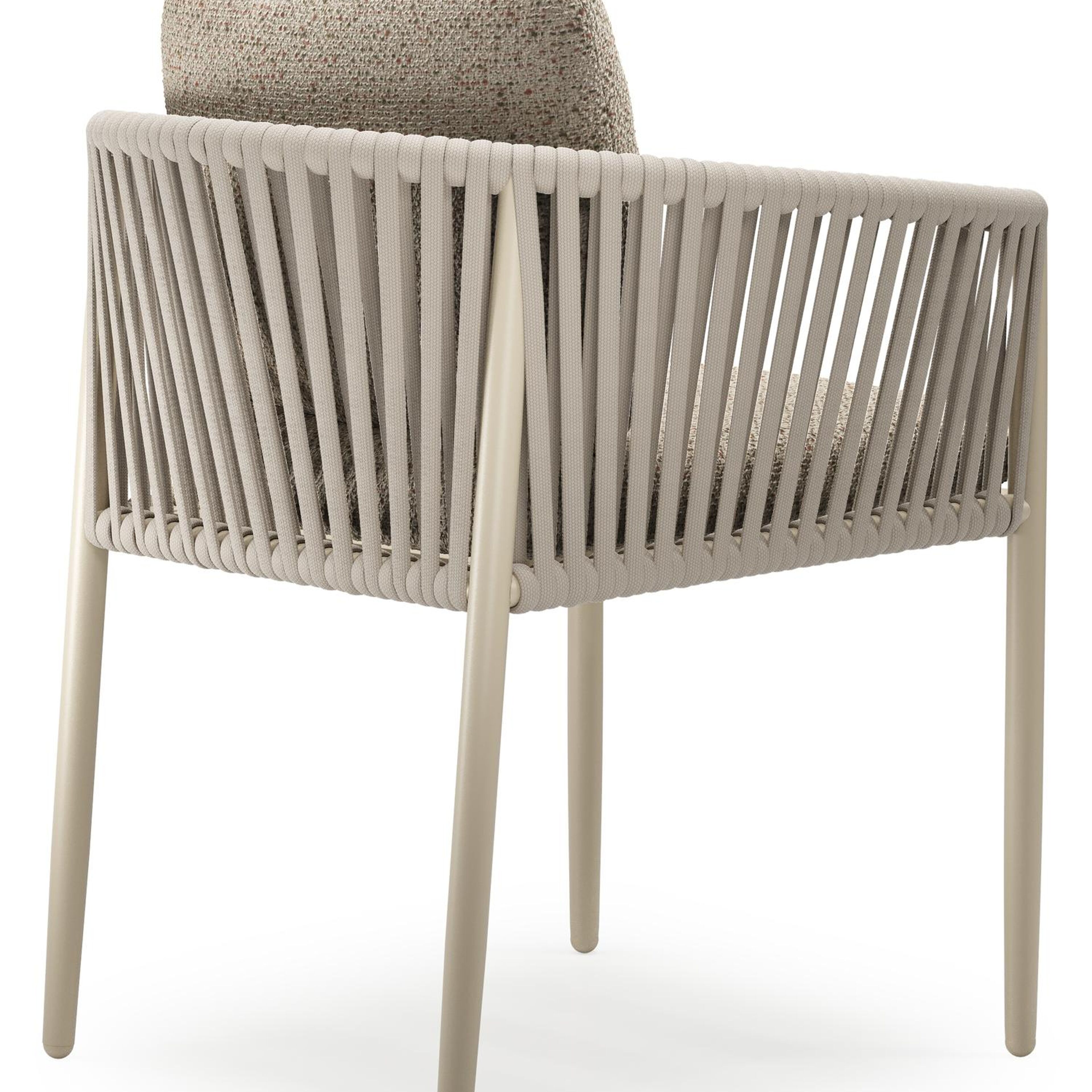 Organo tuinstoel in beige aluminium en beige verticaal geweven luxe vlakke rope met zitkussen in All Weather Cosytica Bora Jungle | Exterioo tuinmeubelen