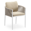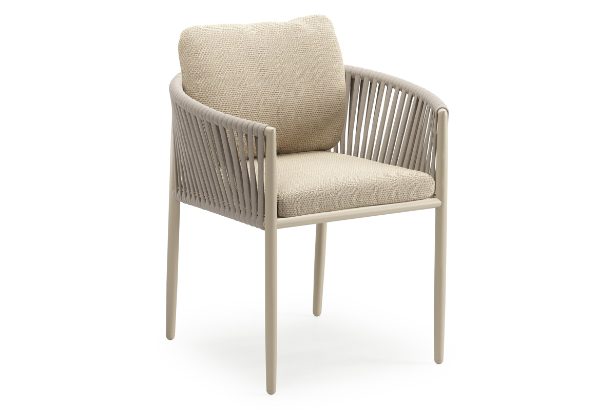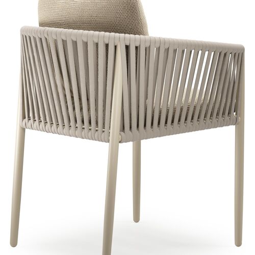 Organo tuinstoel in beige aluminium en beige verticaal geweven luxe vlakke rope met zitkussen in All Weather Cosytica Althea Camel | Exterioo