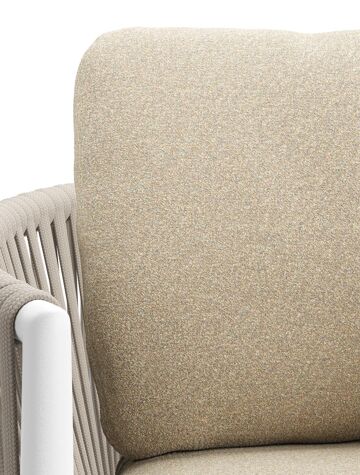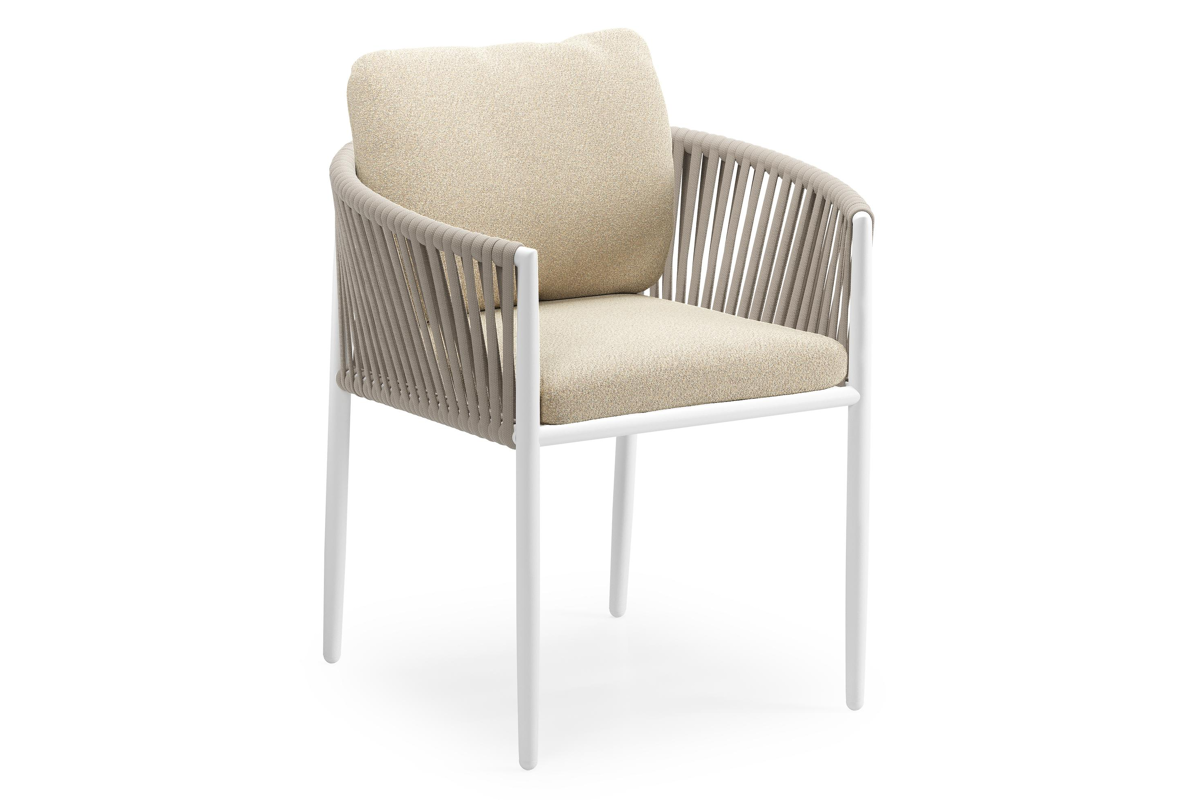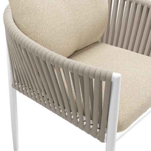 Organo tuinstoel in wit aluminium en beige verticaal geweven luxe vlakke rope met zitkussen in All Weather Solica Soul Papyrus | Exterioo