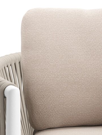 Organo tuinstoel in wit aluminium en beige verticaal geweven luxe vlakke rope met zitkussen in All Weather Sunbrella® Luxe Wander Pilat | Exterioo