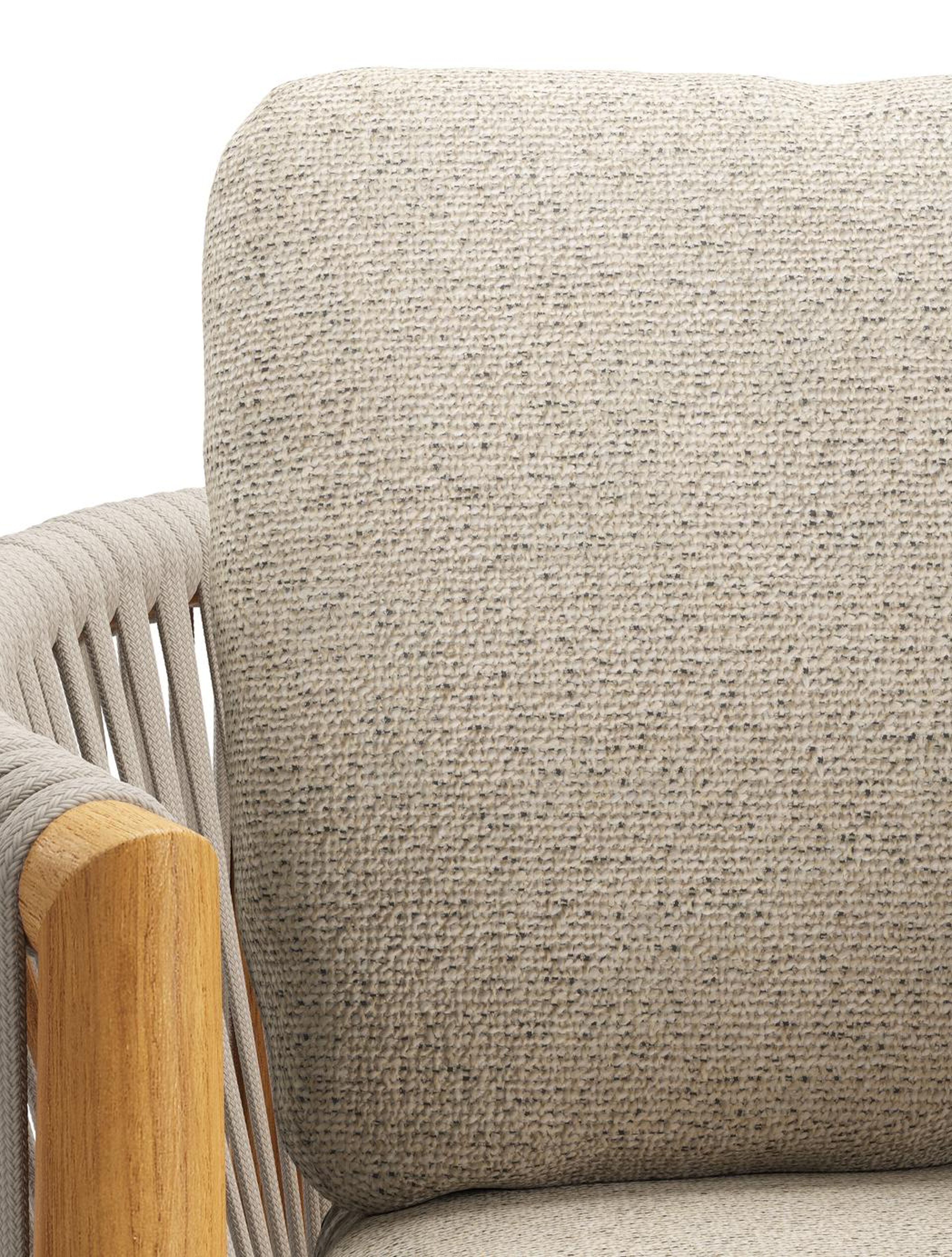 Organo tuinstoel in beige teak en beige verticaal geweven luxe vlakke rope met kussen in All Weather Cosytica Marbella Beige | Exterioo tuinmeubelen