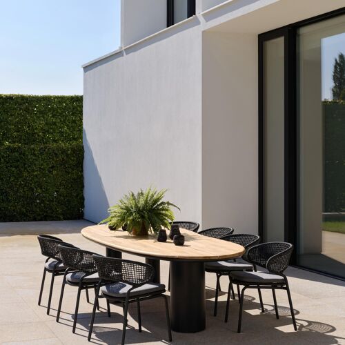 Organo tuintafel organisch in zwart aluminium en teak - L 320 x B 120 x H 74 cm | Exterioo
