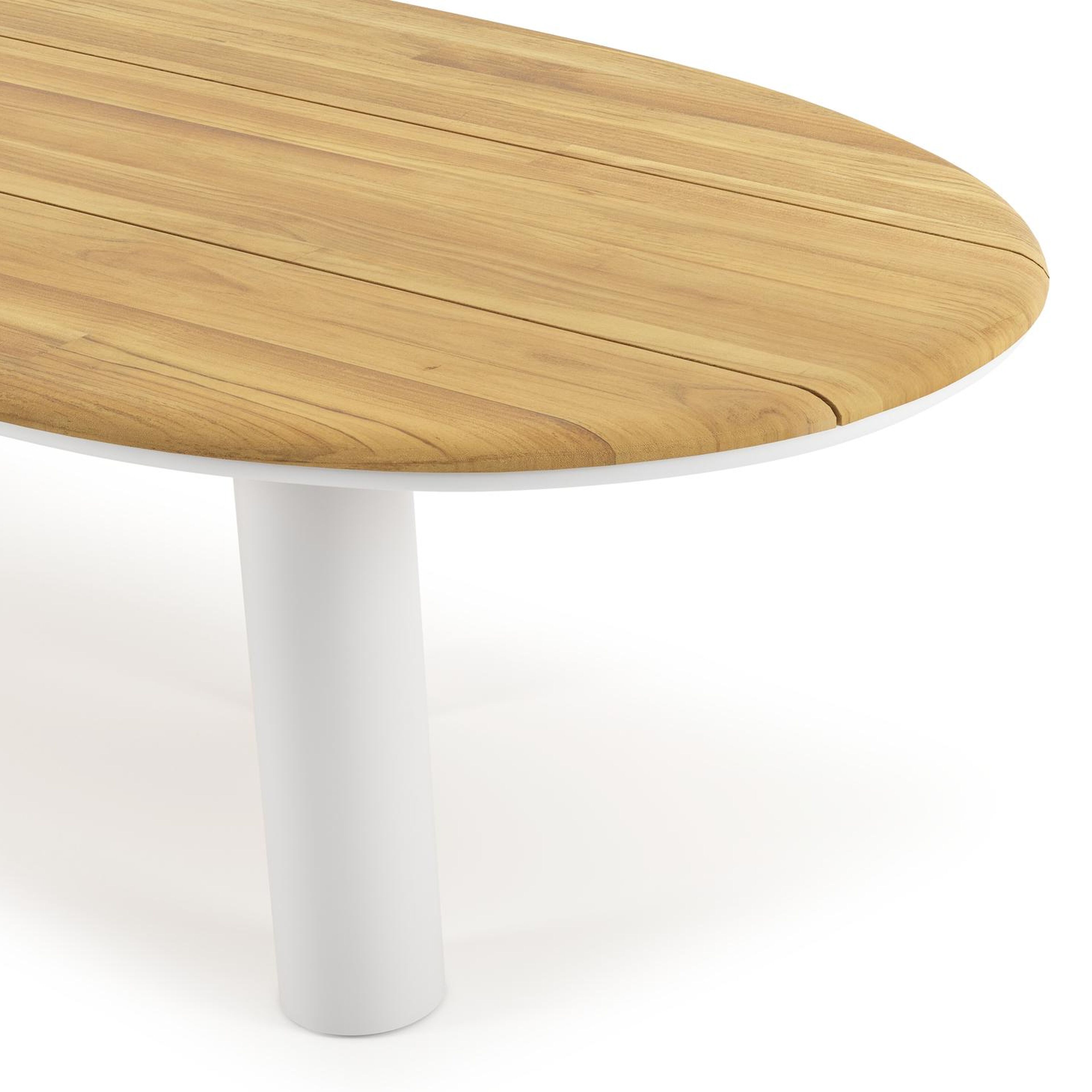 Een tafelblad uit teak staat gelijk aan bijzondere kwaliteit en natuurlijk design. Teak is een kwalitatieve houtsoort gekenmerkt door zijn hardheid. Aangezien hout leeft, kan de structuur of kleur licht anders zijn dan op het beeld weergegeven.