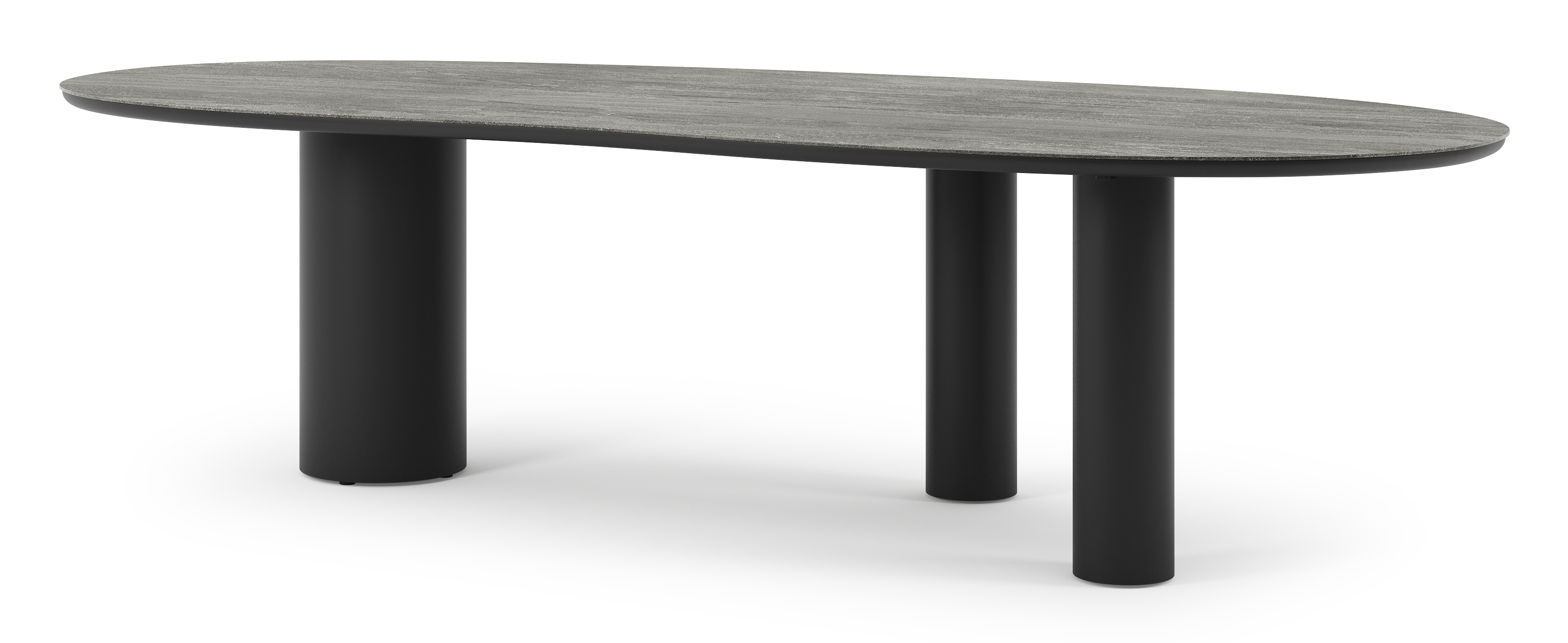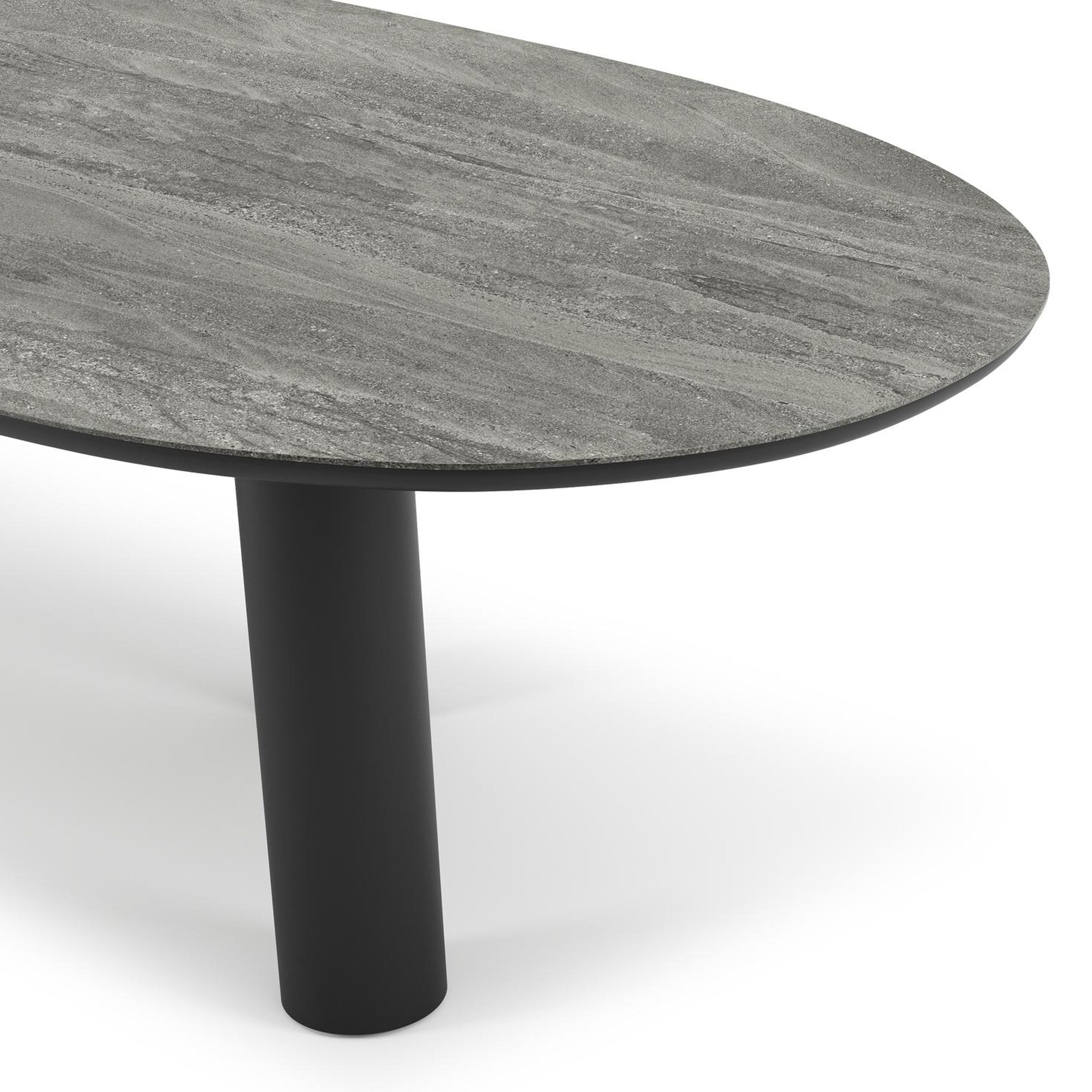 De Organo tuintafel onderscheidt zich door zijn uniek ontwerp, met een organisch gevormd tafelblad dat een eigentijdse uitstraling heeft. De tafel rust op een robuuste, dikke ronde poot en twee fijne ronde poten. Samen creëren ze een meesterlijke balans tussen luxe en moderniteit, waardoor deze tafel het pronkstuk van je buitenruimte wordt.