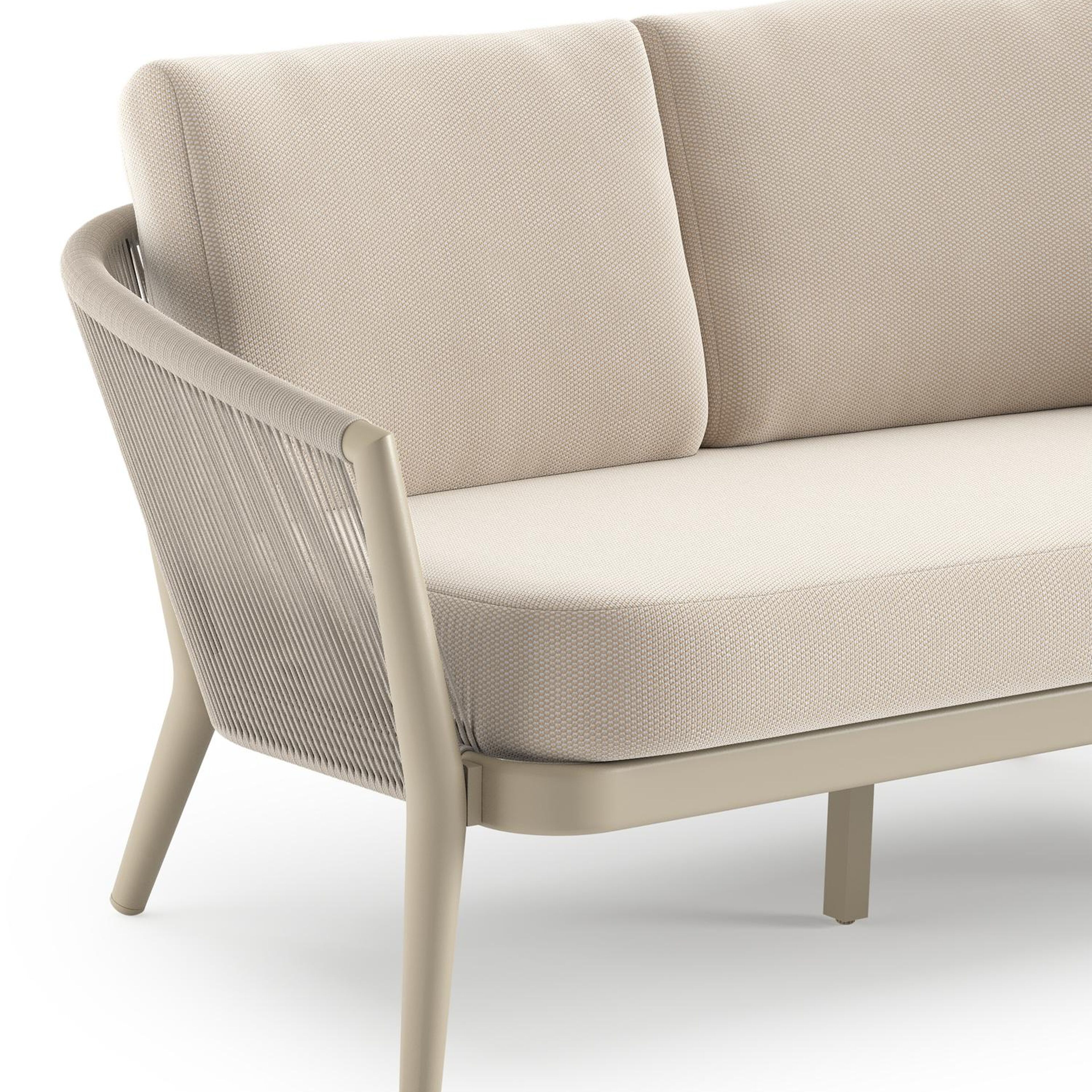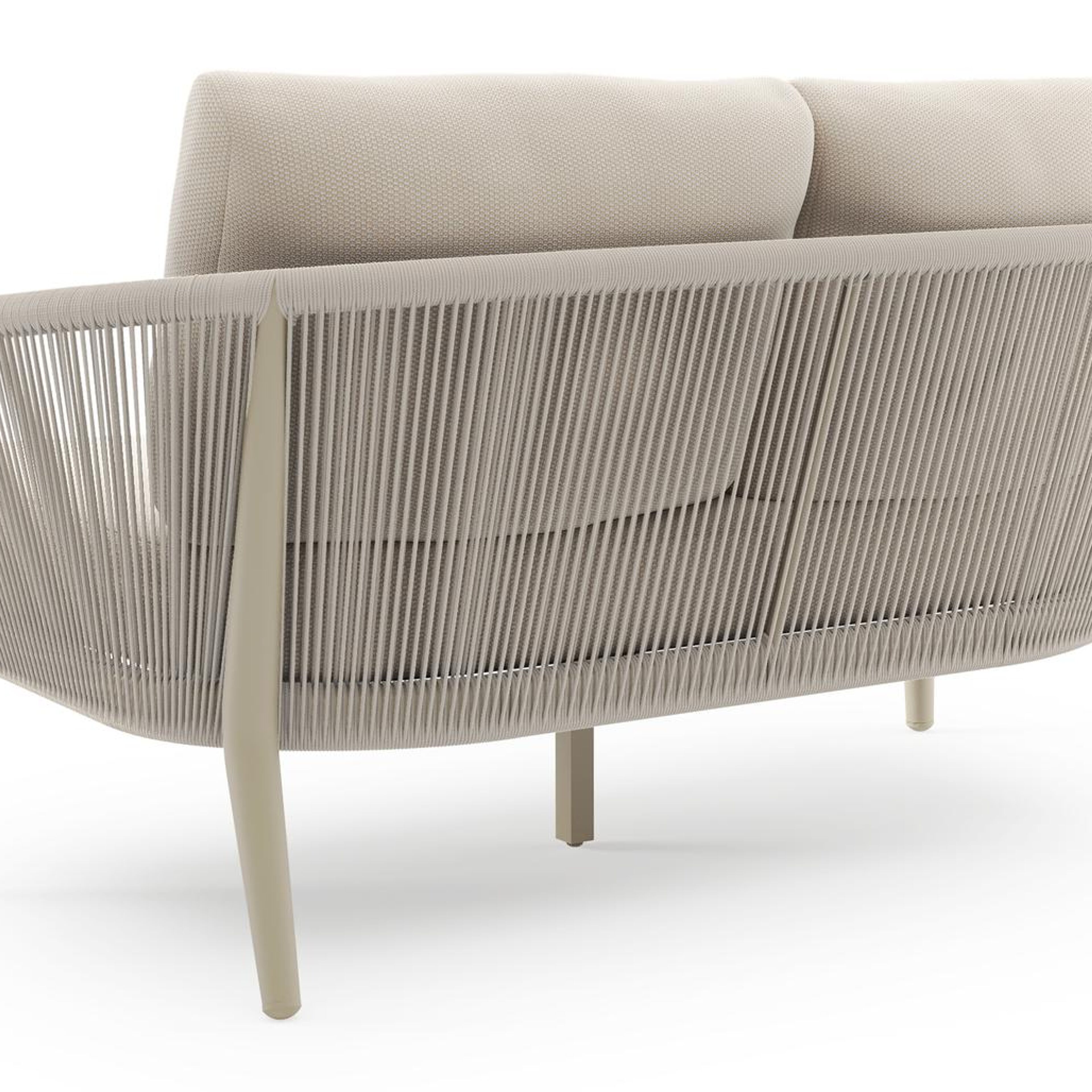 Orso loungebank in beige aluminium en beige verticaal geweven ronde rope met Lopi Antique all weather sunbrella® luxe kussen | Exterioo tuinmeubelen