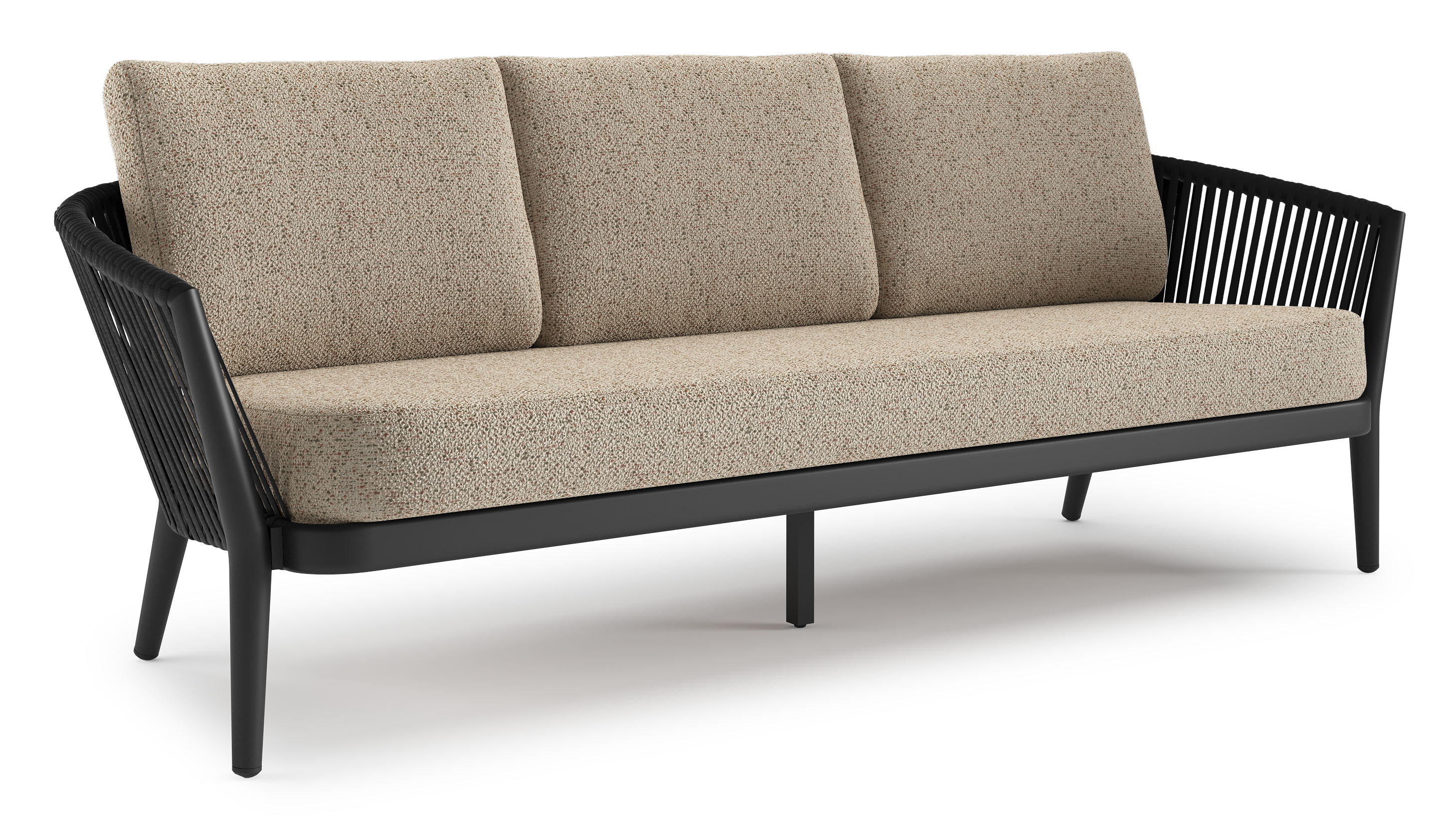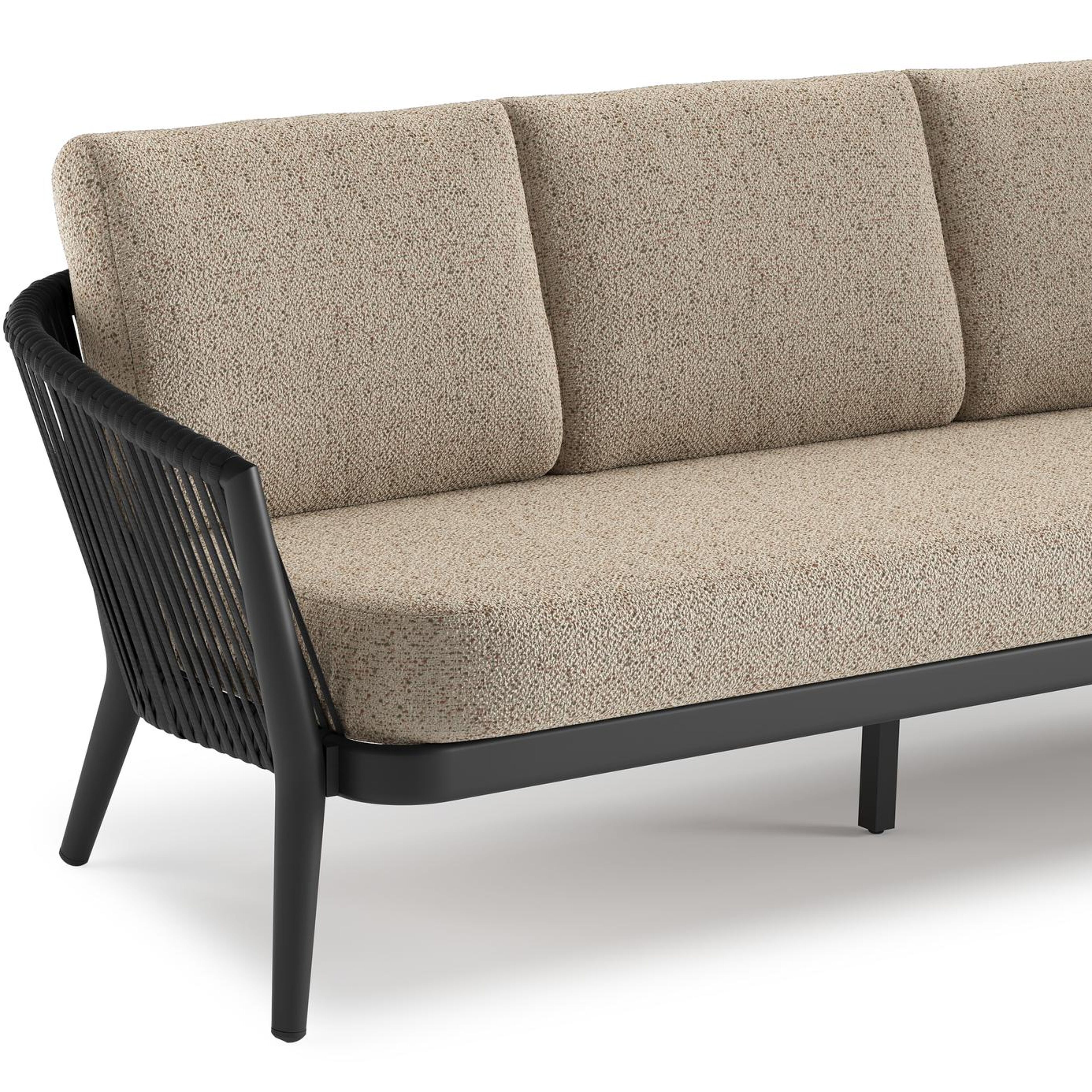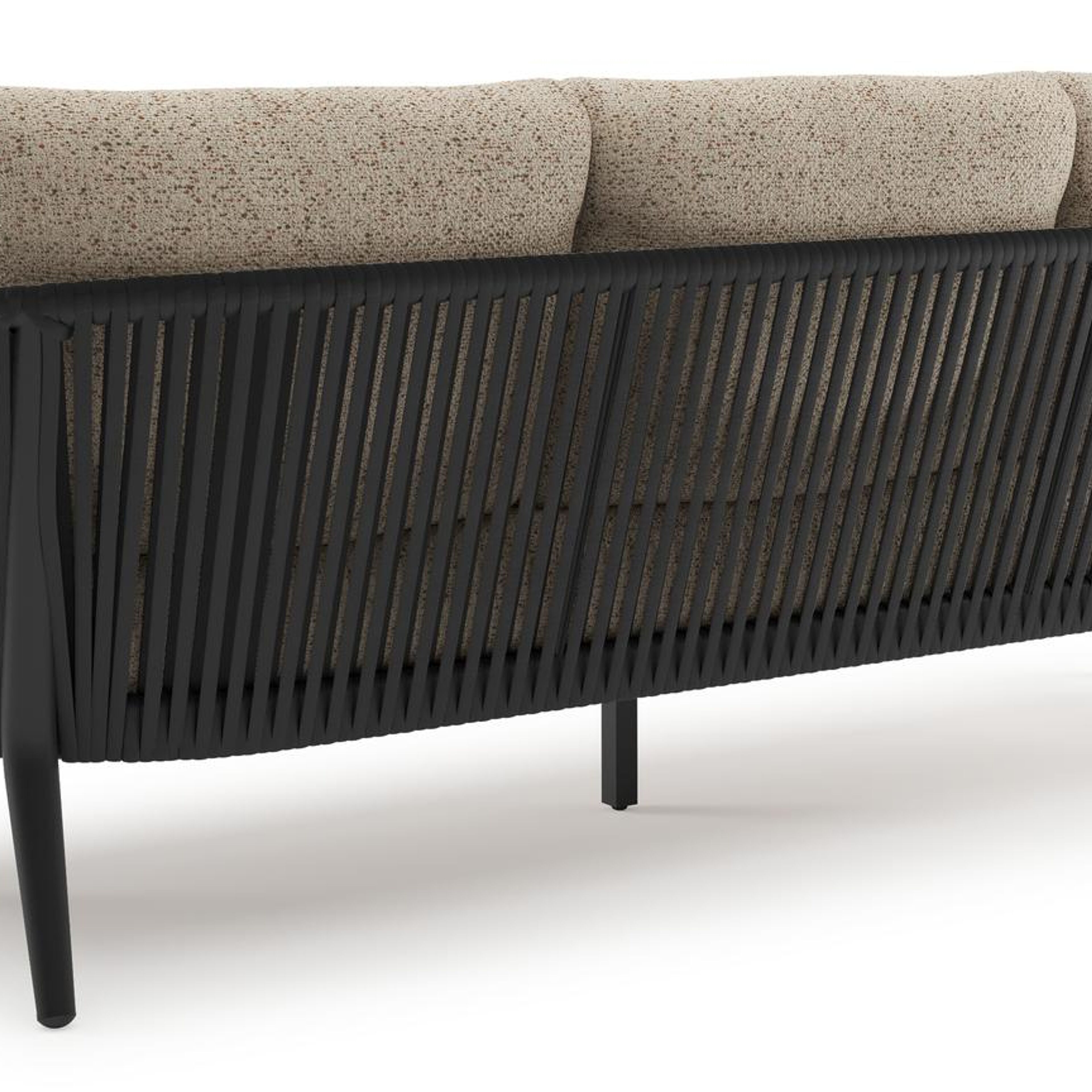 Orso loungebank in zwart aluminium en zwart verticaal geweven ronde rope met Bora Jungle all weather cosytica kussen | Exterioo tuinmeubelen