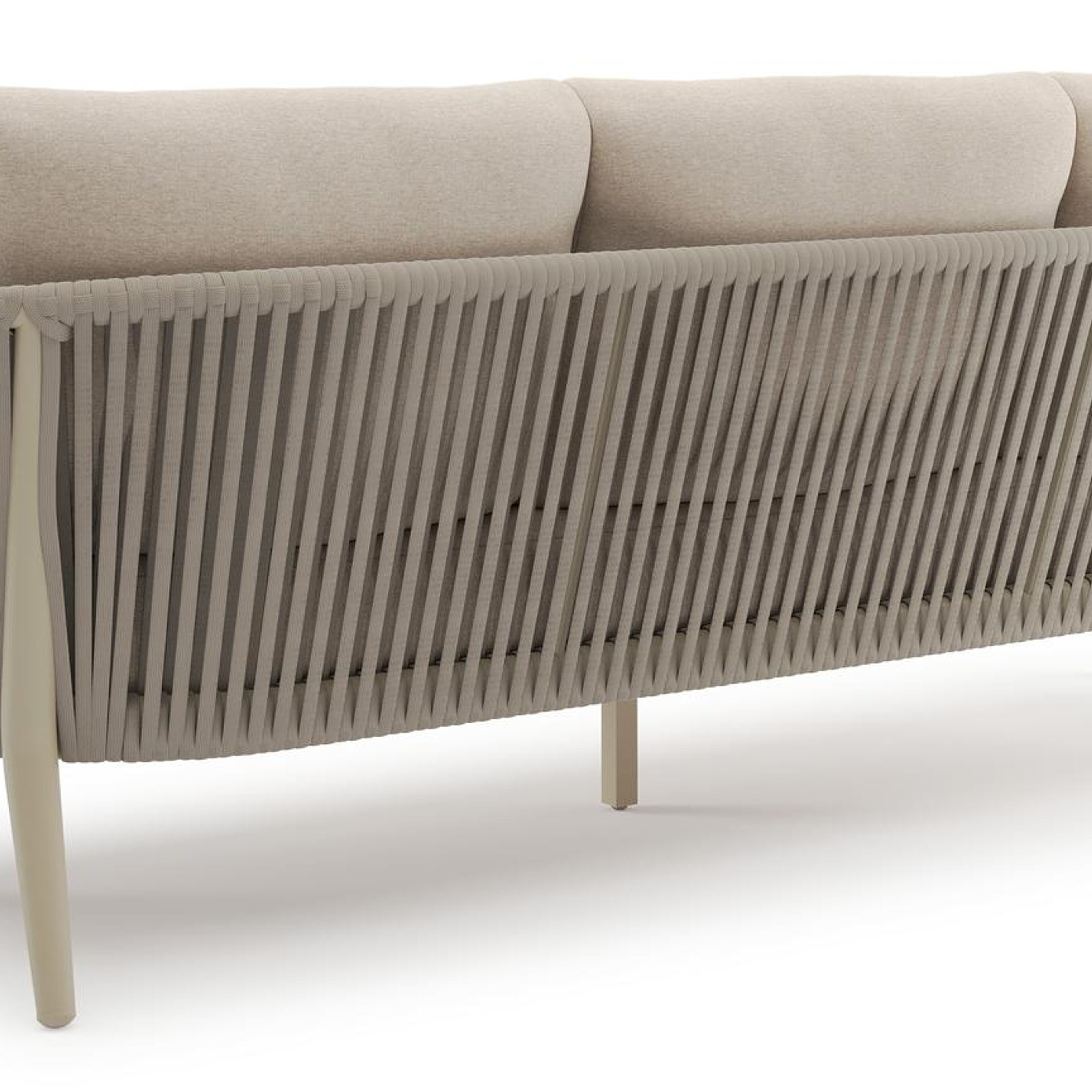 Orso loungebank in beige aluminium en beige verticaal geweven ronde rope met Heritage Ash all weather sunbrella® luxe kussen | Exterioo tuinmeubelen