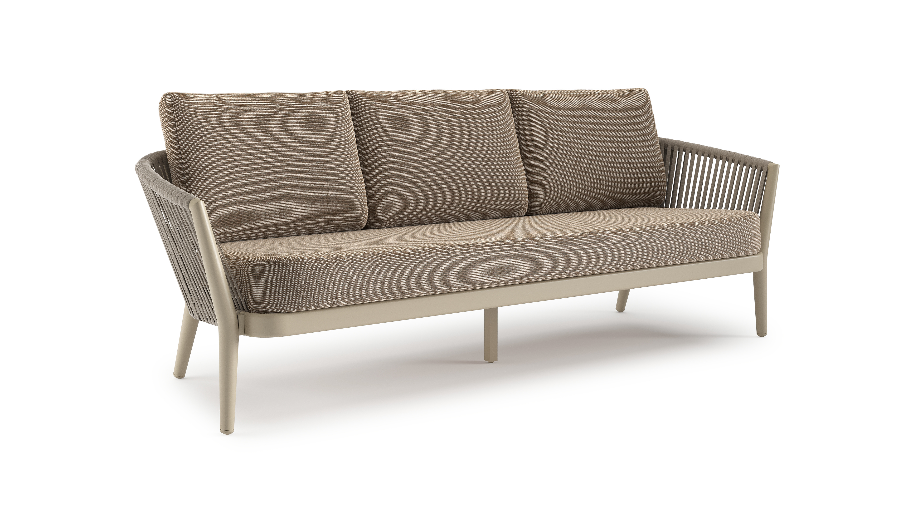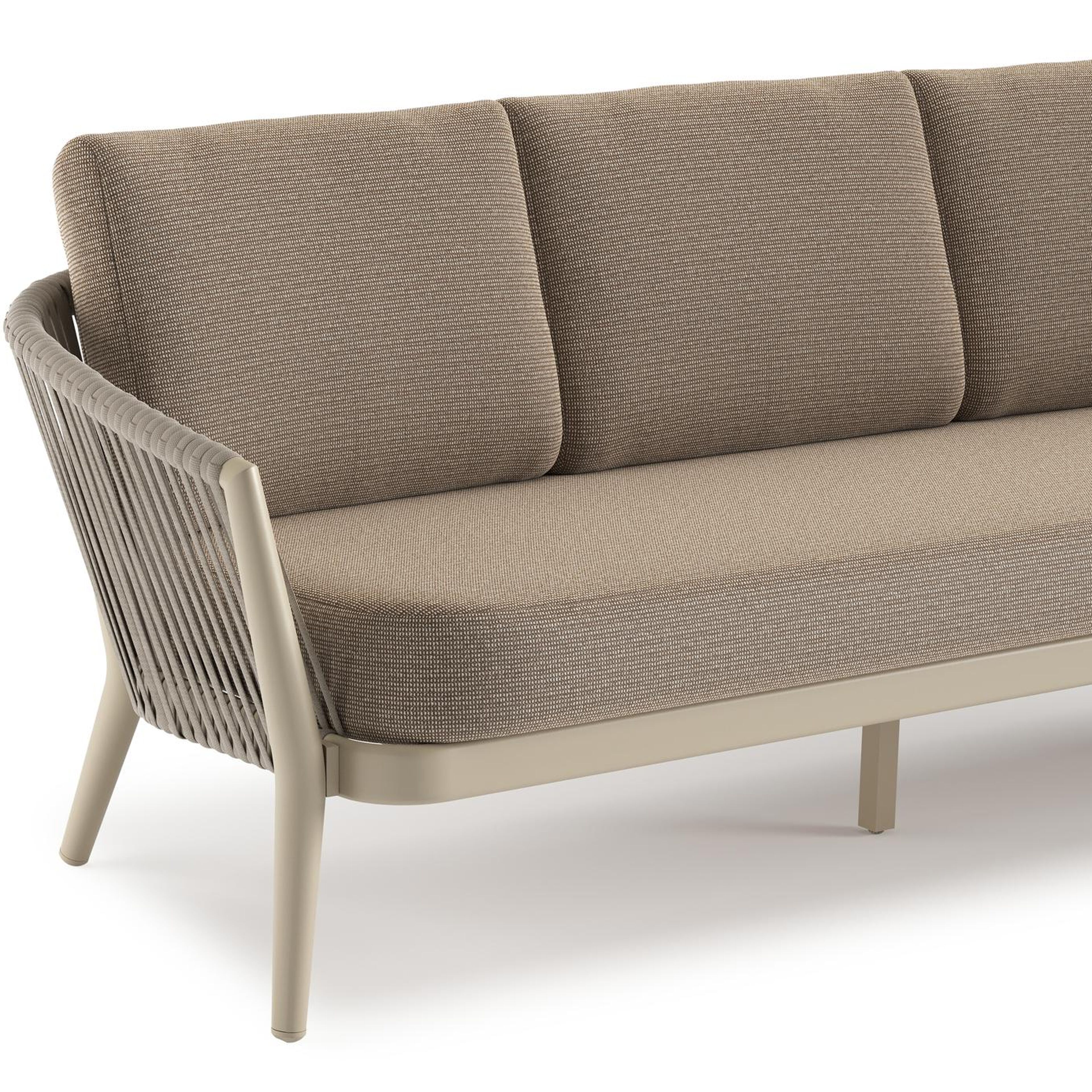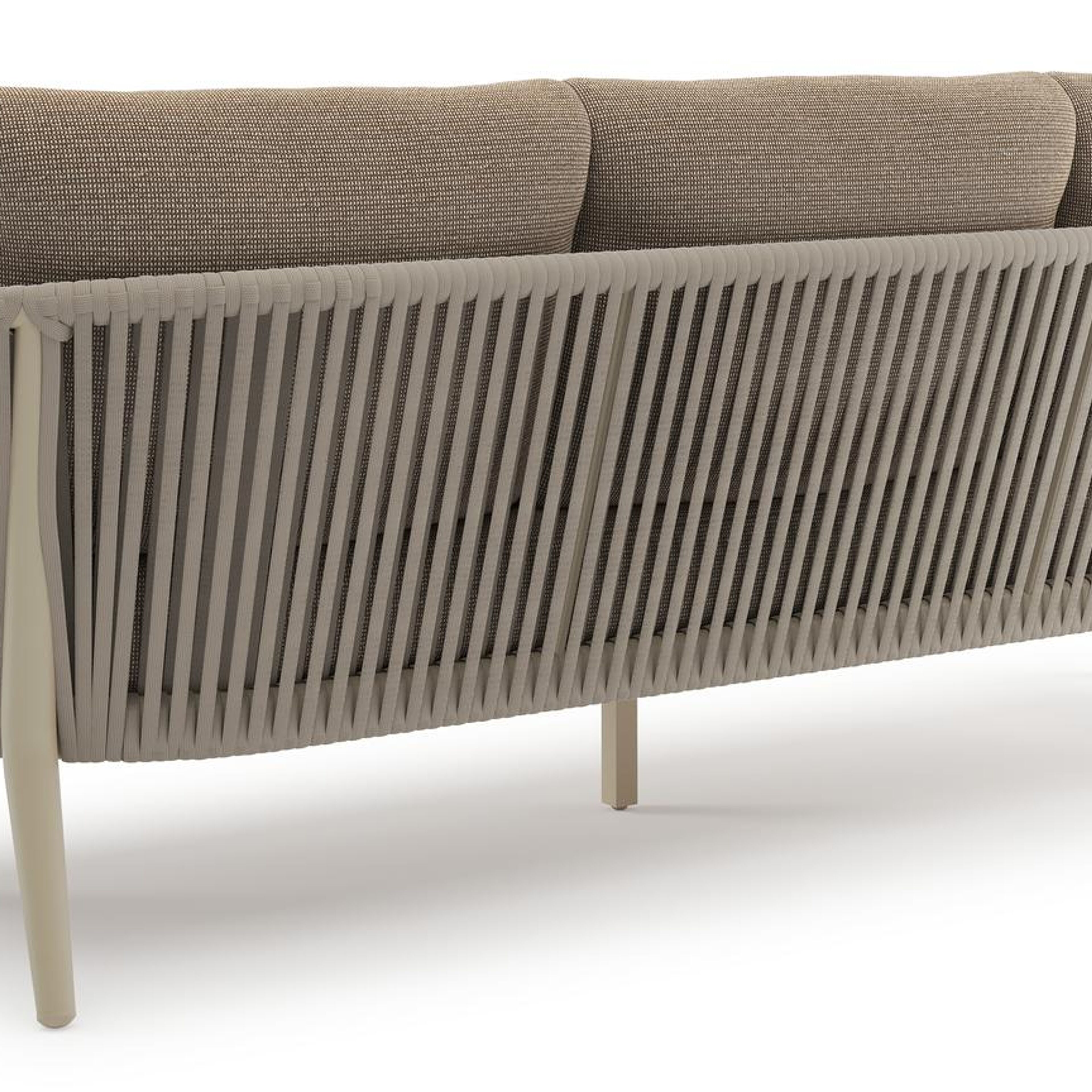 Orso loungebank in beige aluminium en beige verticaal geweven luxe vlakke rope met Firenze Earth all weather solica kussen | Exterioo tuinmeubelen