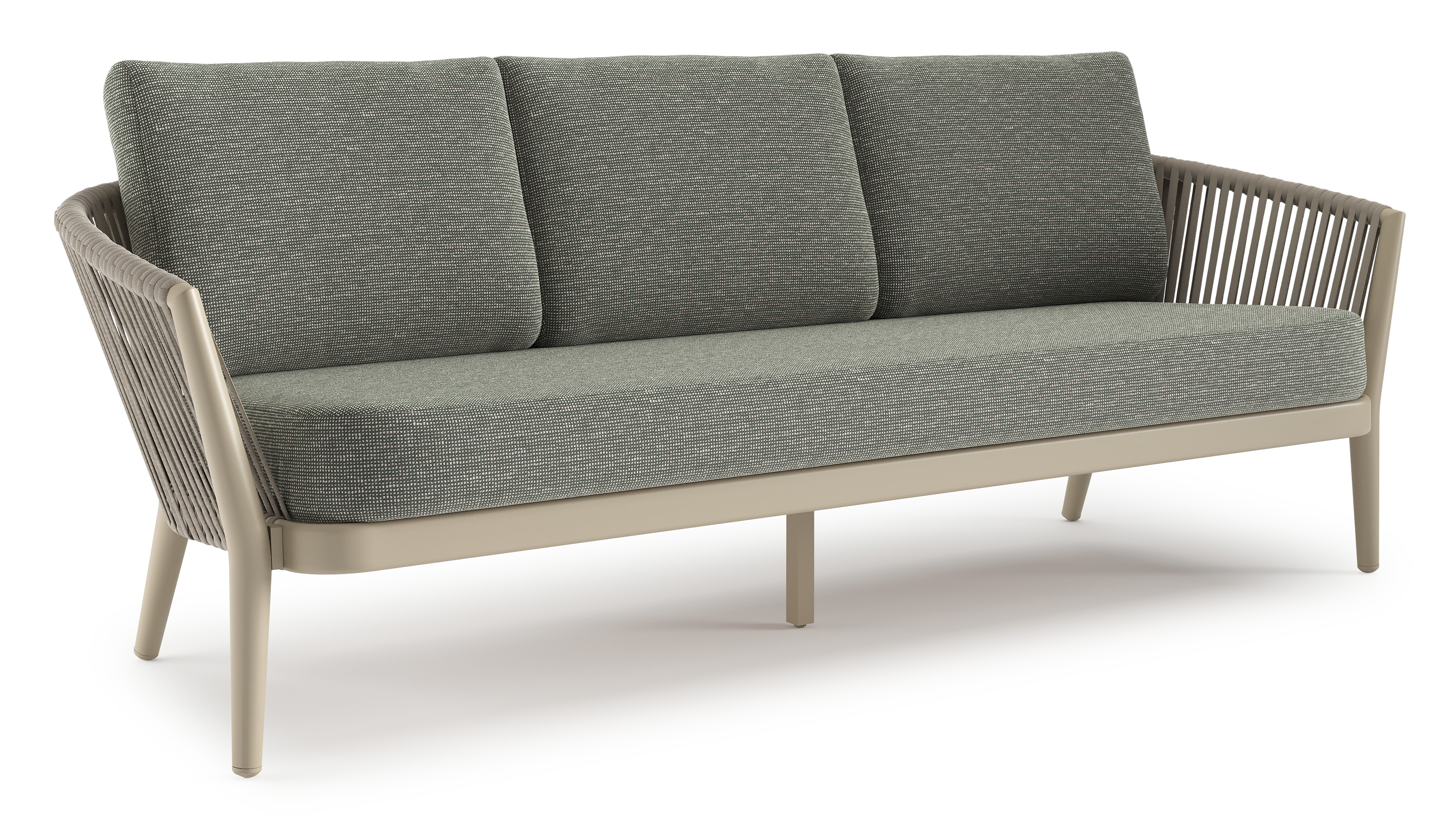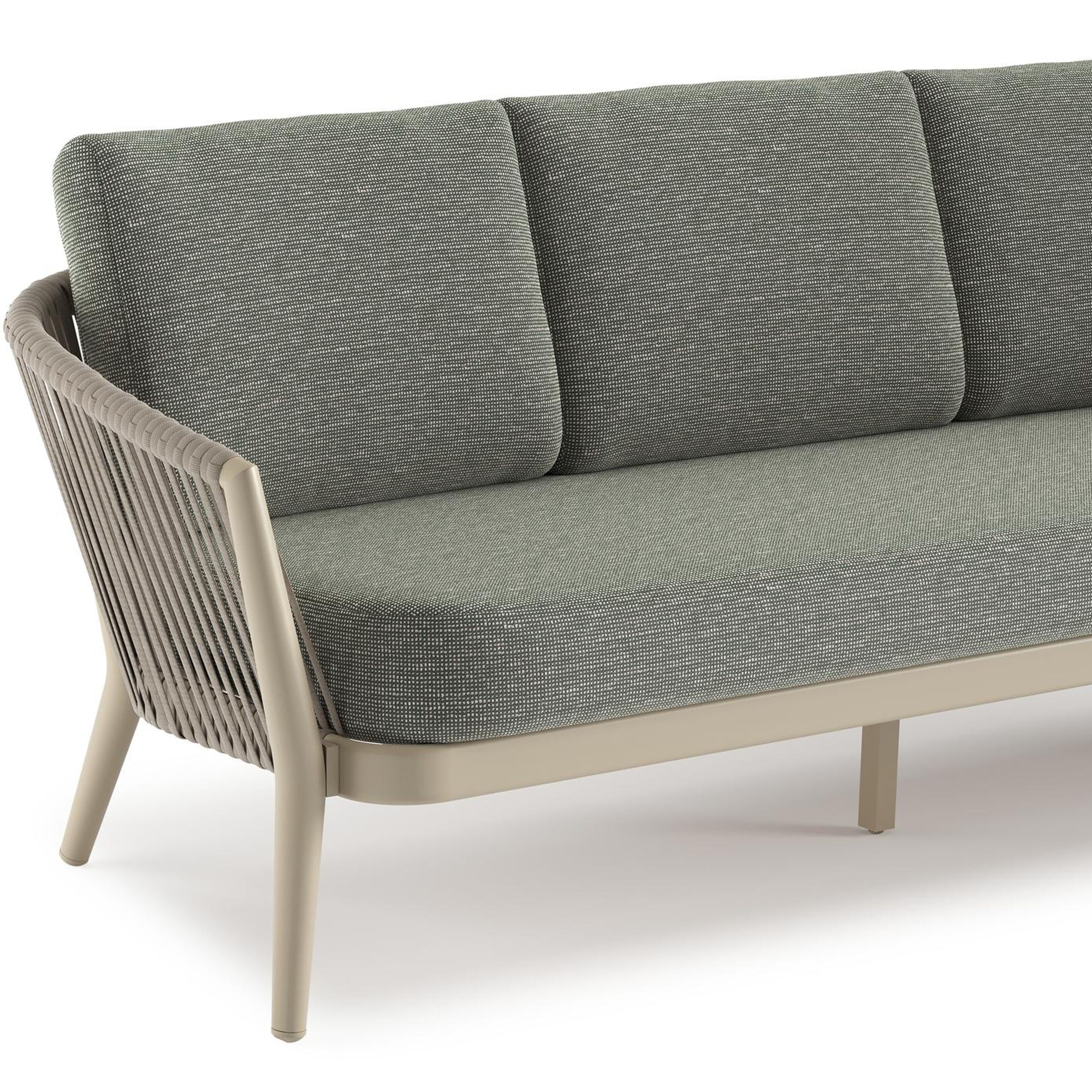 Orso loungebank in beige aluminium en beige verticaal geweven ronde rope met Slow Fern all weather sunbrella® luxe kussen | Exterioo tuinmeubelen