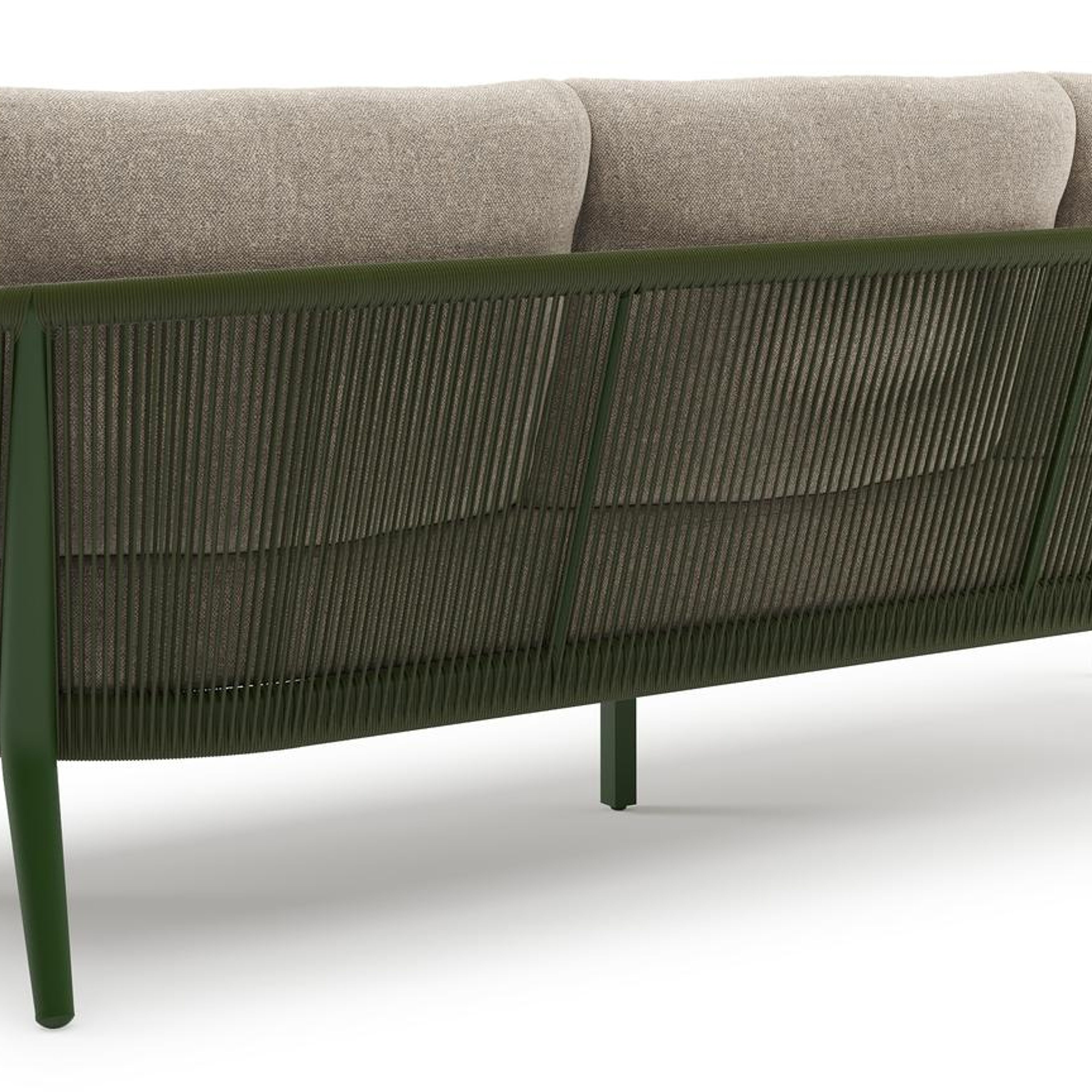 Orso loungebank in groen aluminium en groen verticaal geweven ronde rope met Chartres Pewter all weather sunbrella® luxe kussen | Exterioo tuinmeubelen