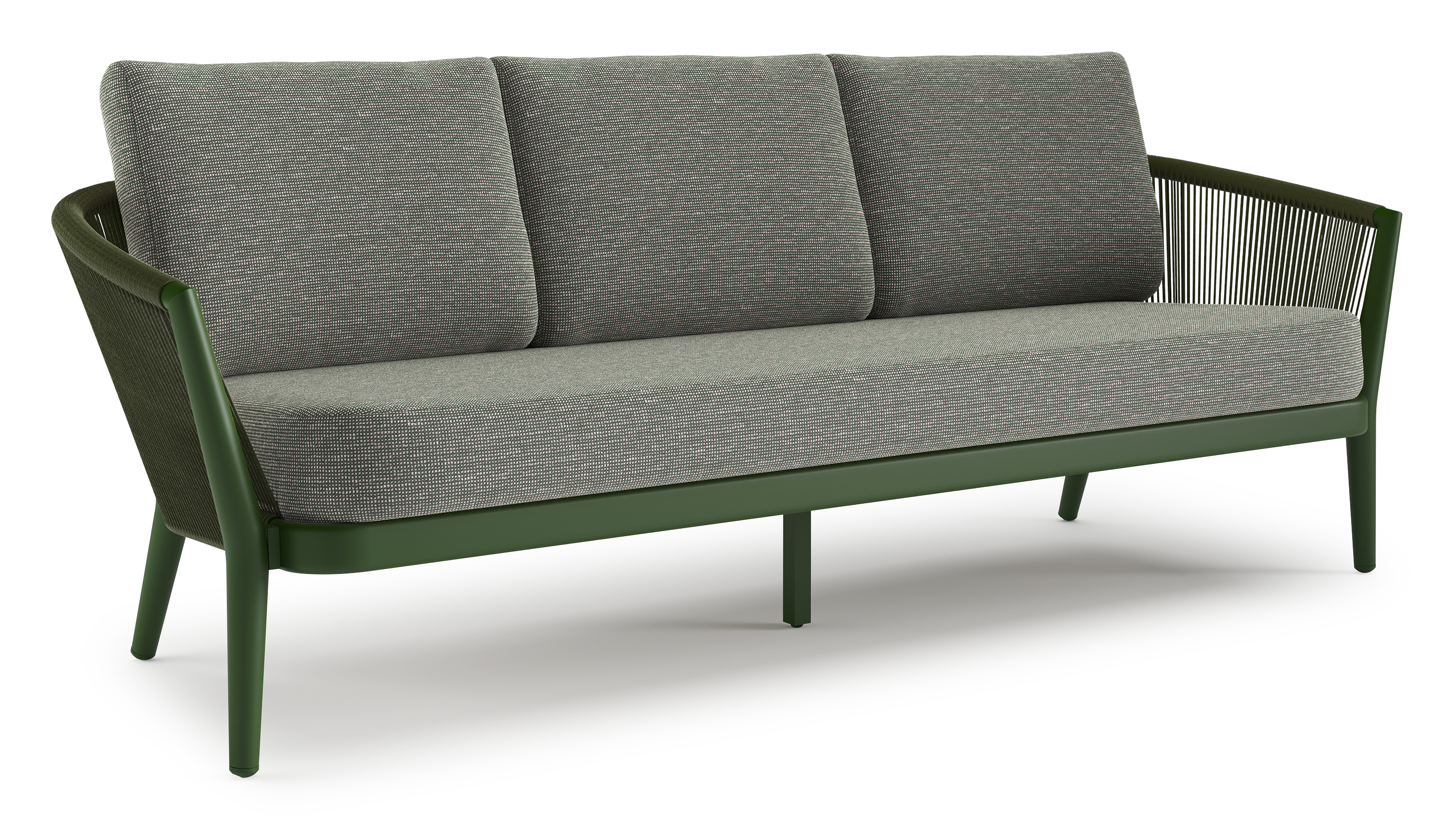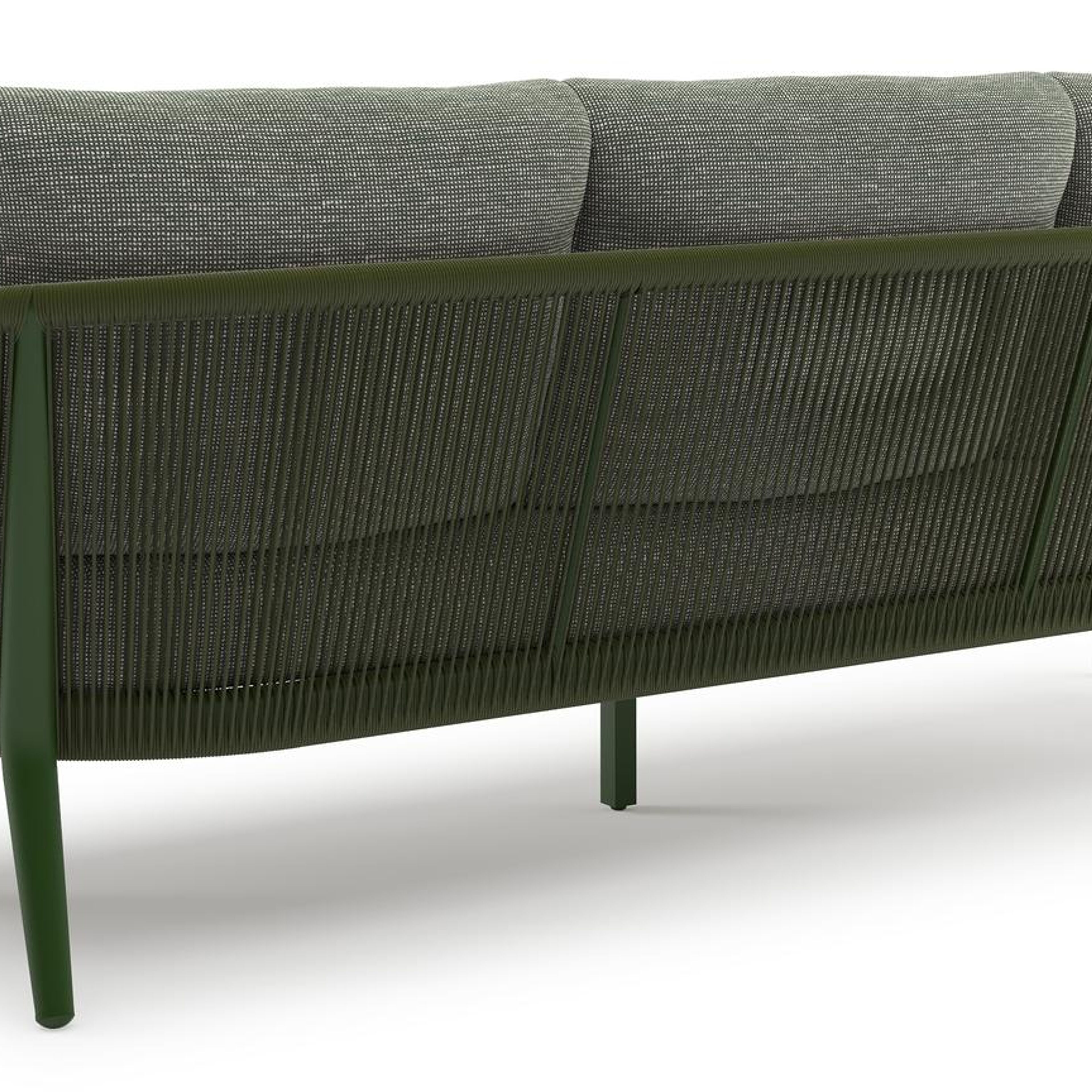 Orso loungebank in groen aluminium en groen verticaal geweven ronde rope met Slow Fern all weather sunbrella® luxe kussen | Exterioo tuinmeubelen