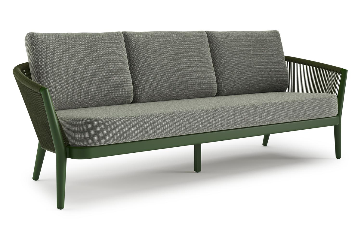 Orso loungebank in groen aluminium en groen verticaal geweven ronde rope met Slow Fern all weather sunbrella® luxe kussen | Exterioo